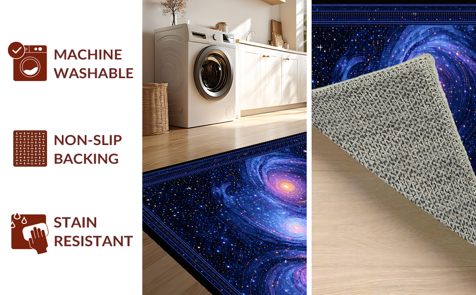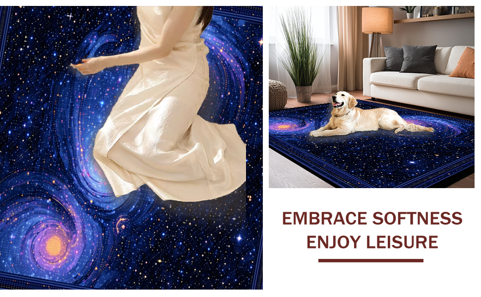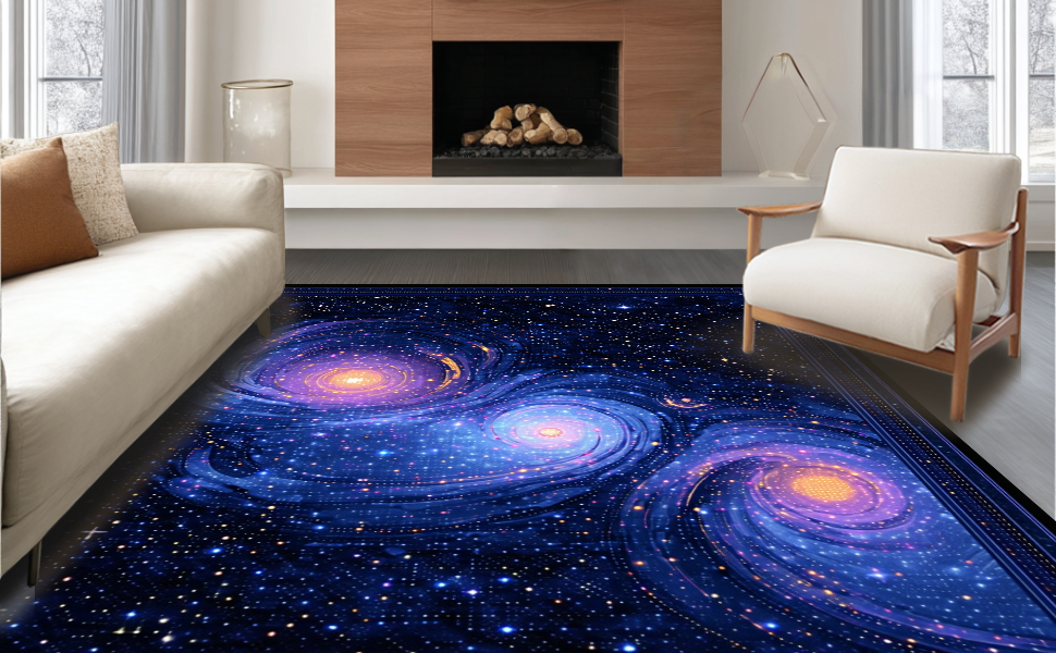 Ultra Soft Area Rug, Non Slip, Stain Resistant, Washable Area Rugs for Living Room, Bedroom, Lively Interstellar Adventure Theme(Blue) Overview: