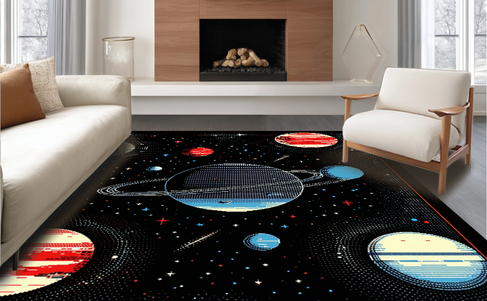 Ultra Soft Area Rug, Non Slip, Stain Resistant, Washable Area Rugs for Living Room, Bedroom, Lively Interstellar Journey Decor(Blue) Overview:
