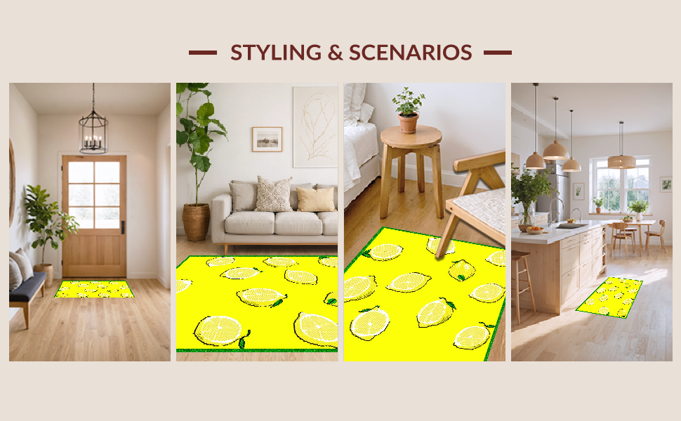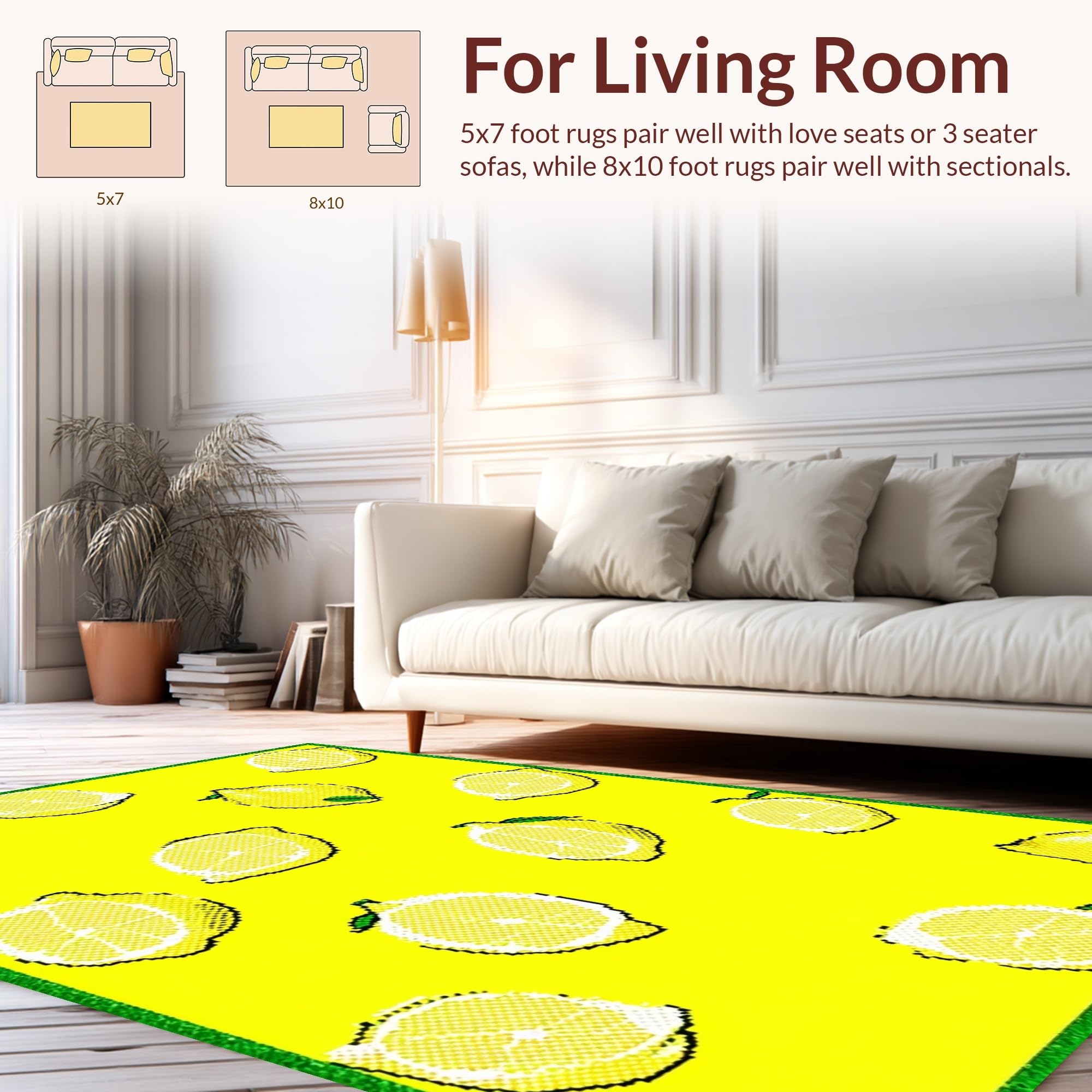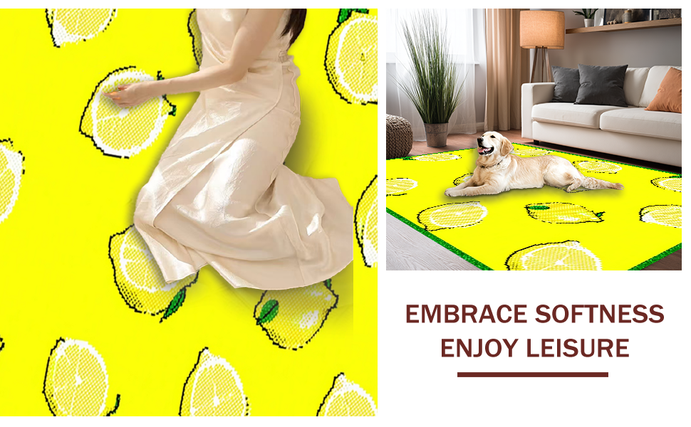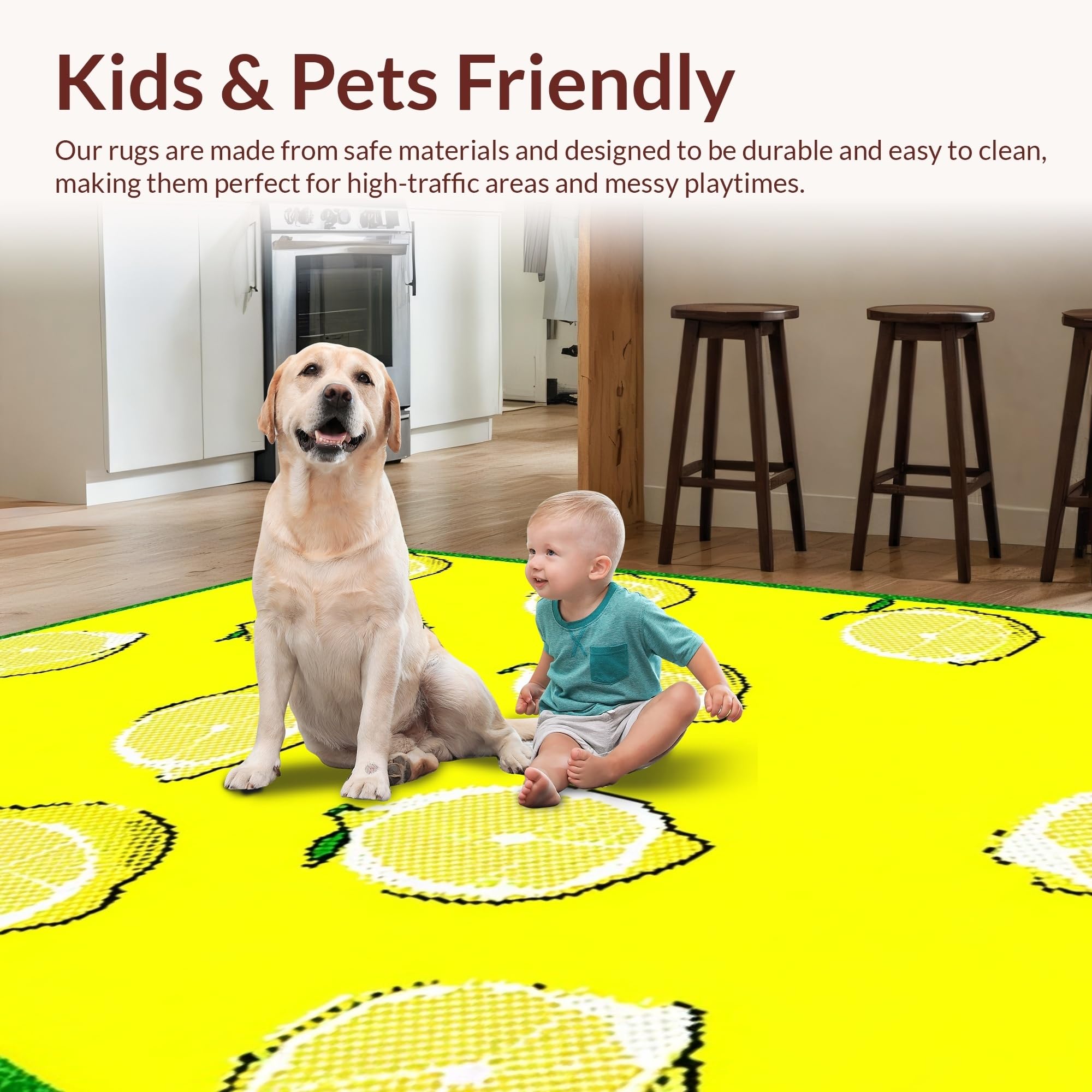 Ultra Soft Area Rug, Non Slip, Stain Resistant, Washable Area Rugs for Living Room, Bedroom, Lively Kid-Friendly Cartoon Motif(Yellow) Overview:
