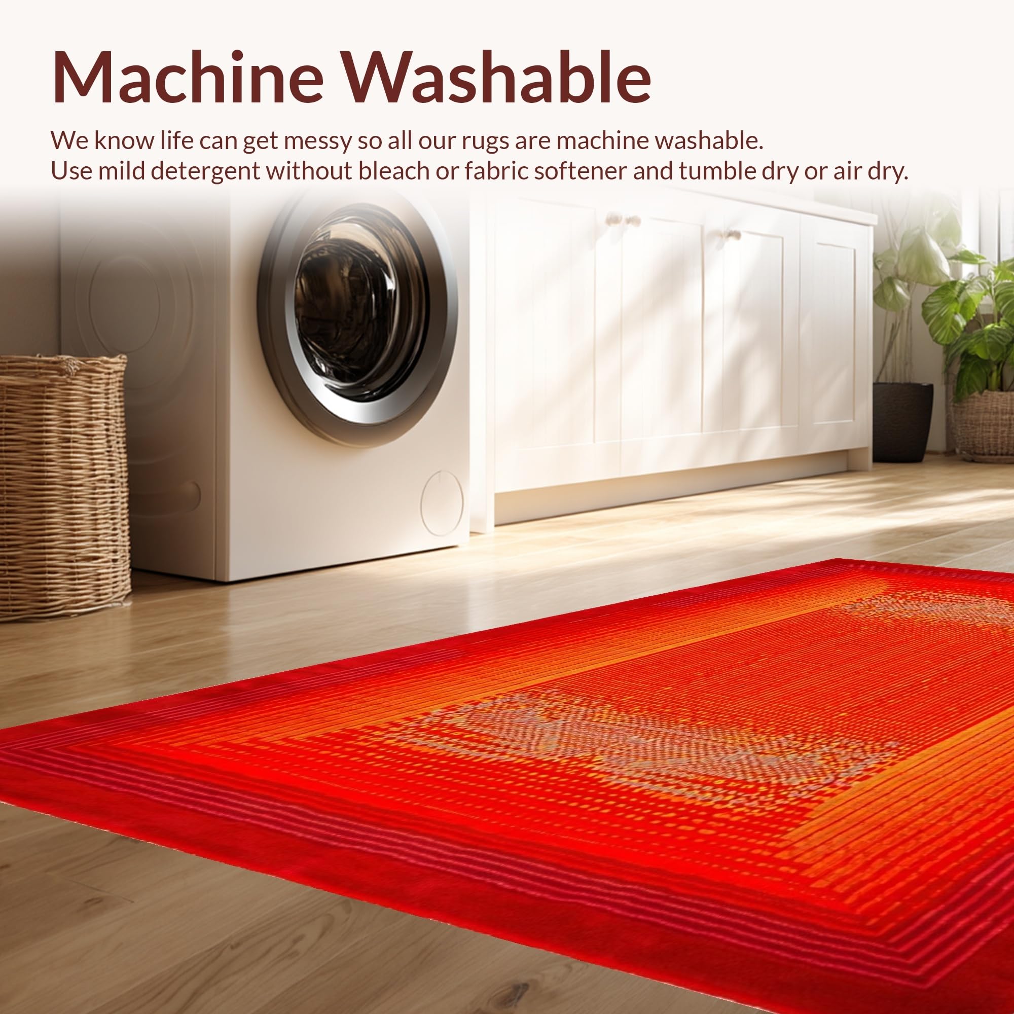 - Machine Washable: Our rugs can be easily thrown in the wash machine.