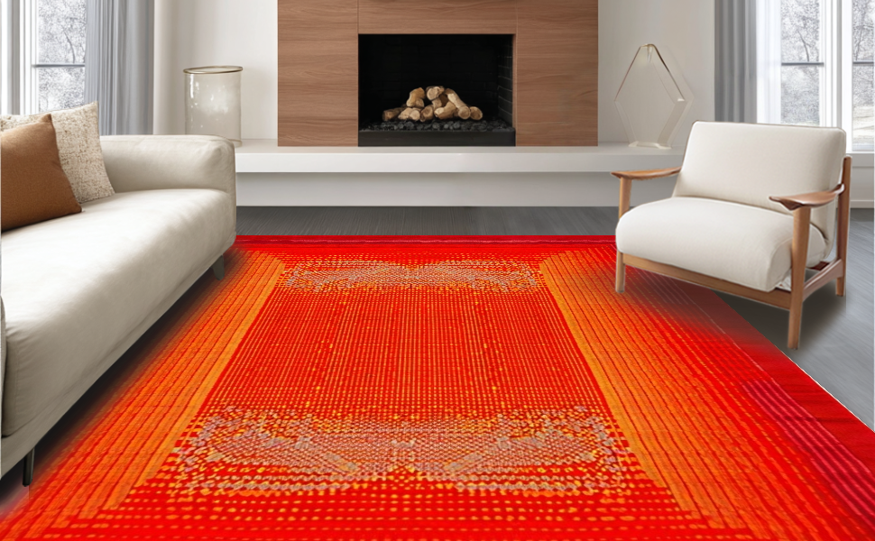 Ultra Soft Area Rug, Non Slip, Stain Resistant, Washable Area Rugs for Living Room, Bedroom, Lively Lava Flow Composition(Red) Overview: