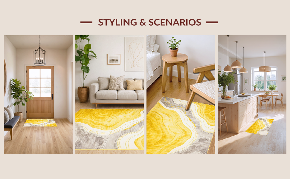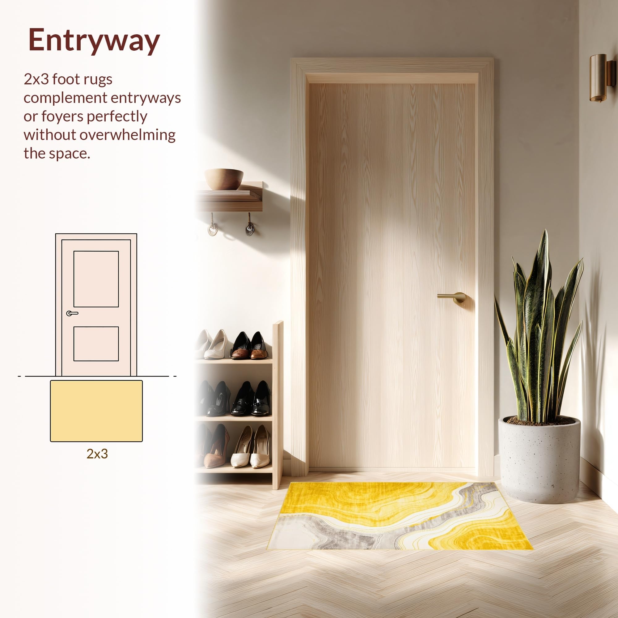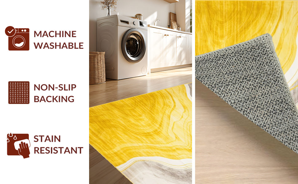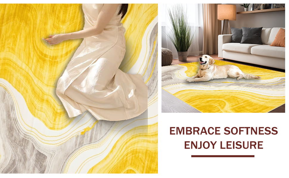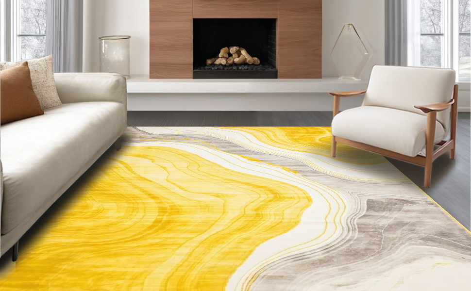 Ultra Soft Area Rug, Non Slip, Stain Resistant, Washable Area Rugs for Living Room, Bedroom, Lively Marbleized Visual Appeal(Yellow) Overview: