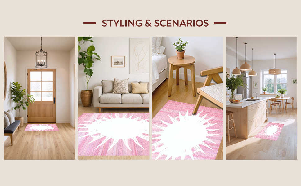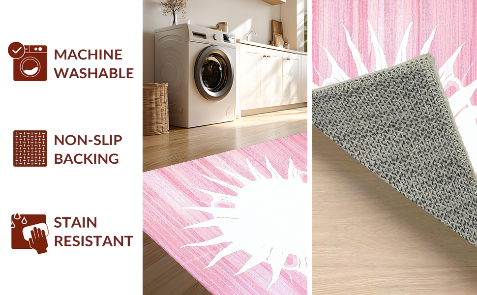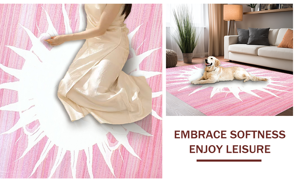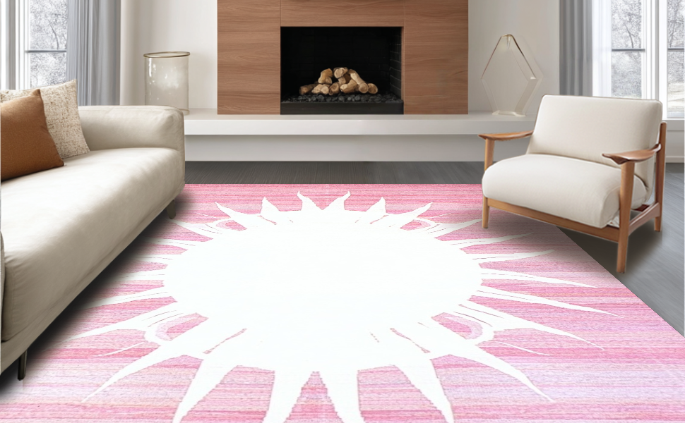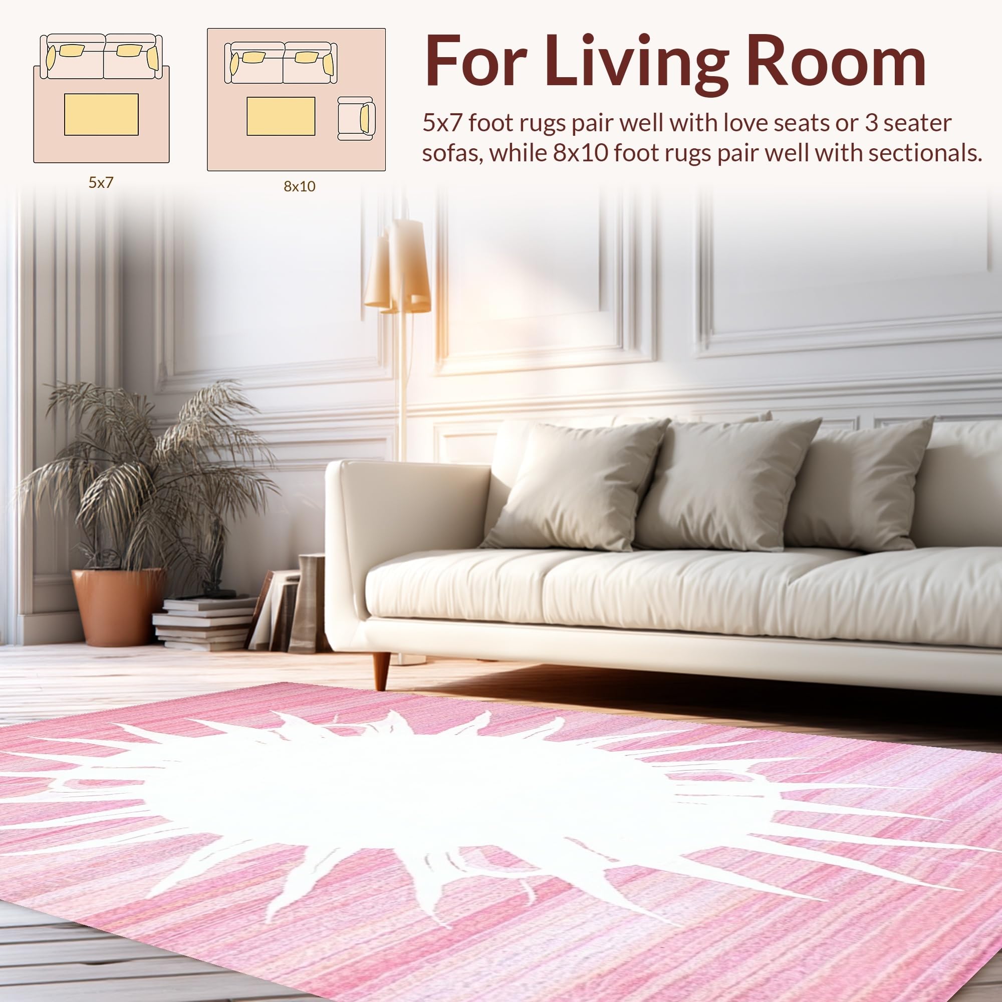 Ultra Soft Area Rug, Non Slip, Stain Resistant, Washable Area Rugs for Living Room, Bedroom, Lively Minimalist Sunray Aesthetic(Pink) Overview: