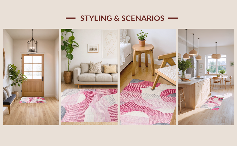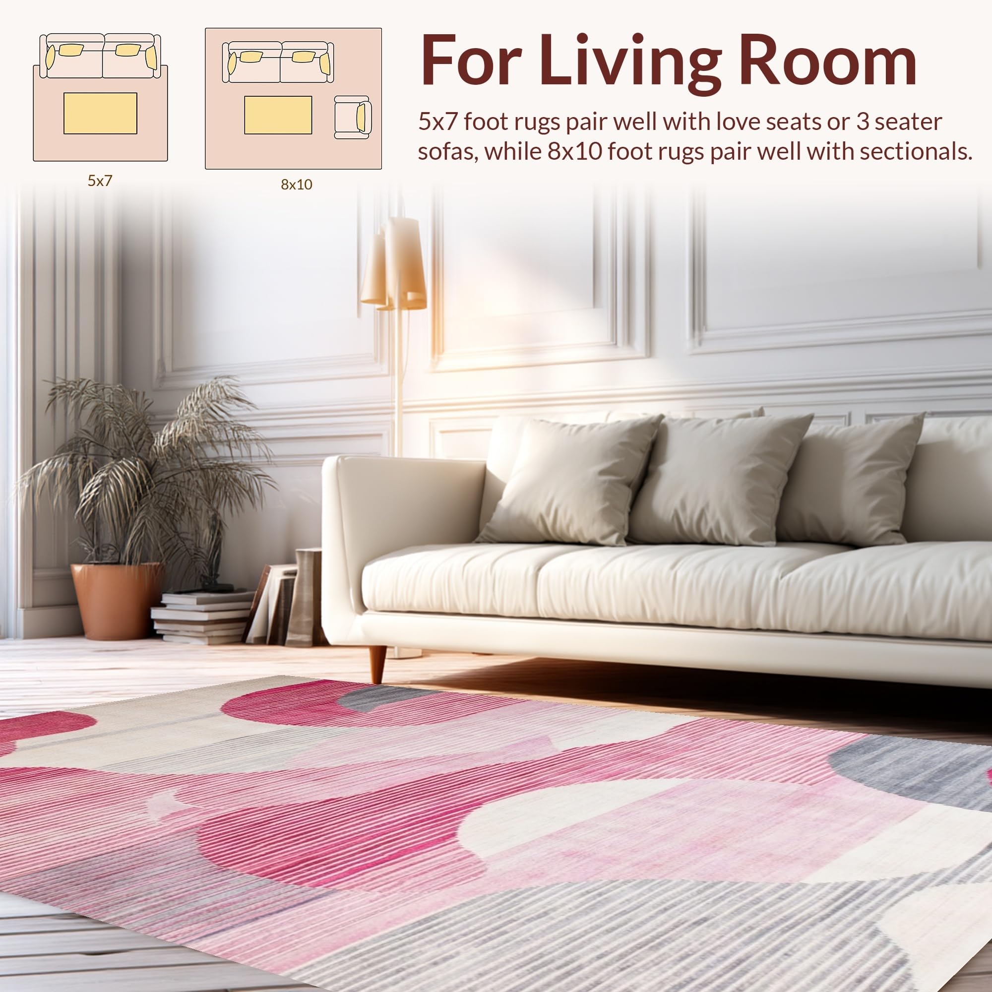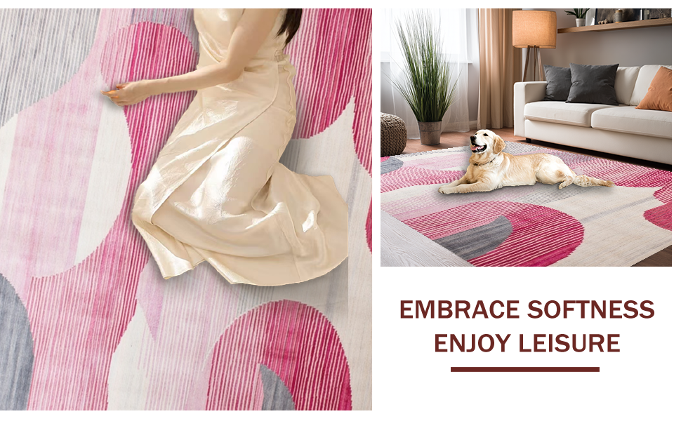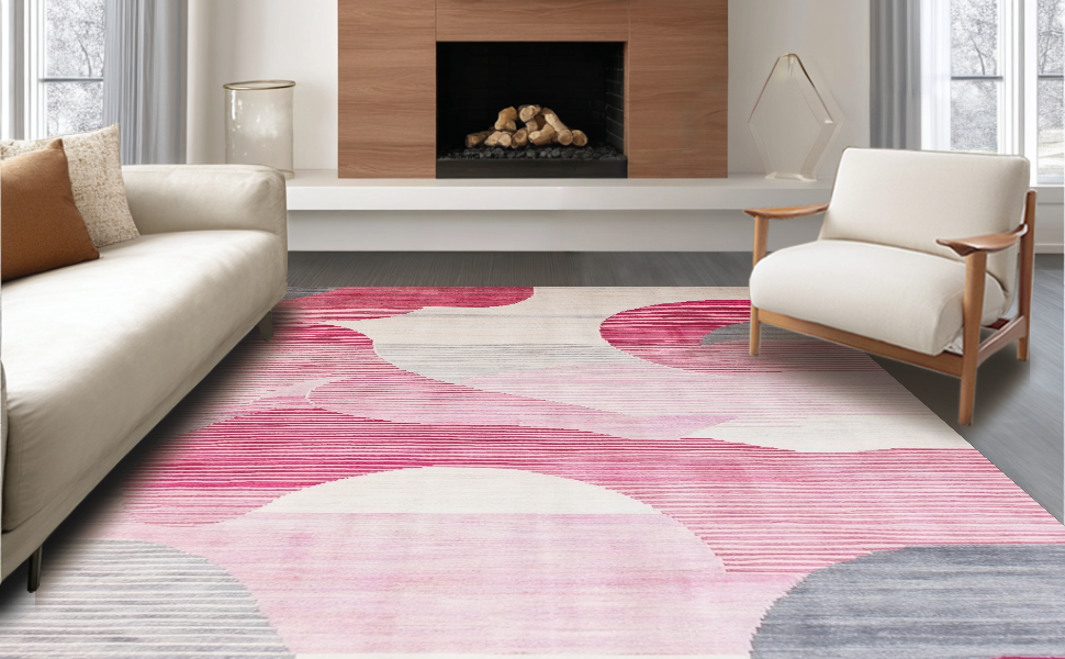 Ultra Soft Area Rug, Non Slip, Stain Resistant, Washable Area Rugs for Living Room, Bedroom, Lively Modern Design Expression(Pink) Overview:
