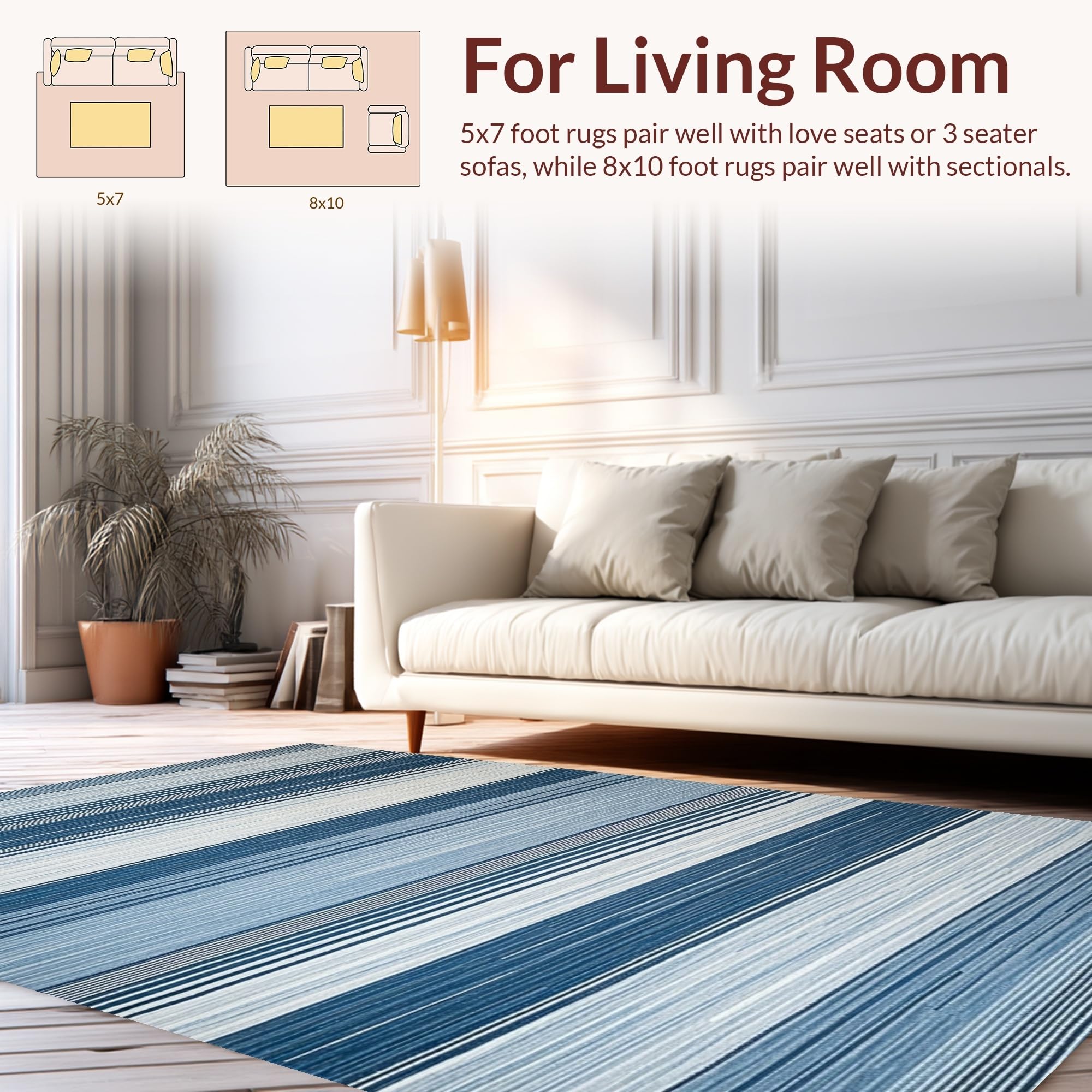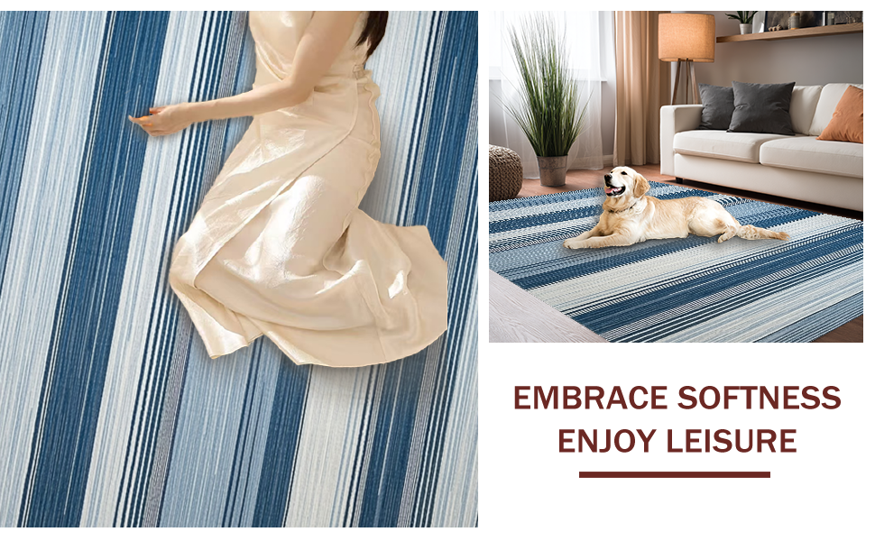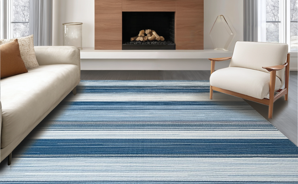 Ultra Soft Area Rug, Non Slip, Stain Resistant, Washable Area Rugs for Living Room, Bedroom, Lively Modern Geometric Weave(Blue) Overview: