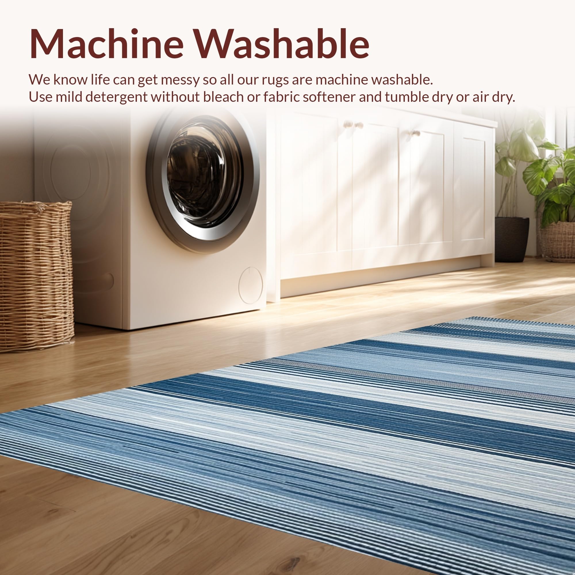 - Machine Washable: Our rugs can be easily thrown in the wash machine.