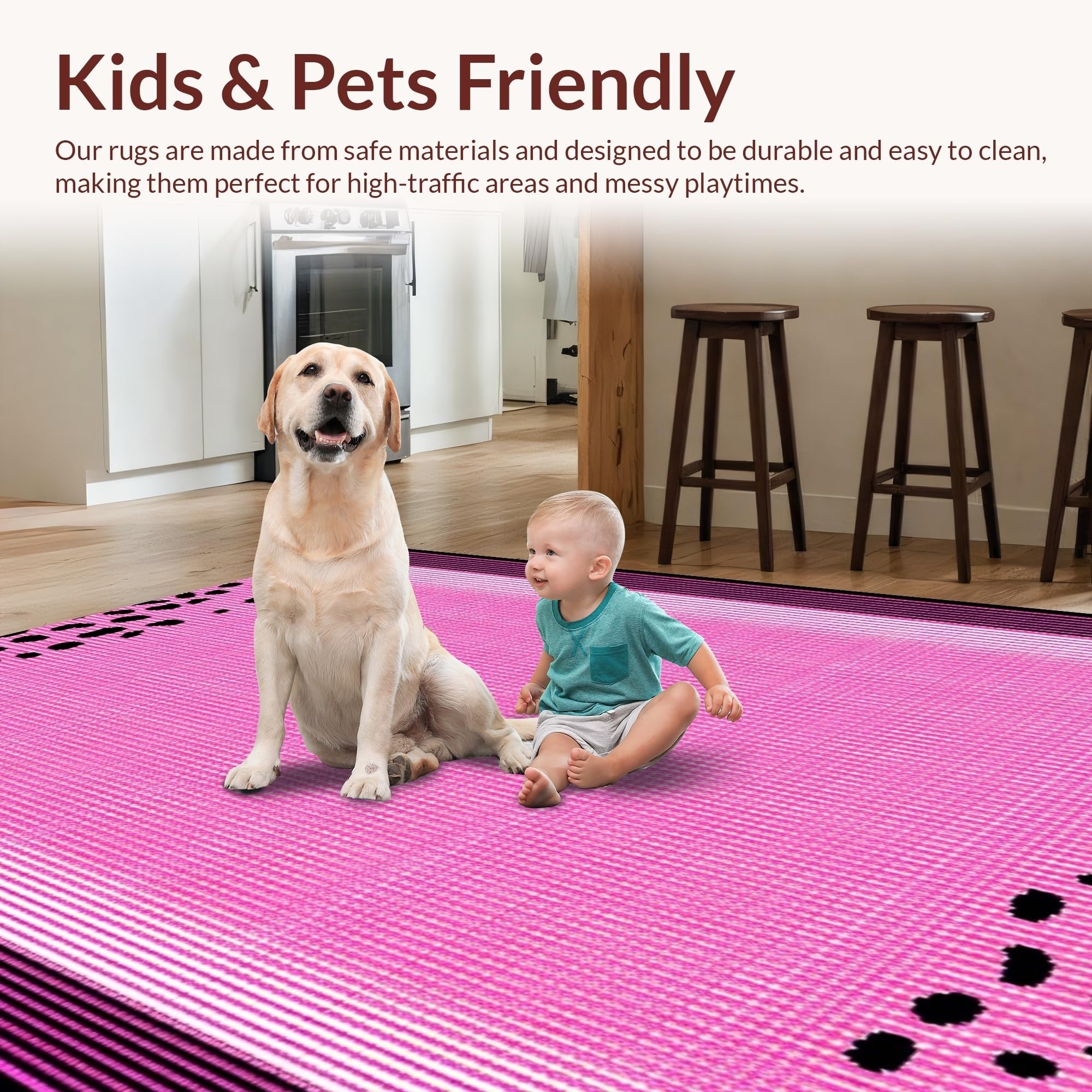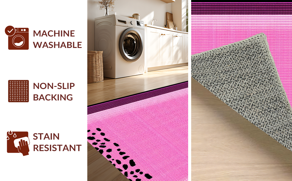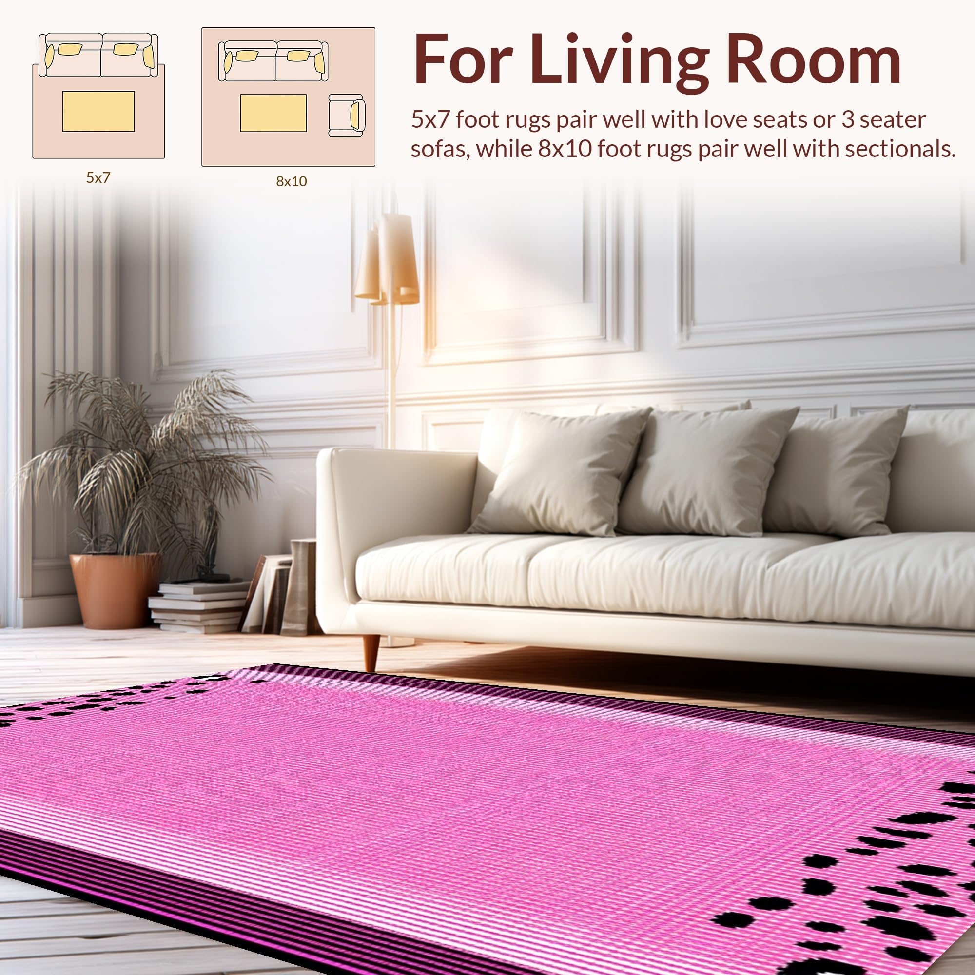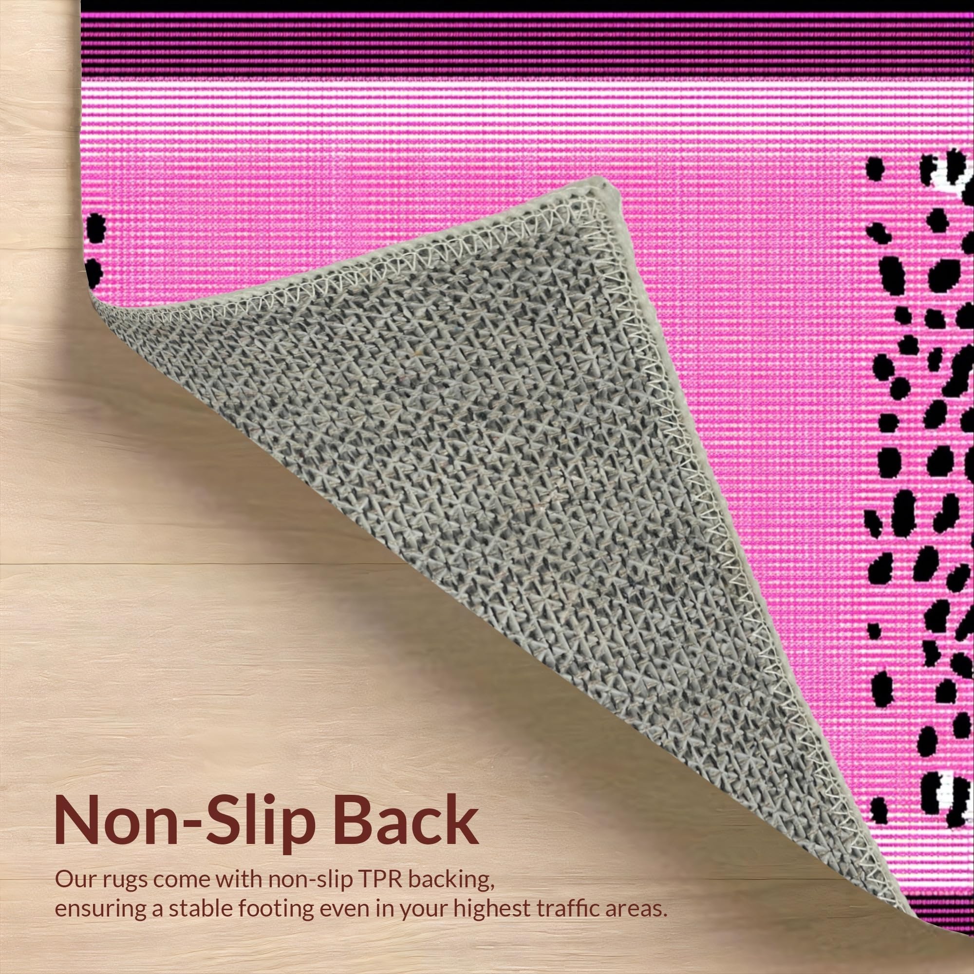 Ultra Soft Area Rug, Non Slip, Stain Resistant, Washable Area Rugs for Living Room, Bedroom, Lively Modern Leopard Aesthetic(Pink) Overview: