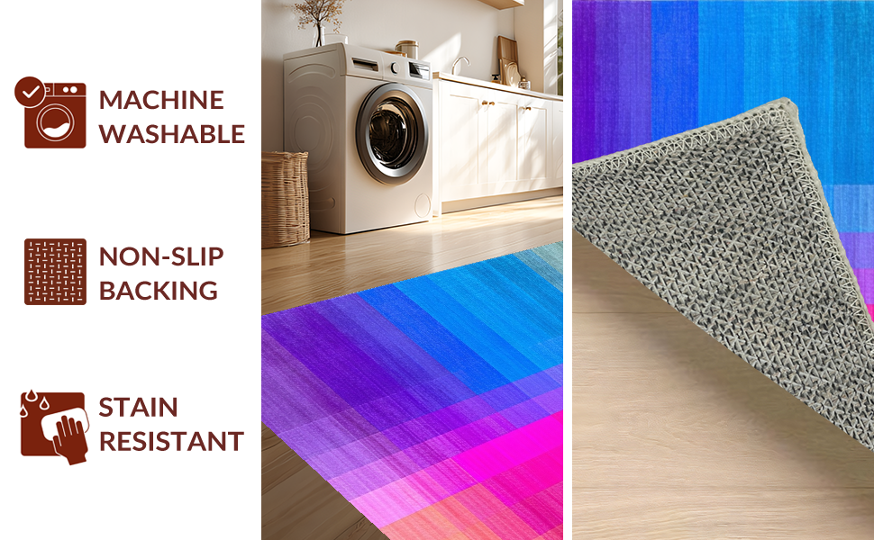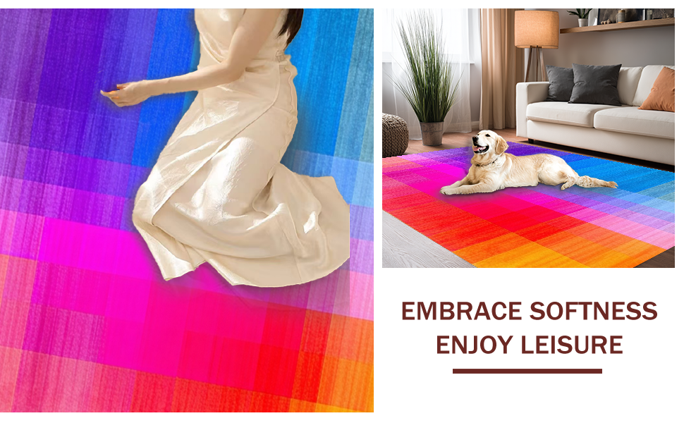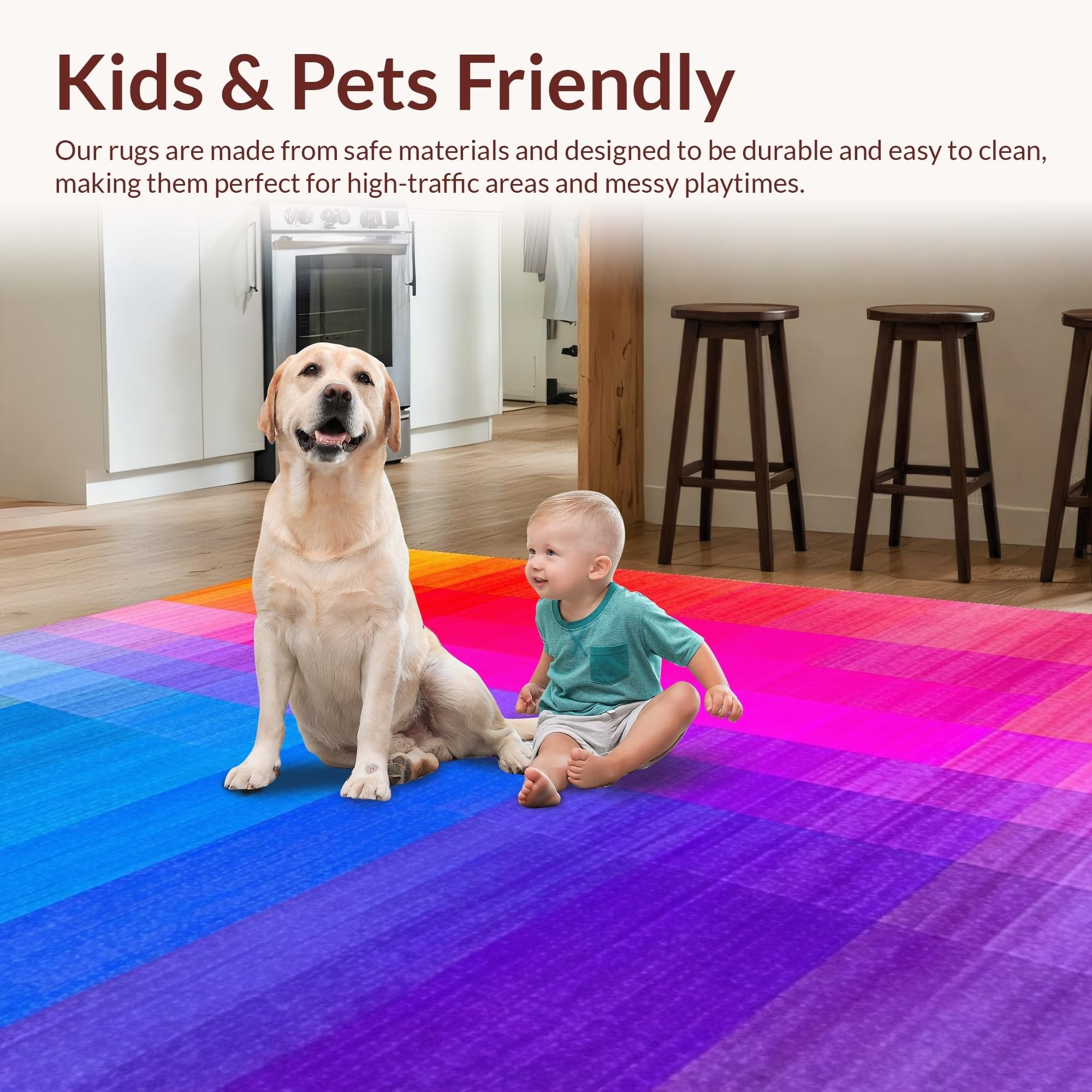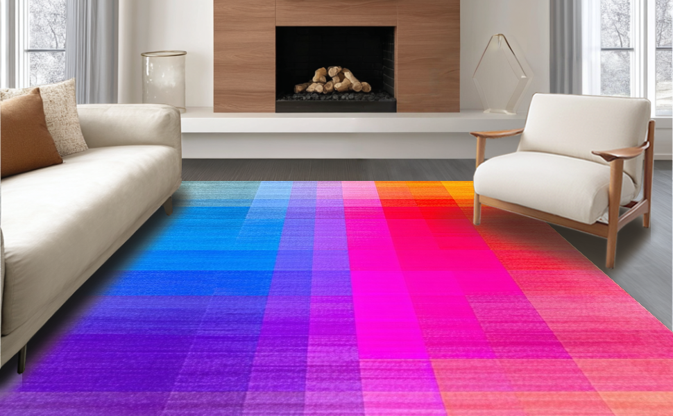 Ultra Soft Area Rug, Non Slip, Stain Resistant, Washable Area Rugs for Living Room, Bedroom, Lively Modern Rainbow Aesthetic(Blue) Overview: