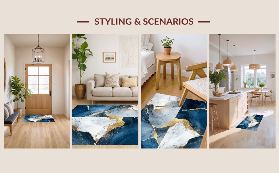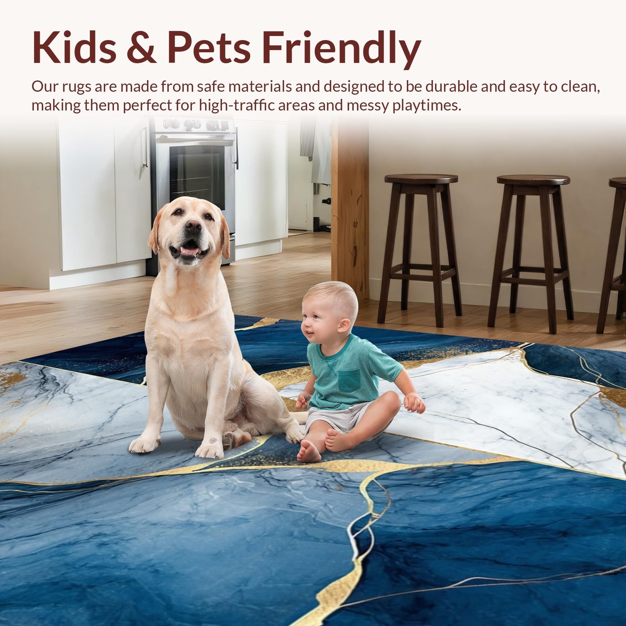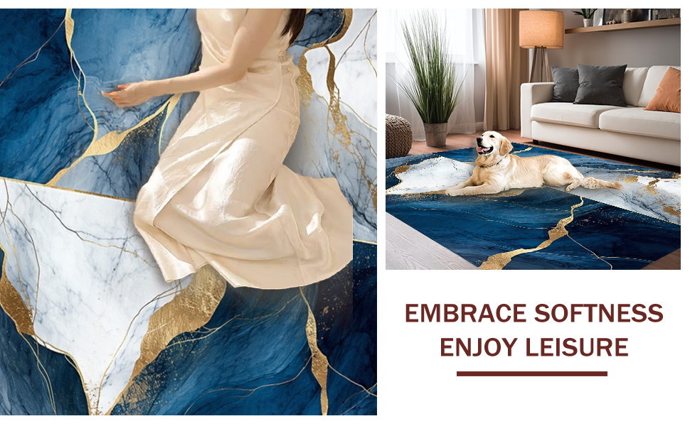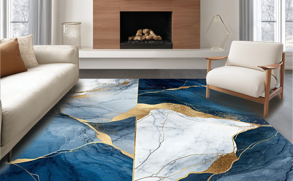 Ultra Soft Area Rug, Non Slip, Stain Resistant, Washable Area Rugs for Living Room, Bedroom, Lively Modern Streaked Color Palette(Blue) Overview: