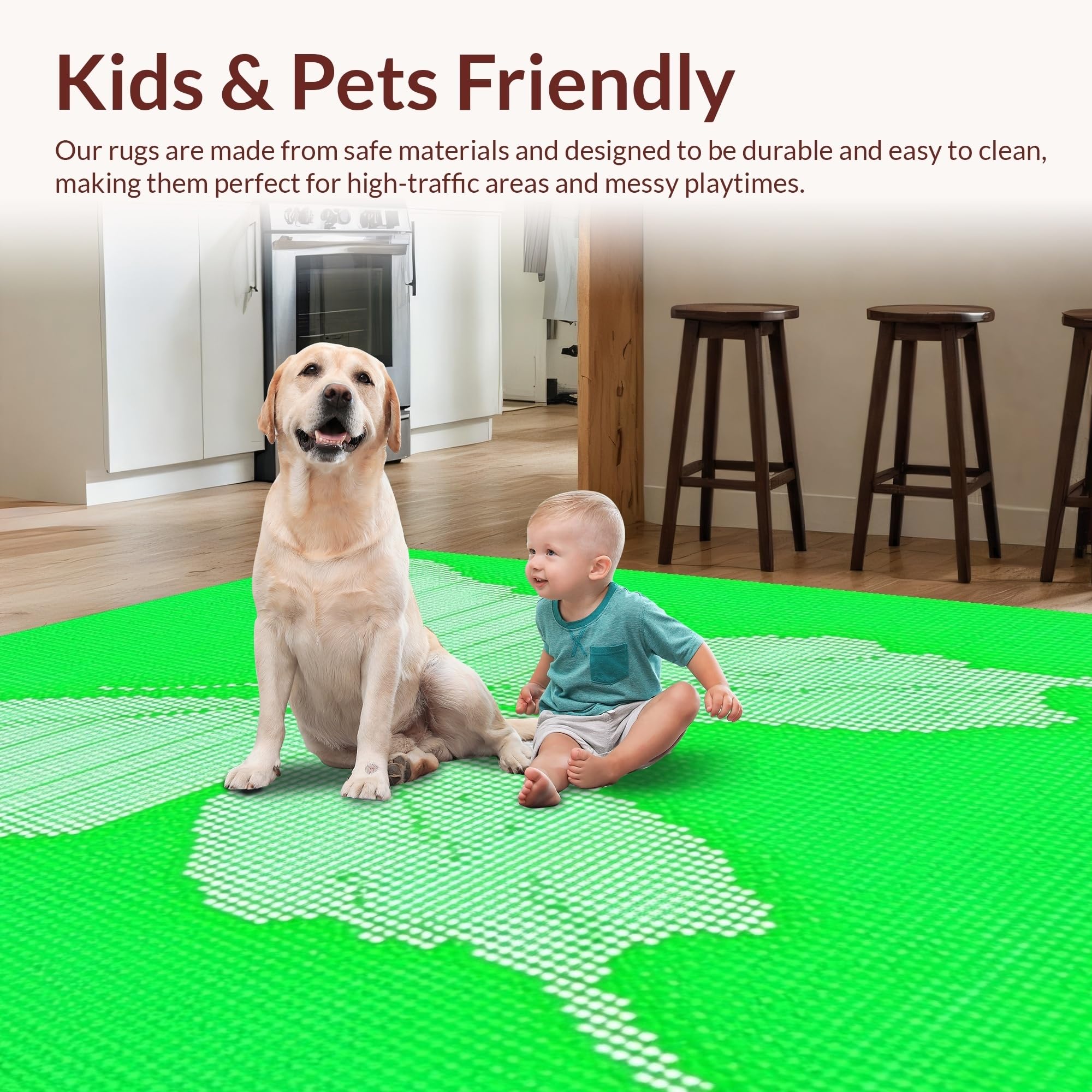 Ultra Soft Area Rug, Non Slip, Stain Resistant, Washable Area Rugs for Living Room, Bedroom, Lively Modern Wildlife Illustration(Green) Overview: