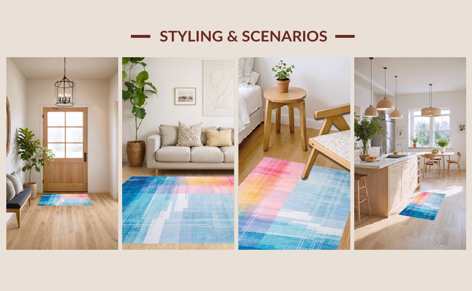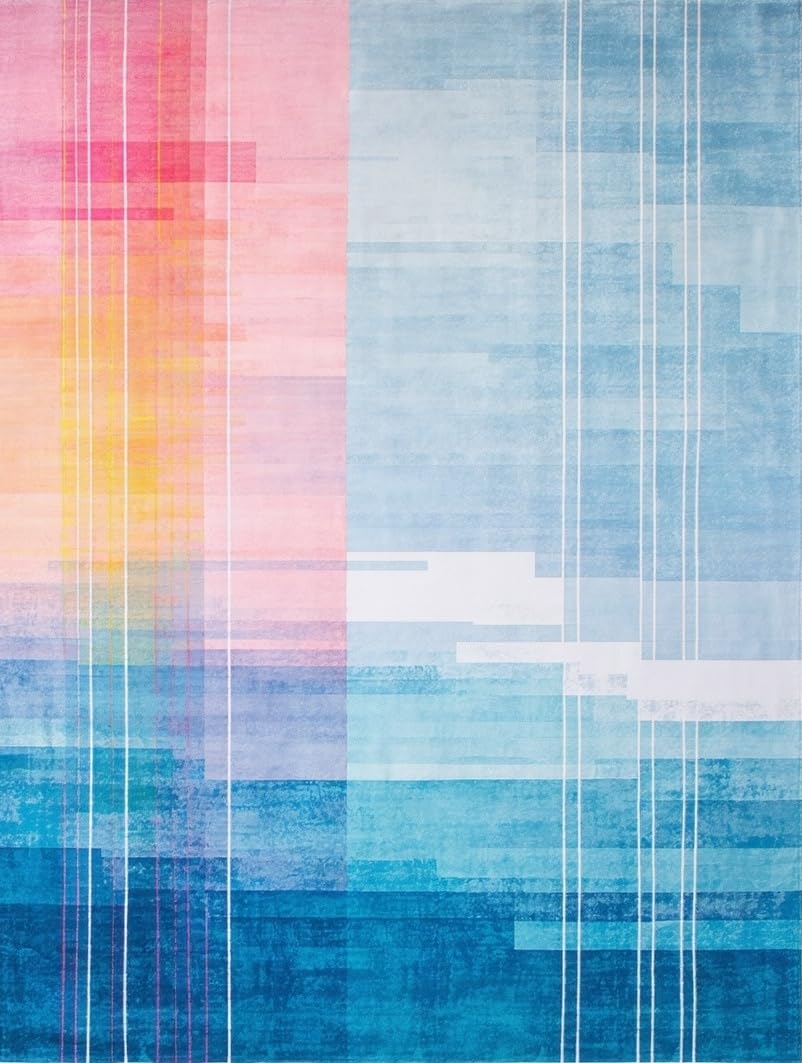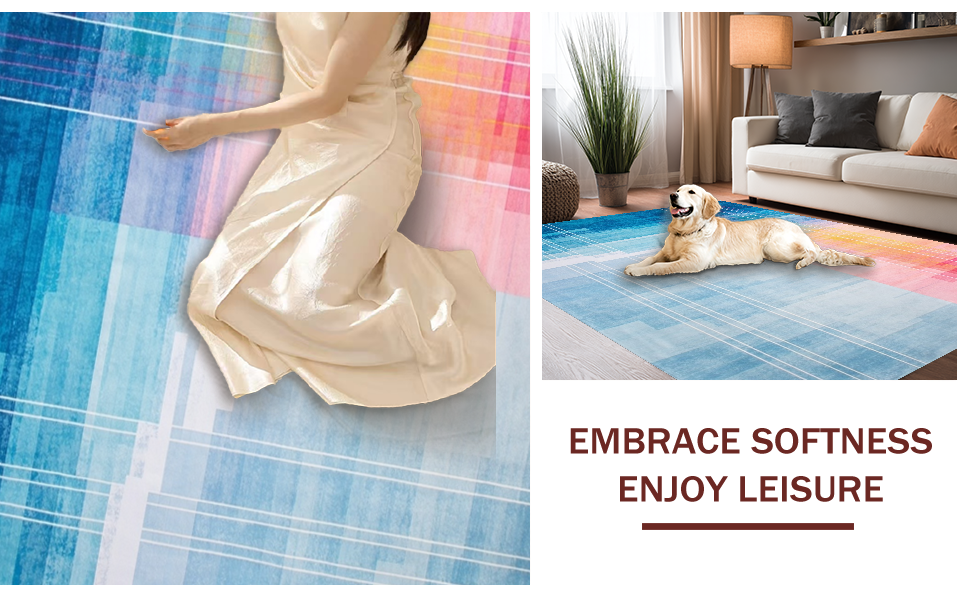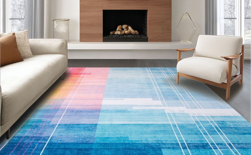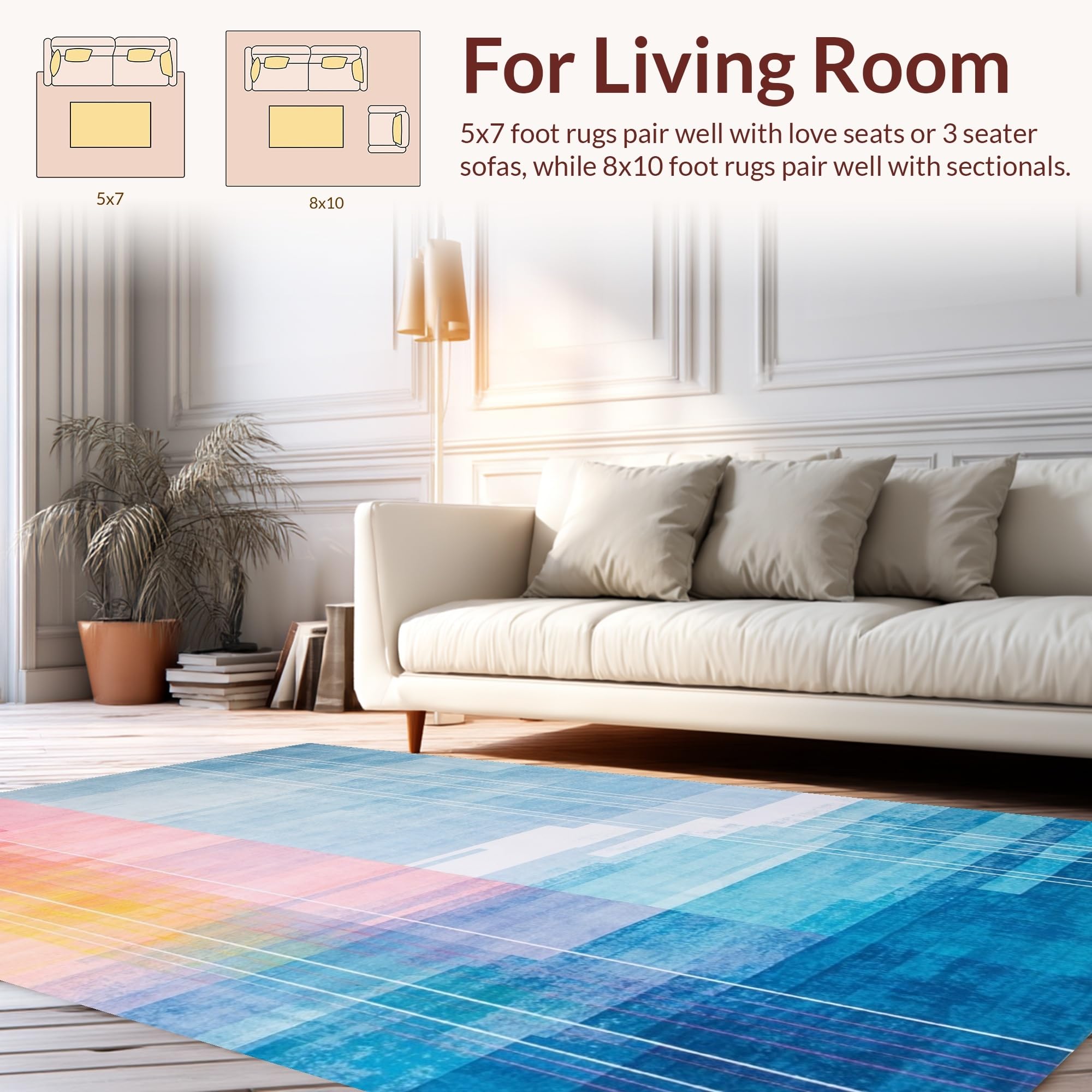 Ultra Soft Area Rug, Non Slip, Stain Resistant, Washable Area Rugs for Living Room, Bedroom, Lively Multi-Colored Abstract Flow(Blue) Overview: