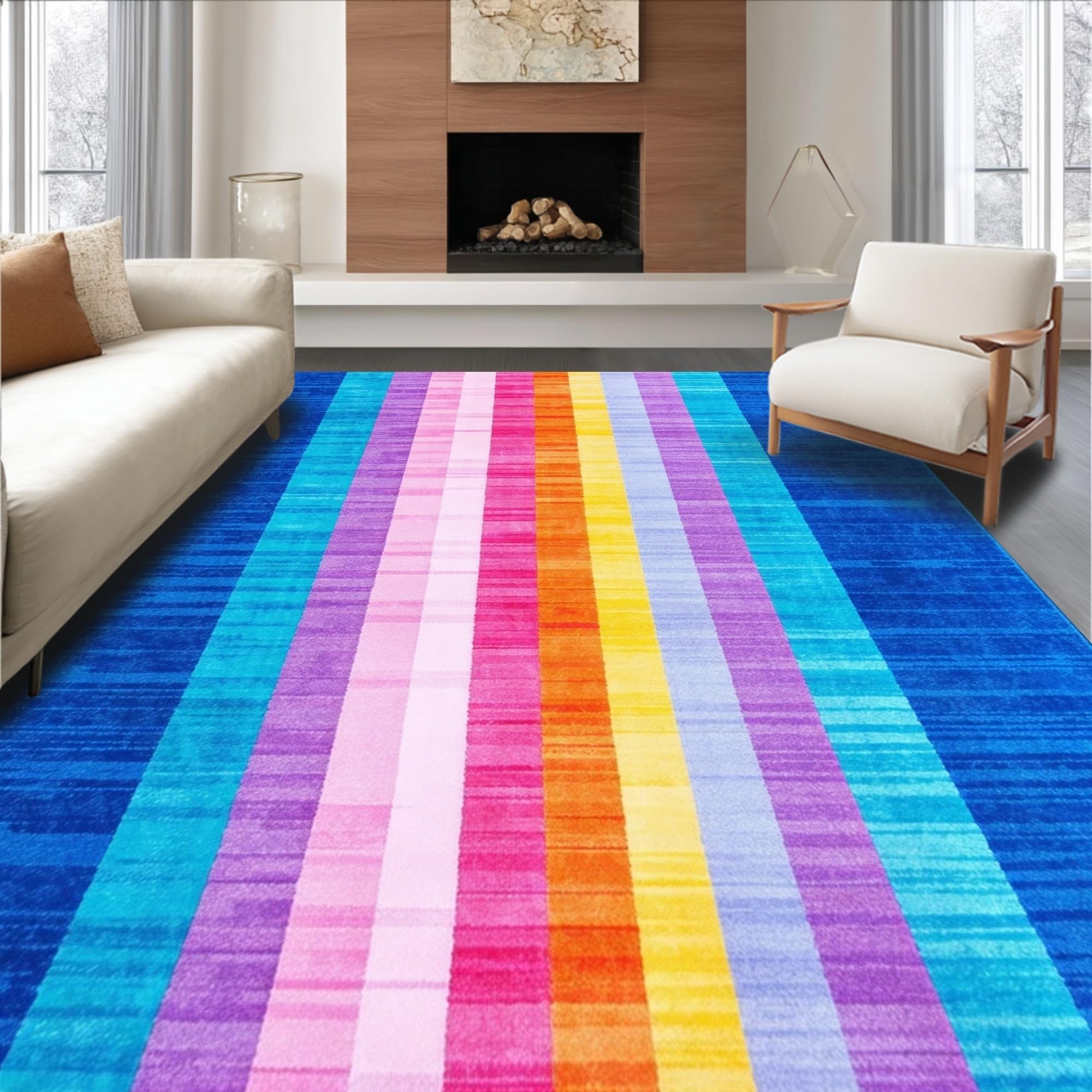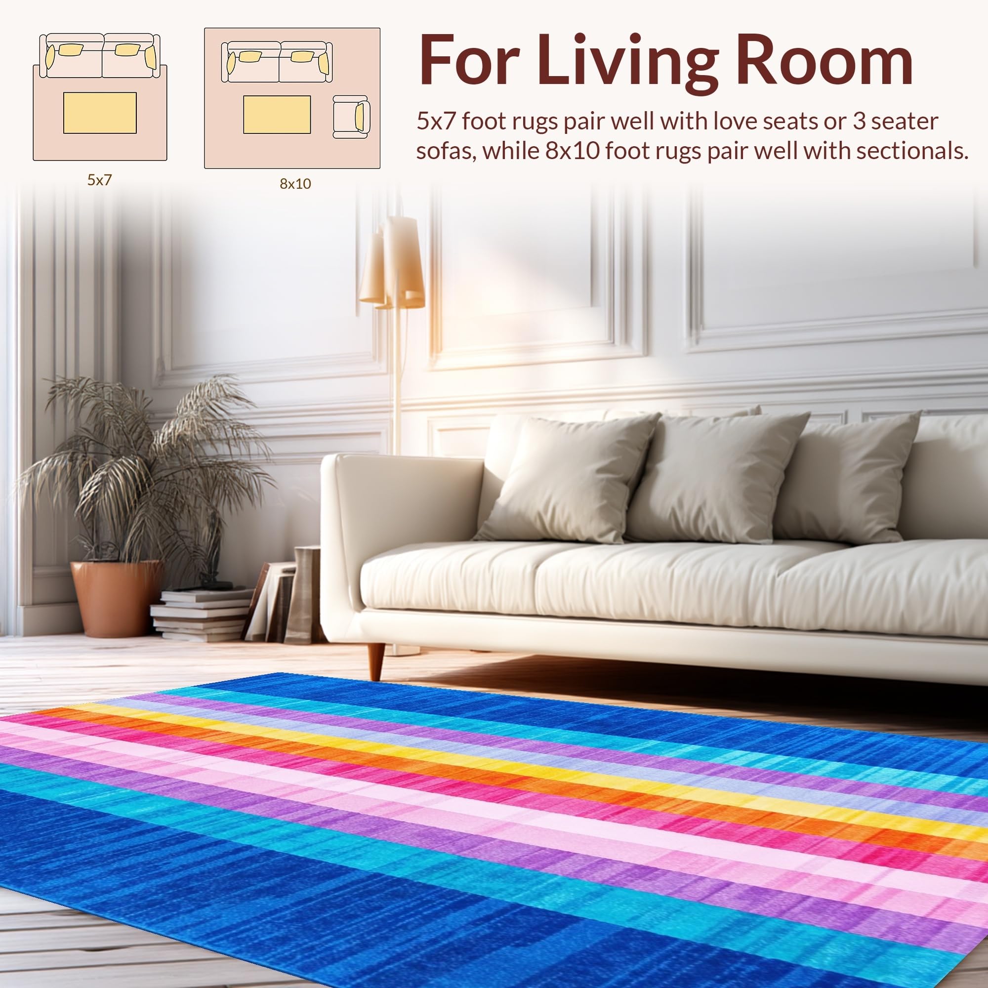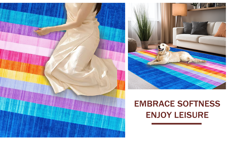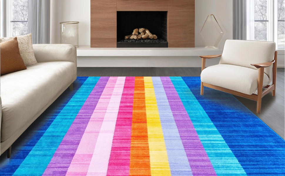 Ultra Soft Area Rug, Non Slip, Stain Resistant, Washable Area Rugs for Living Room, Bedroom, Lively Multicolor Contemporary Theme(Blue) Overview: