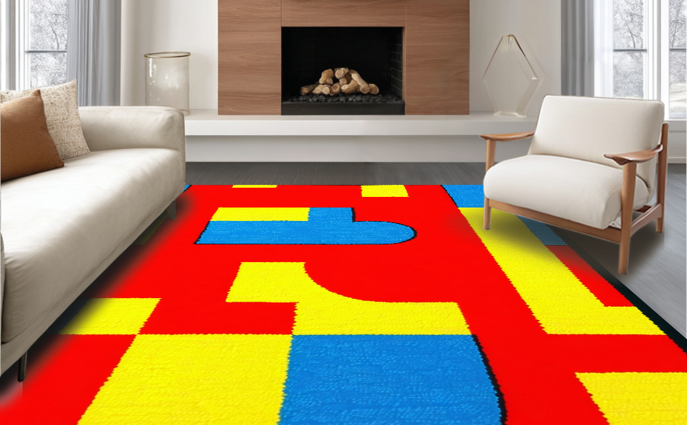 Ultra Soft Area Rug, Non Slip, Stain Resistant, Washable Area Rugs for Living Room, Bedroom, Lively Multicolor Learning Composition(Red) Overview: