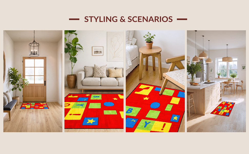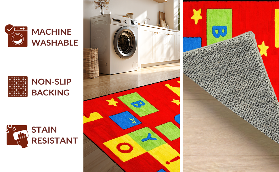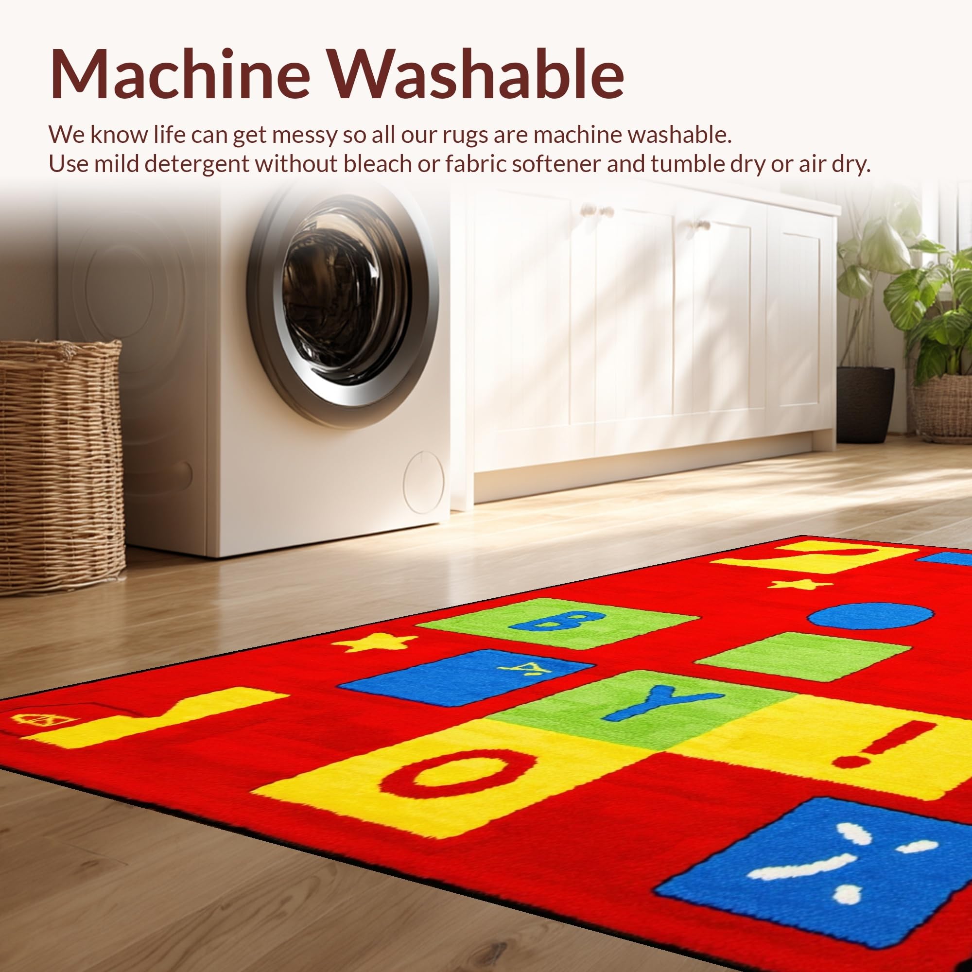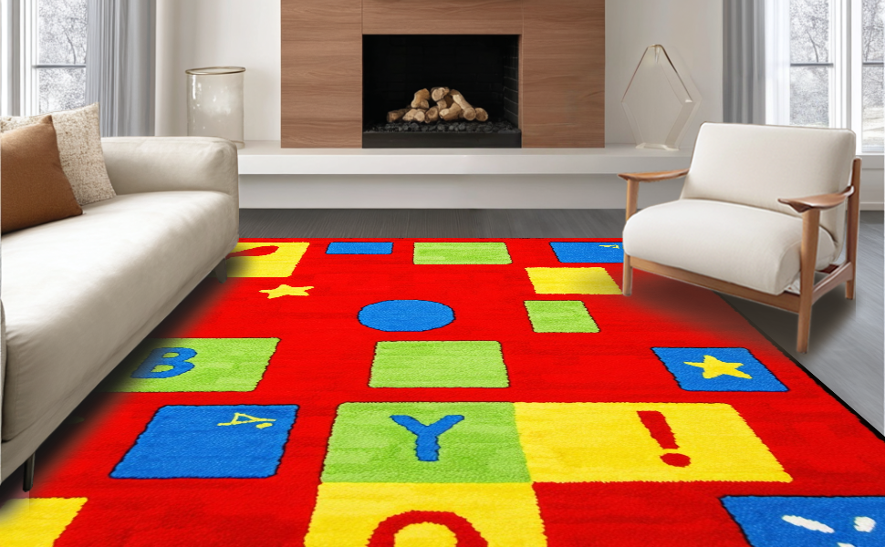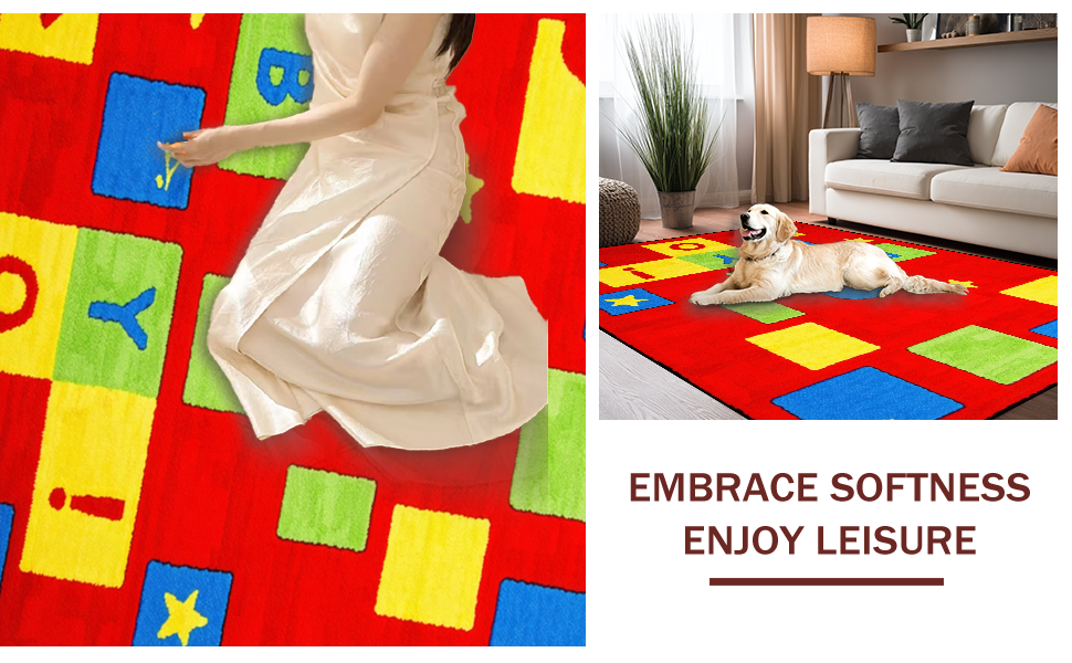Ultra Soft Area Rug, Non Slip, Stain Resistant, Washable Area Rugs for Living Room, Bedroom, Lively Multicolor Learning Design(Red) Overview: