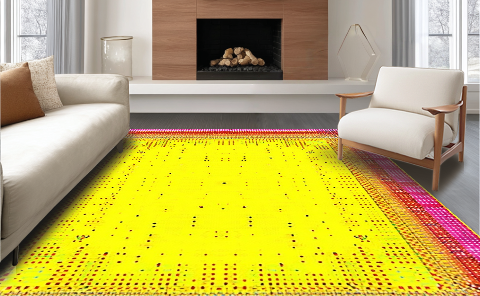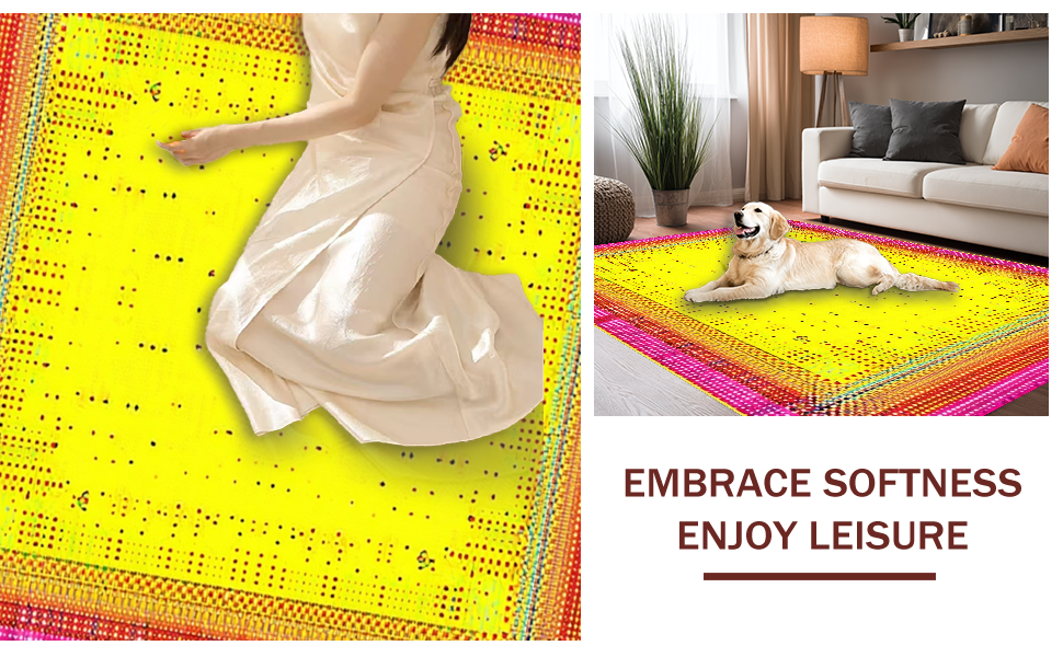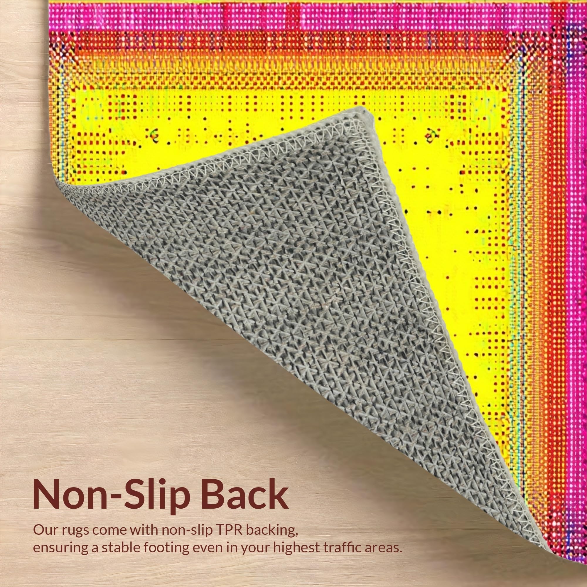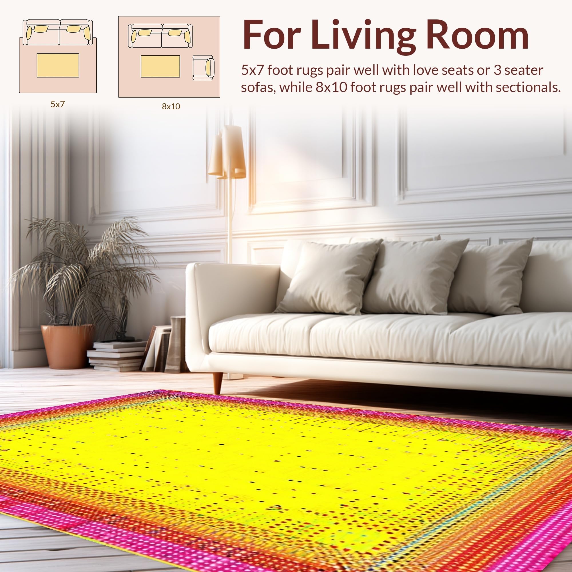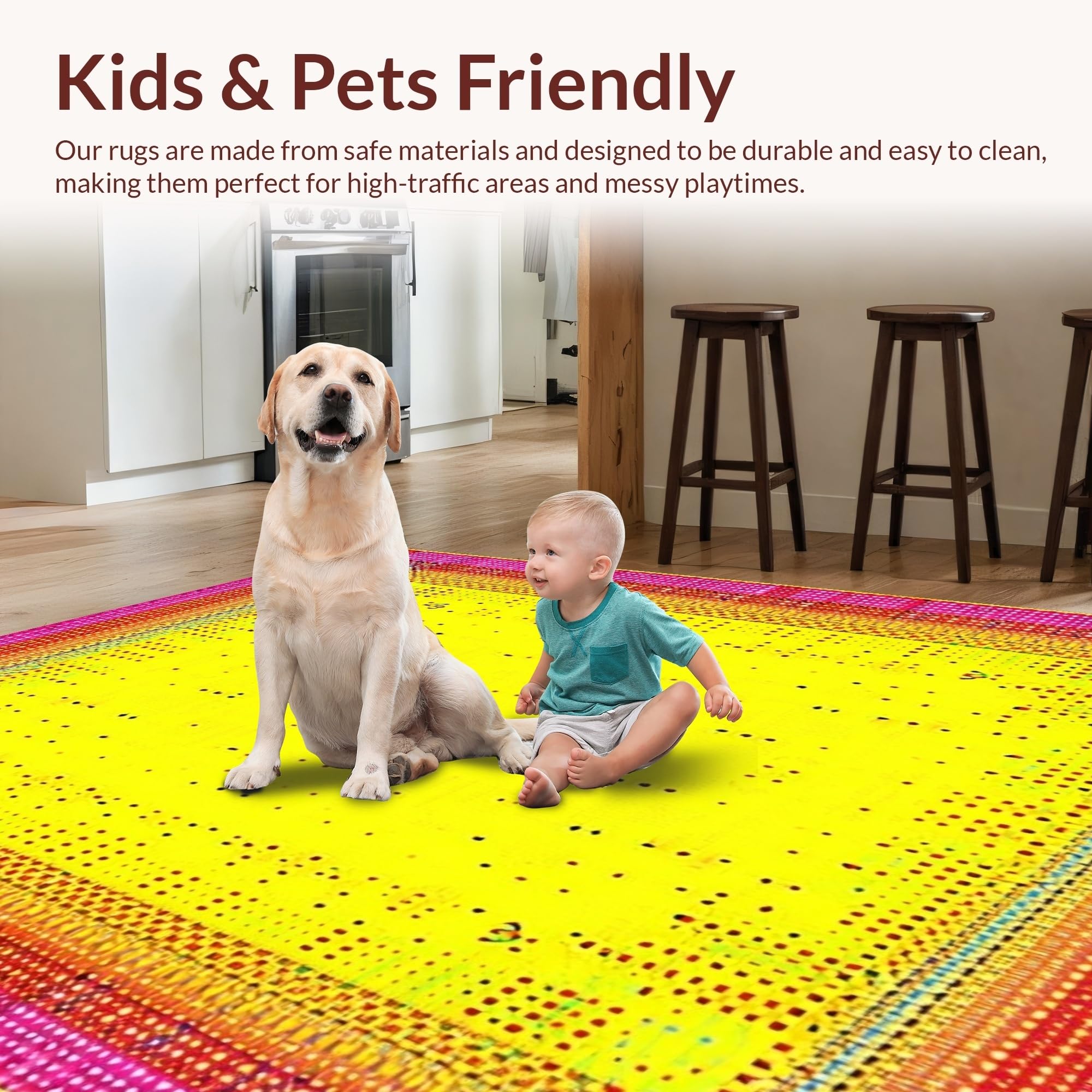 Ultra Soft Area Rug, Non Slip, Stain Resistant, Washable Area Rugs for Living Room, Bedroom, Lively Multicolored Artful Composition(Yellow) Overview: