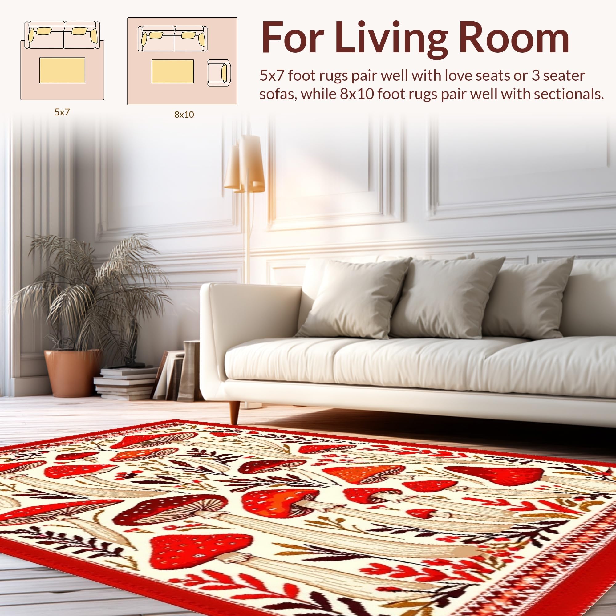 Ultra Soft Area Rug, Non Slip, Stain Resistant, Washable Area Rugs for Living Room, Bedroom, Lively Nature-inspired Bath Decor(Red) Overview: