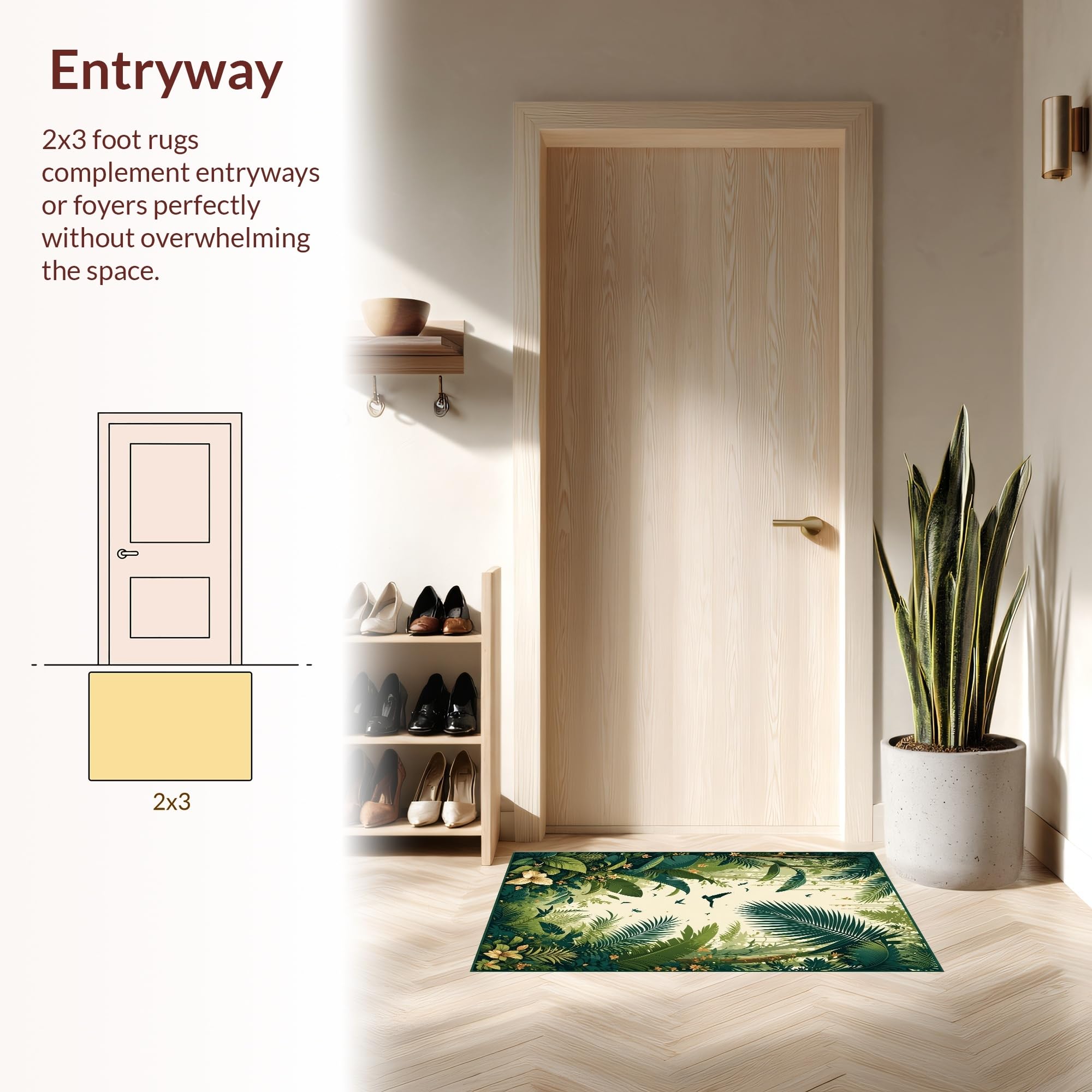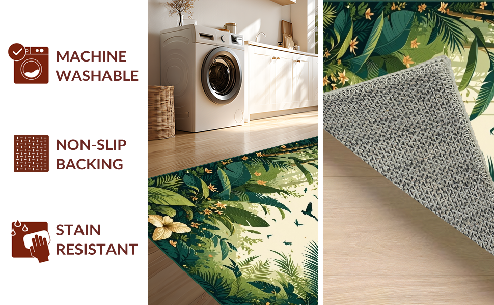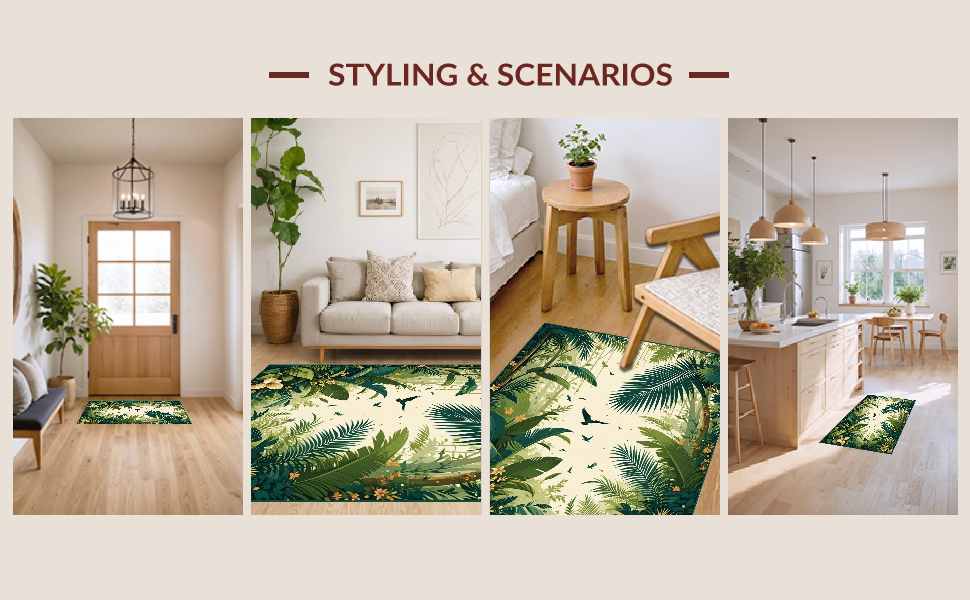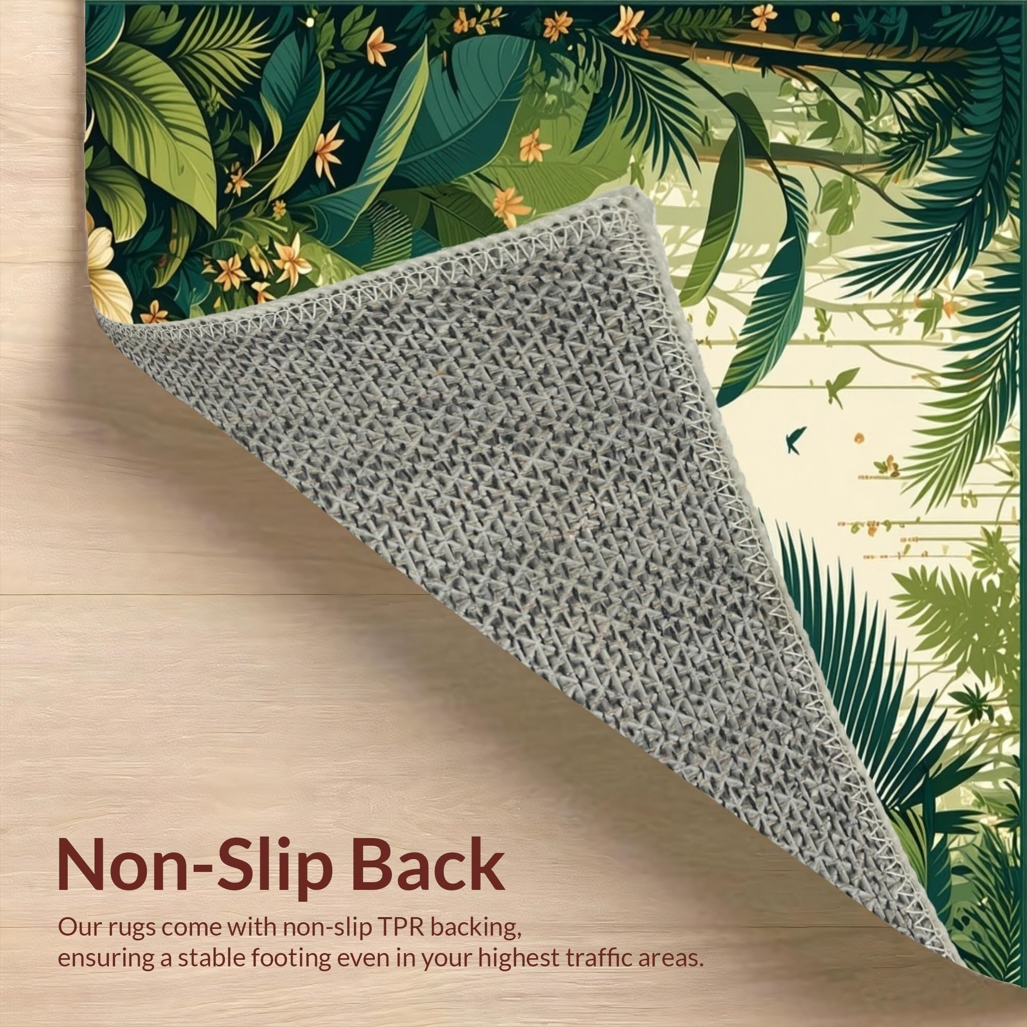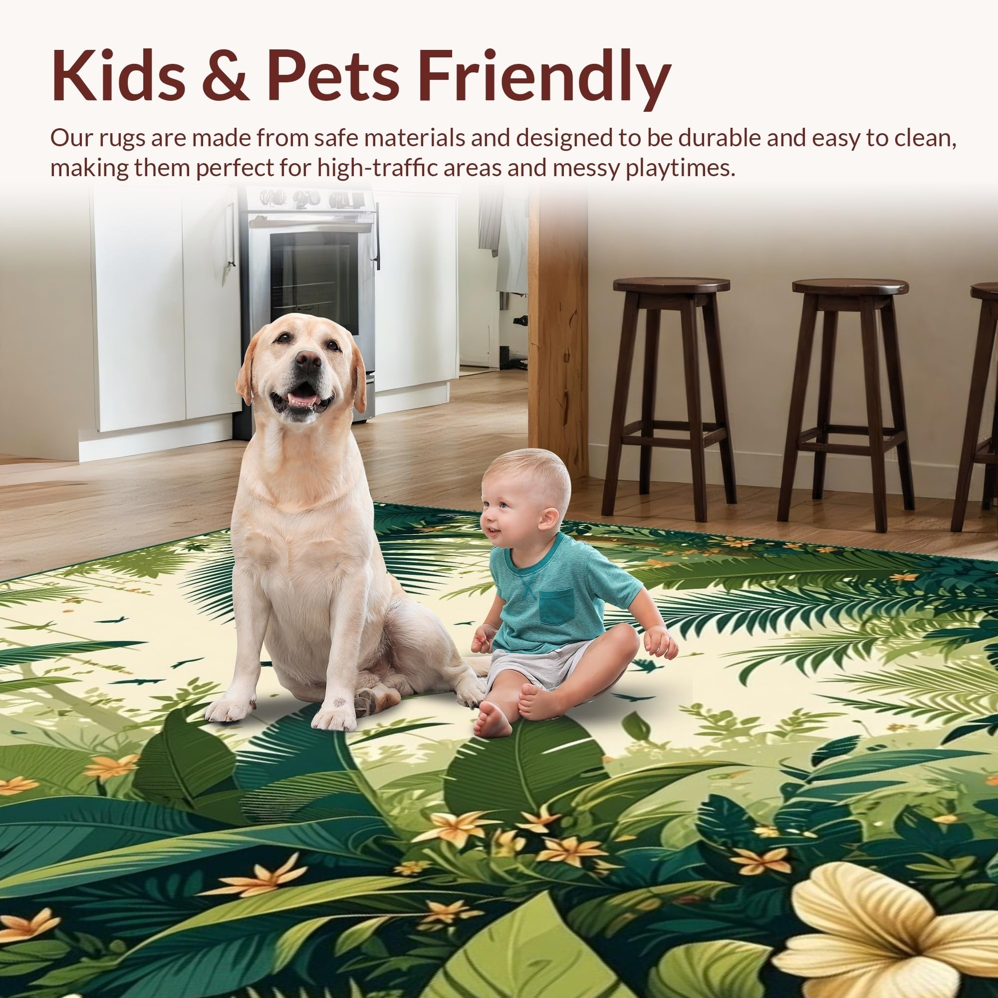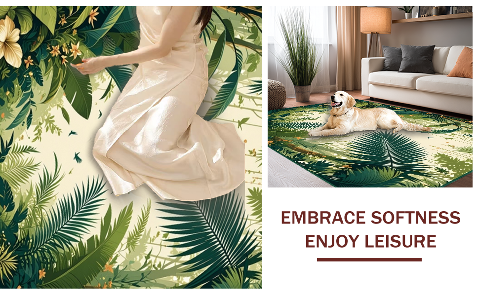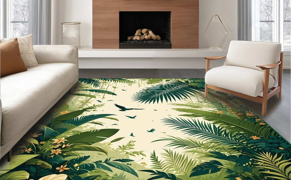 Ultra Soft Area Rug, Non Slip, Stain Resistant, Washable Area Rugs for Living Room, Bedroom, Lively Nature-Inspired Composition(Green) Overview:
