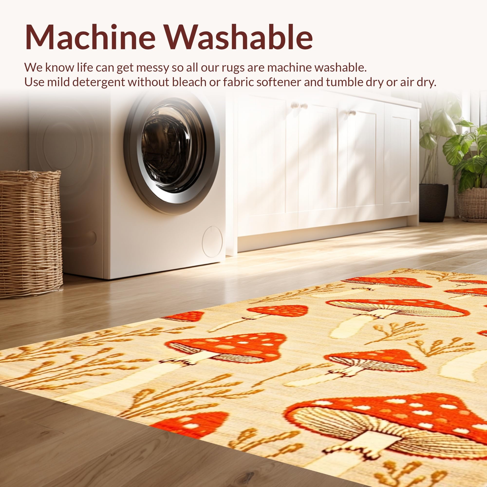 - Machine Washable: Our rugs can be easily thrown in the wash machine.