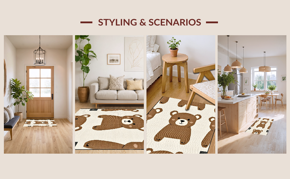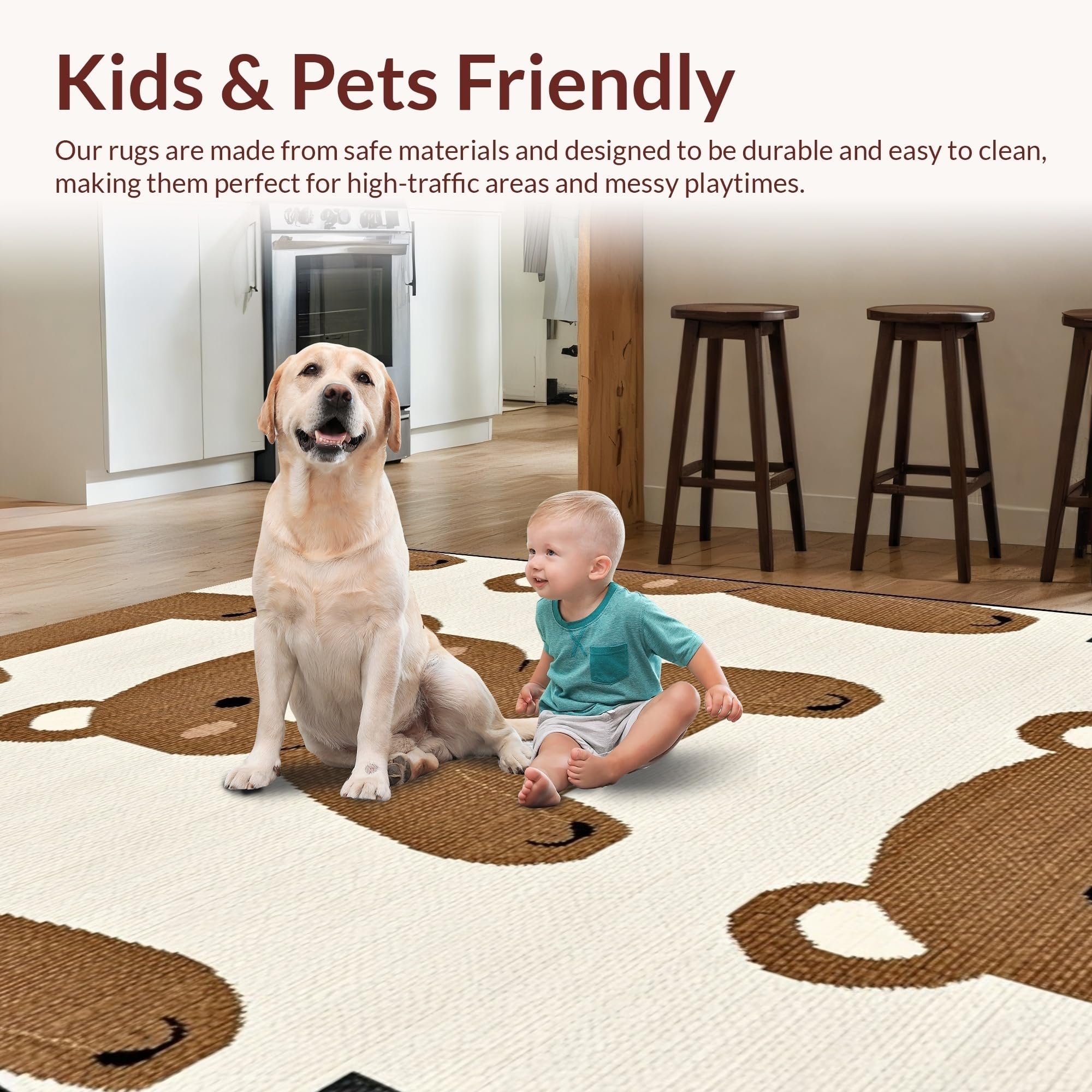 Ultra Soft Area Rug, Non Slip, Stain Resistant, Washable Area Rugs for Living Room, Bedroom, Lively Nature-Inspired Visual Elements(Beige) Overview: