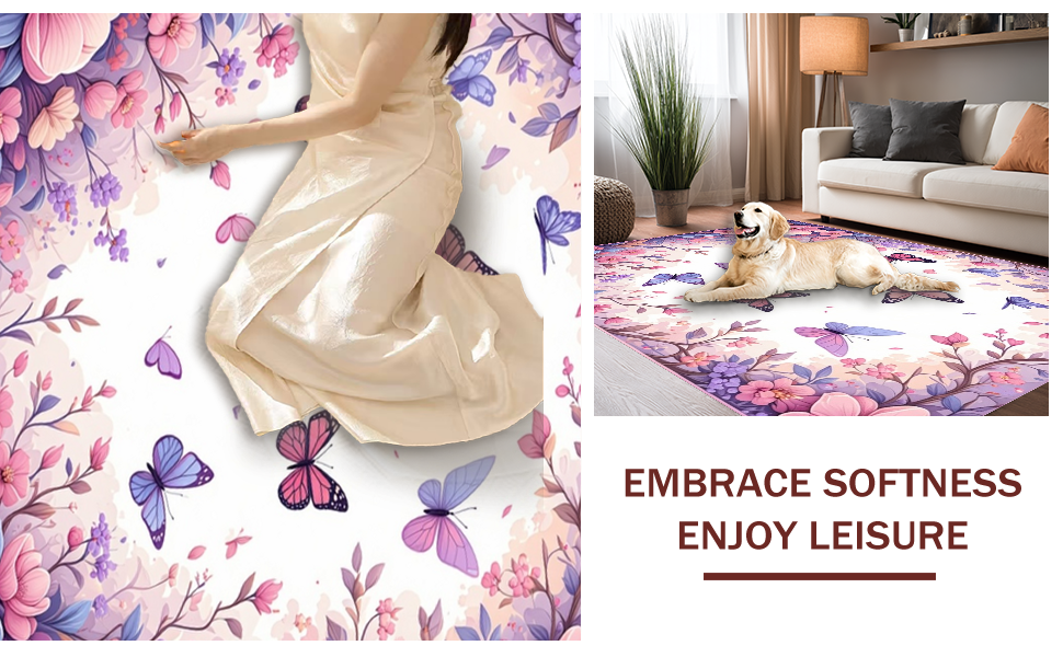 Ultra Soft Area Rug, Non Slip, Stain Resistant, Washable Area Rugs for Living Room, Bedroom, Lively Nature-Themed Visual Appeal(Pink) Overview: