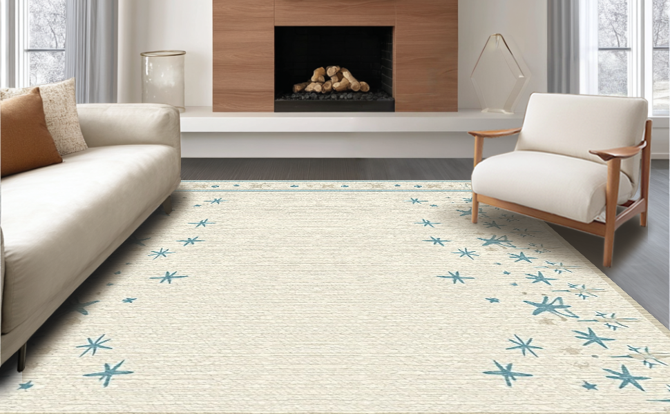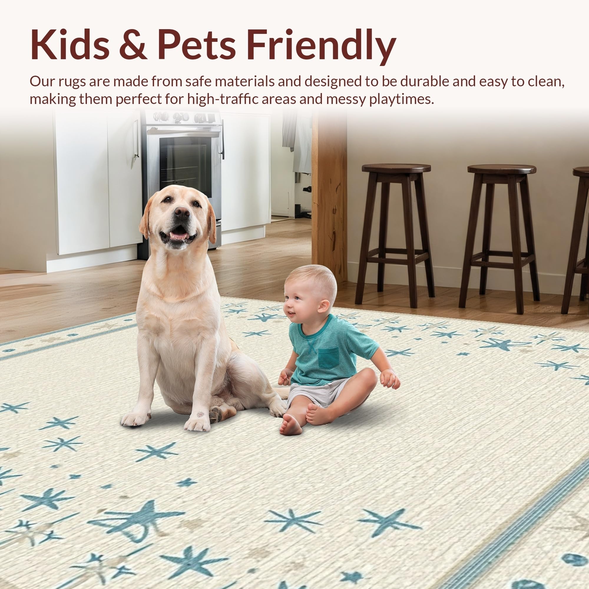 Ultra Soft Area Rug, Non Slip, Stain Resistant, Washable Area Rugs for Living Room, Bedroom, Lively Ocean Breeze Inspired Decor(Beige) Overview: