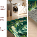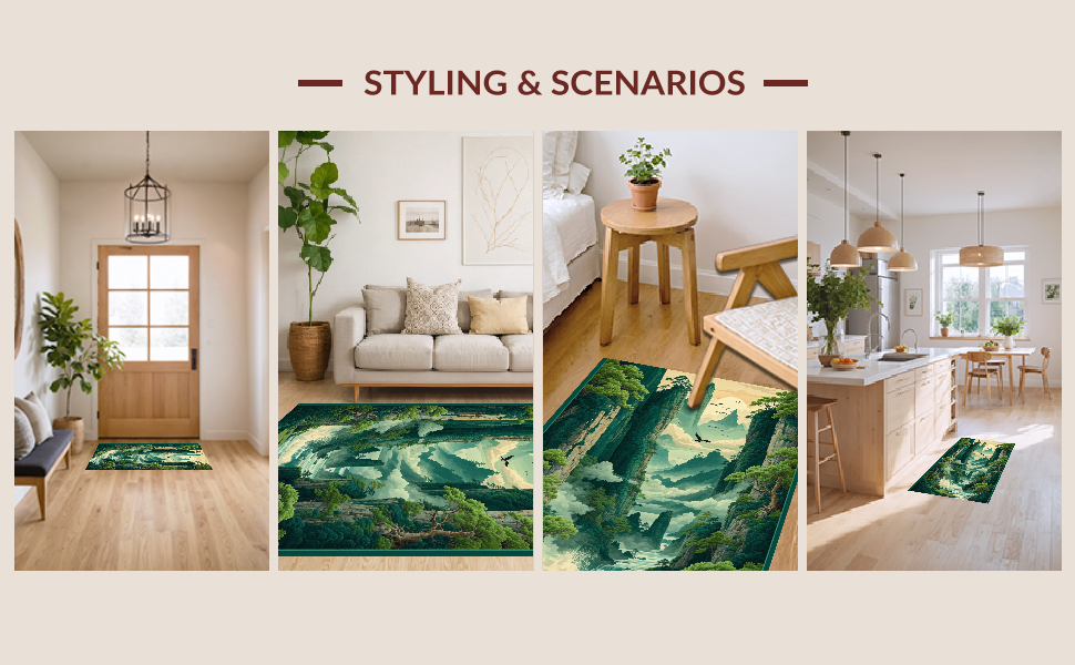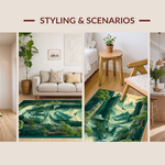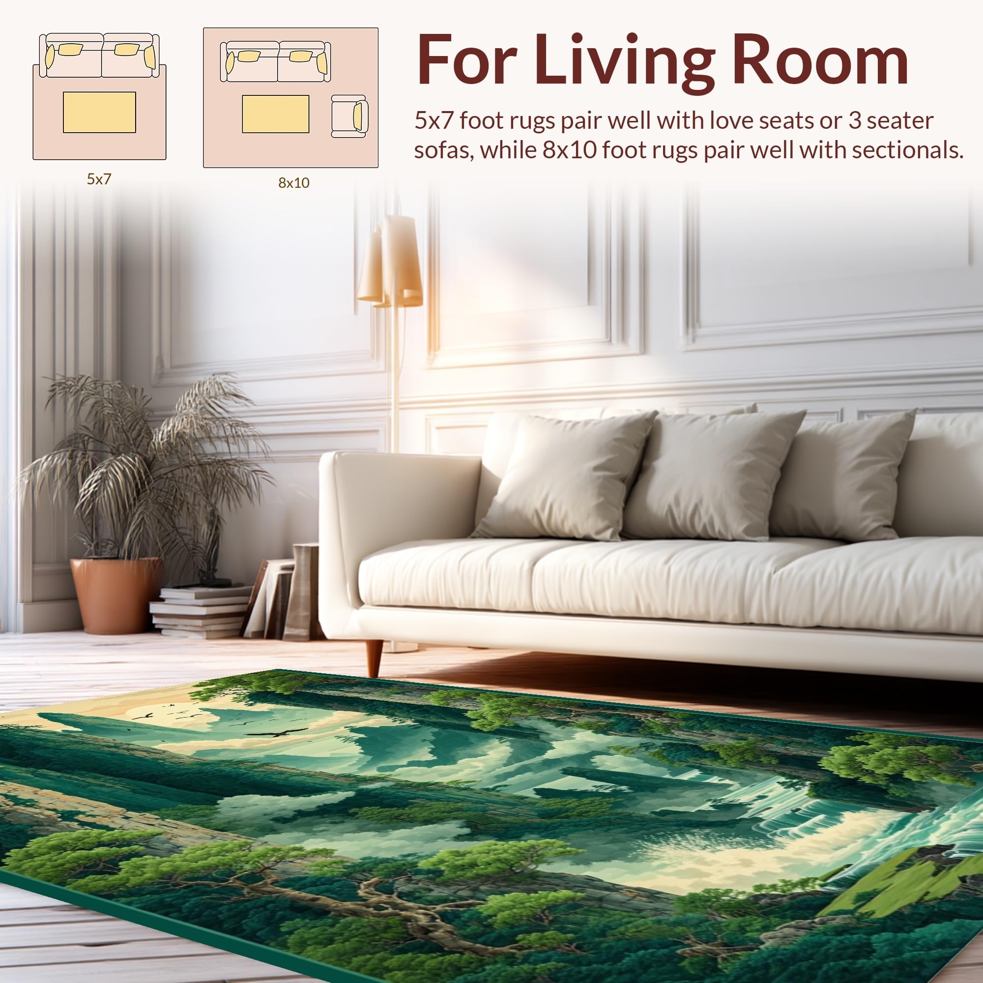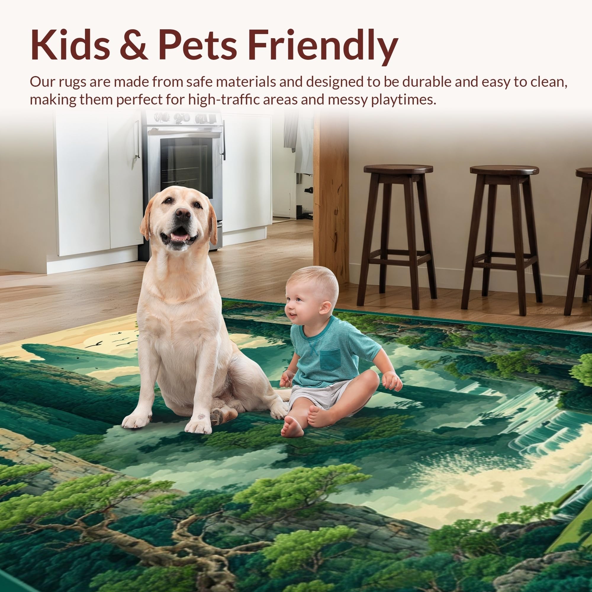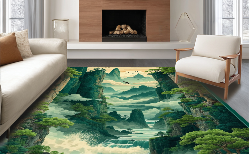 Ultra Soft Area Rug, Non Slip, Stain Resistant, Washable Area Rugs for Living Room, Bedroom, Lively Optical Graphic with Cranes(Green) Overview:
