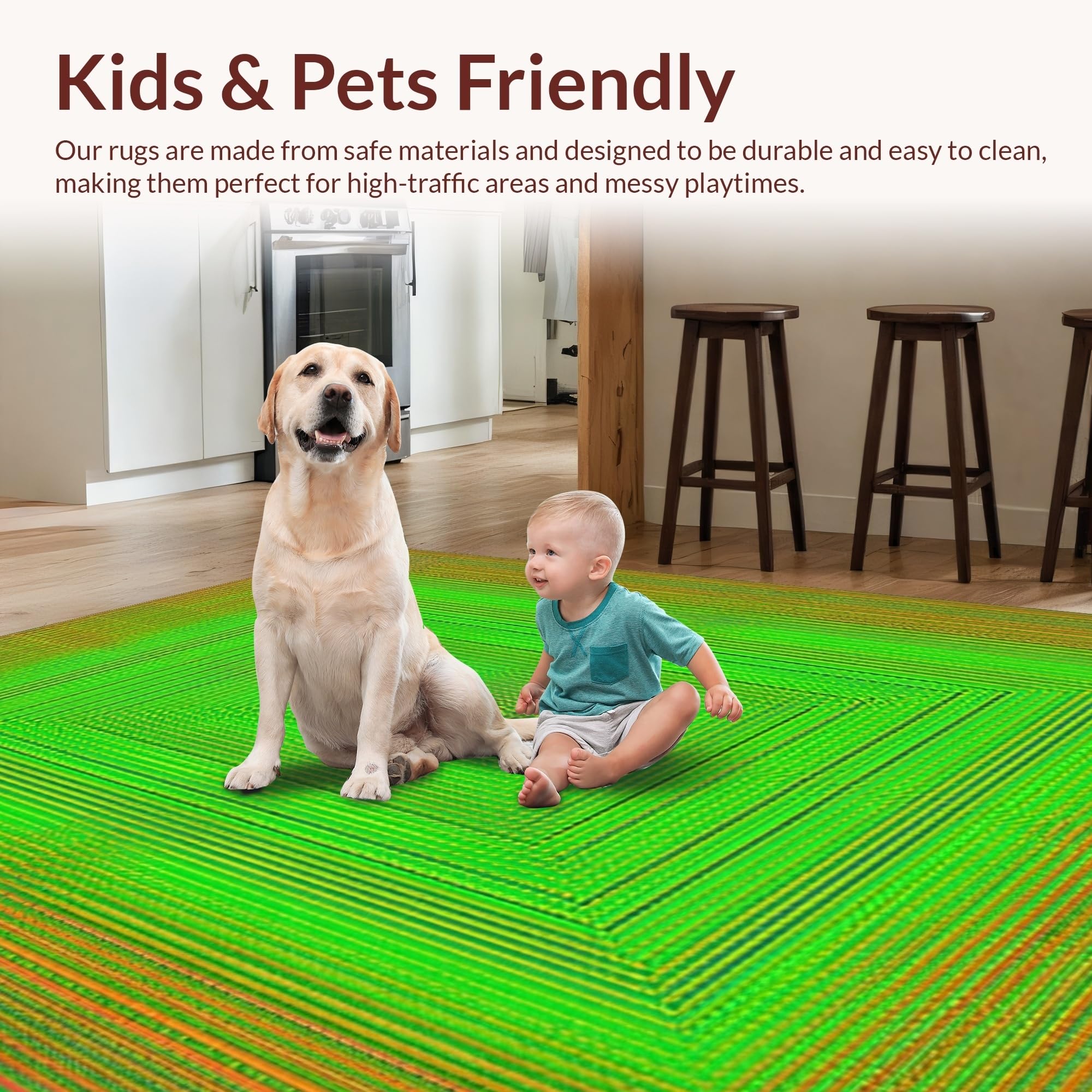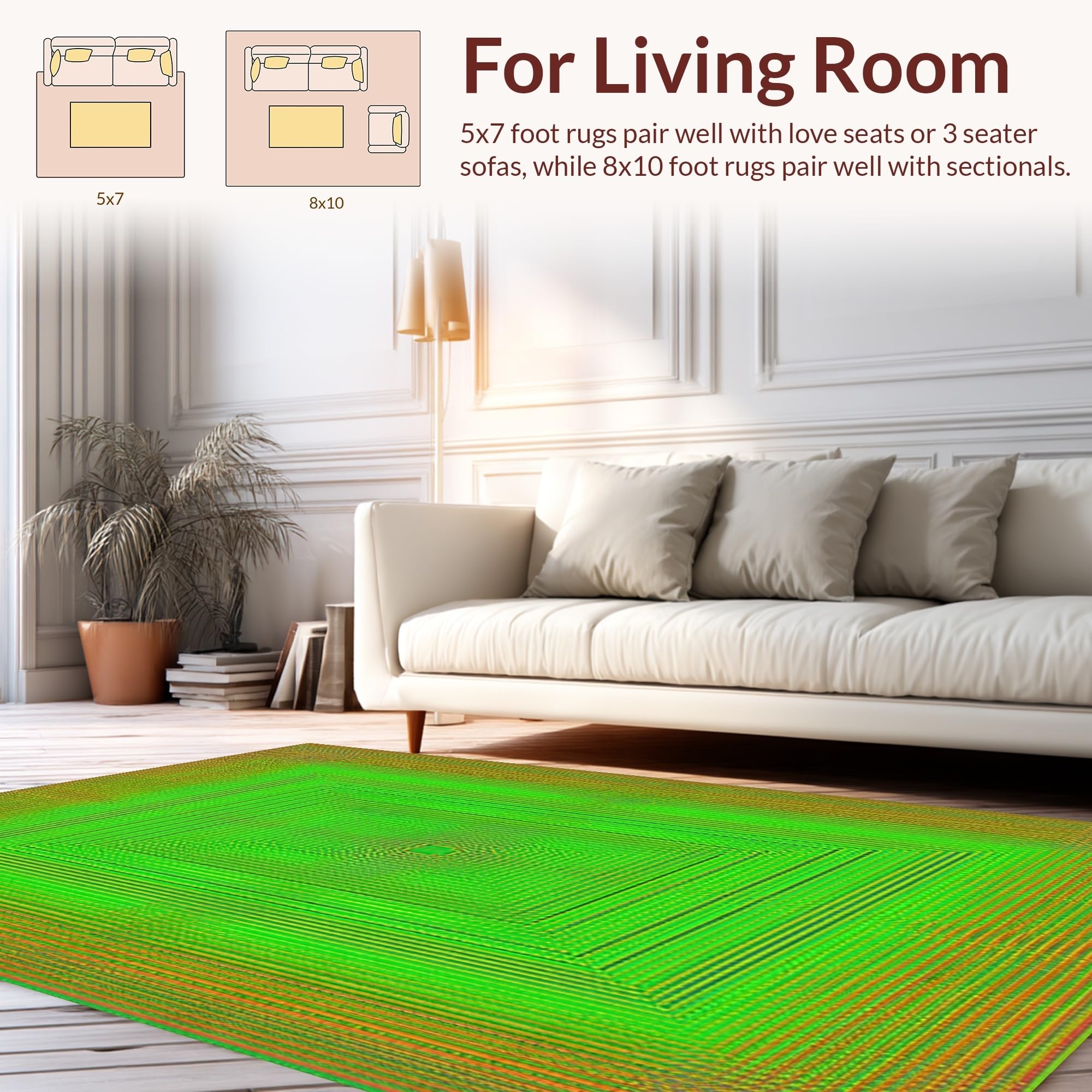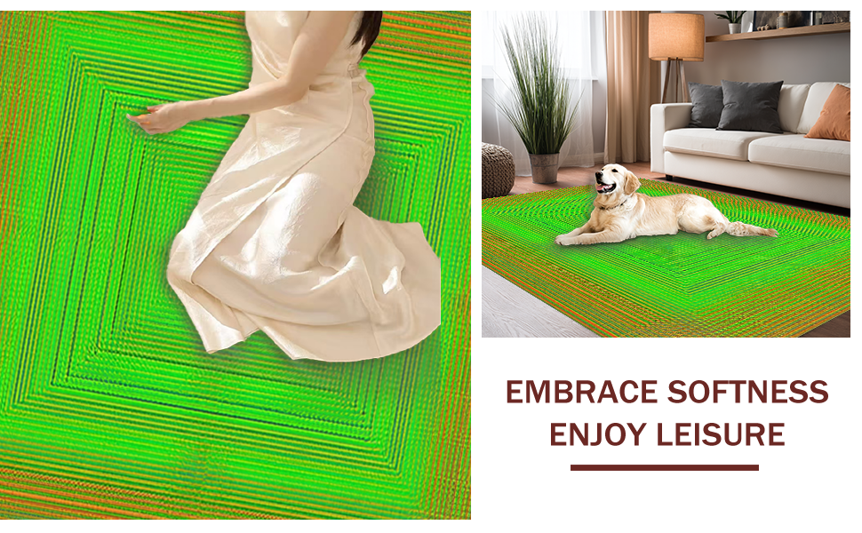 Ultra Soft Area Rug, Non Slip, Stain Resistant, Washable Area Rugs for Living Room, Bedroom, Lively Optical Illusion Aesthetic(Green) Overview:
