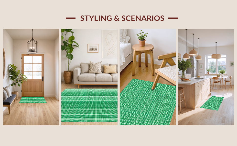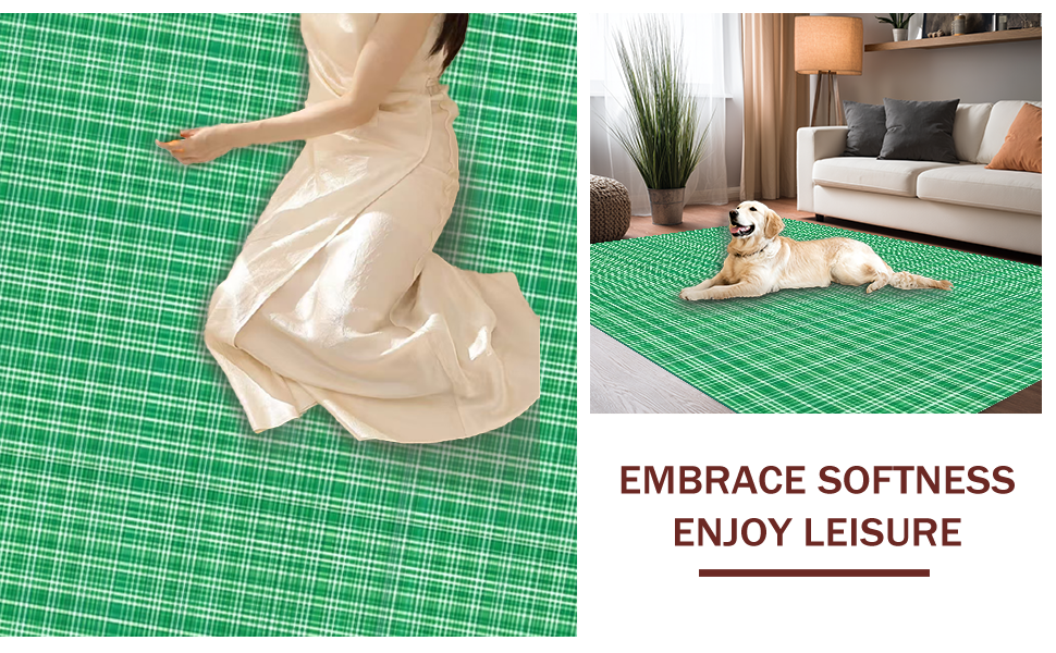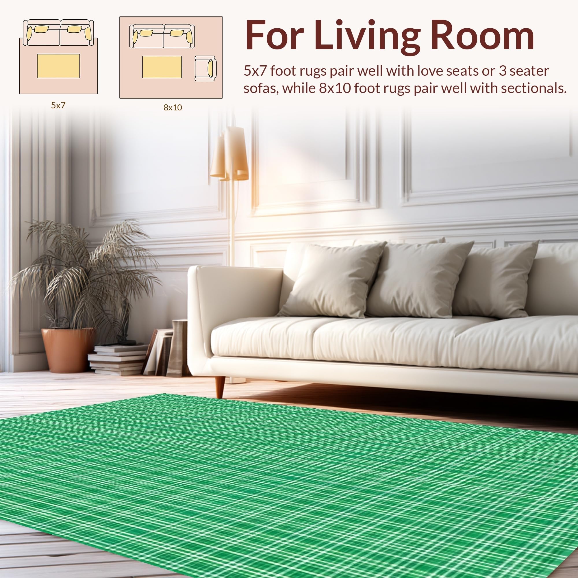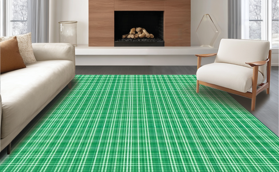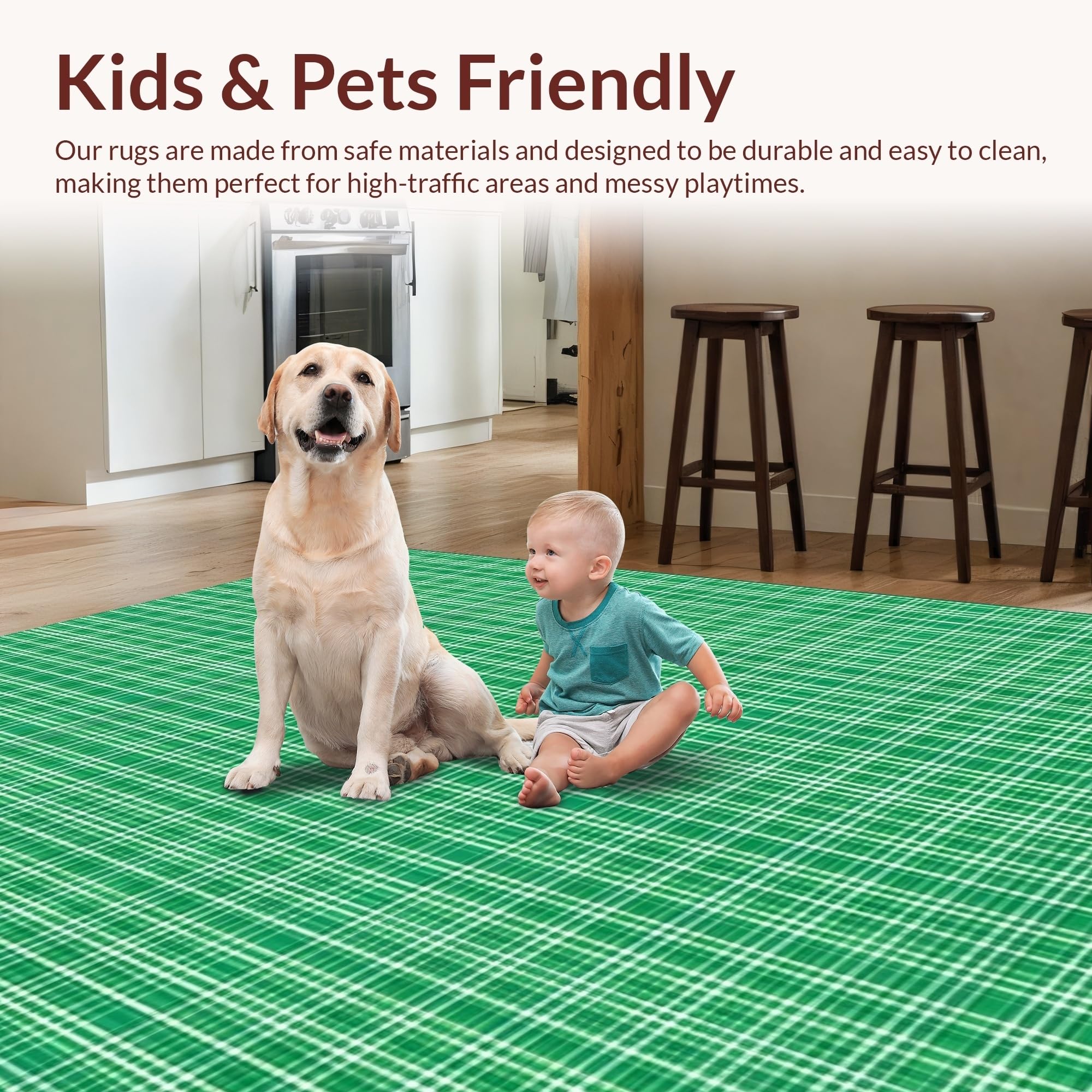 Ultra Soft Area Rug, Non Slip, Stain Resistant, Washable Area Rugs for Living Room, Bedroom, Lively Organic Geometric Motif(Green) Overview: