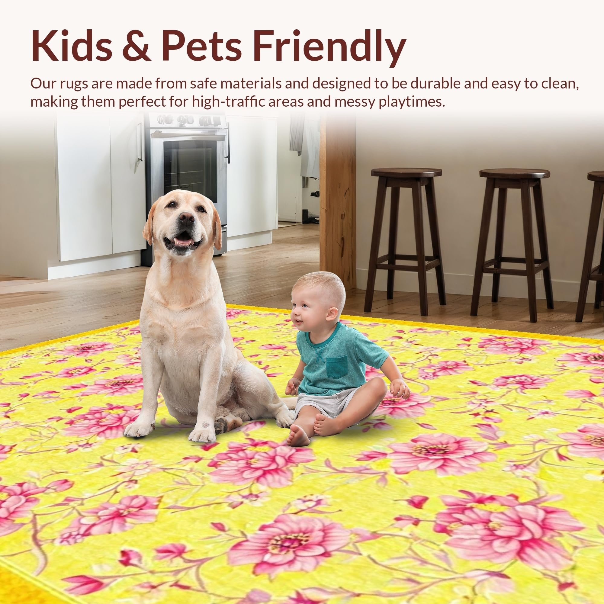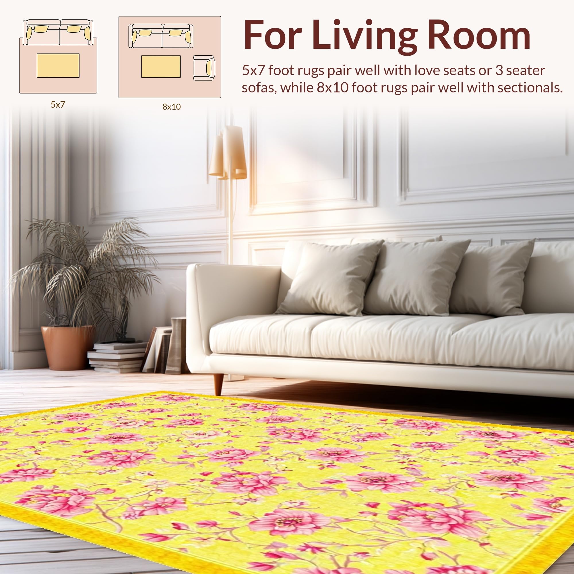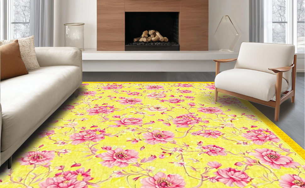 Ultra Soft Area Rug, Non Slip, Stain Resistant, Washable Area Rugs for Living Room, Bedroom, Lively Organic Shape Decor Element(Yellow) Overview: