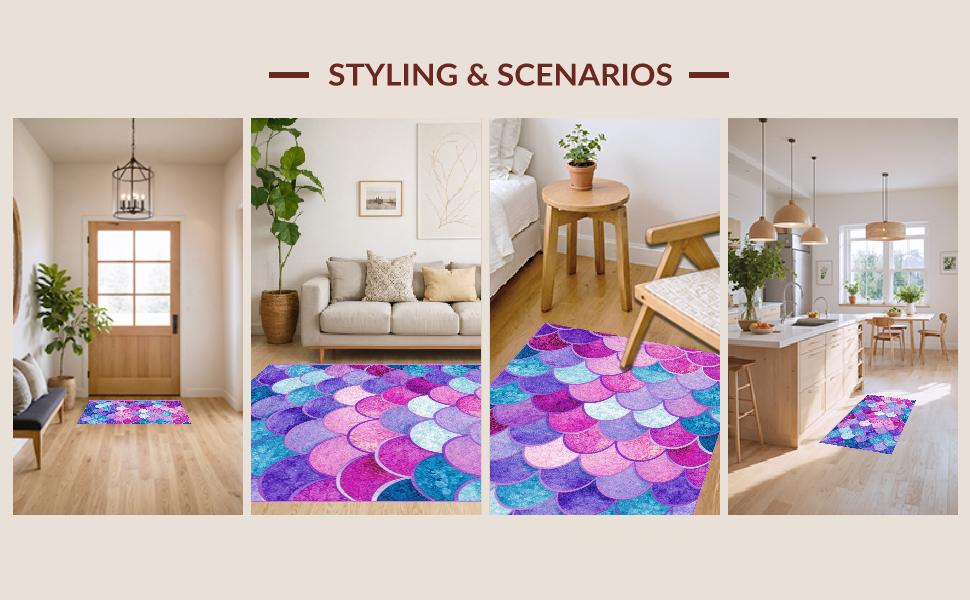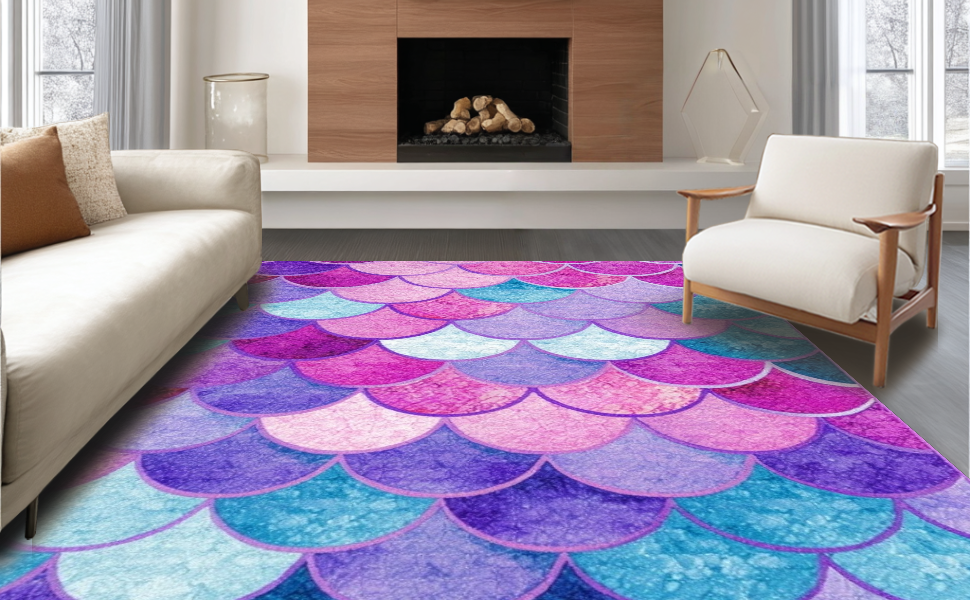Ultra Soft Area Rug, Non Slip, Stain Resistant, Washable Area Rugs for Living Room, Bedroom, Lively Pastel Scallop Arrangement(Pink) Overview: