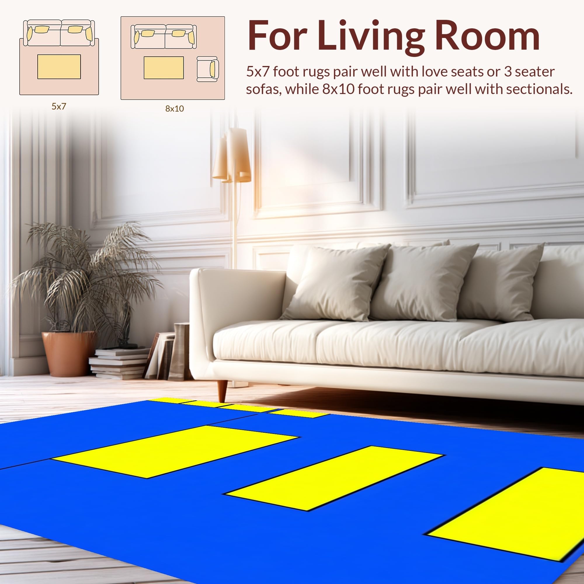Ultra Soft Area Rug, Non Slip, Stain Resistant, Washable Area Rugs for Living Room, Bedroom, Lively Patterned Playful Visual Appeal(Blue) Overview: