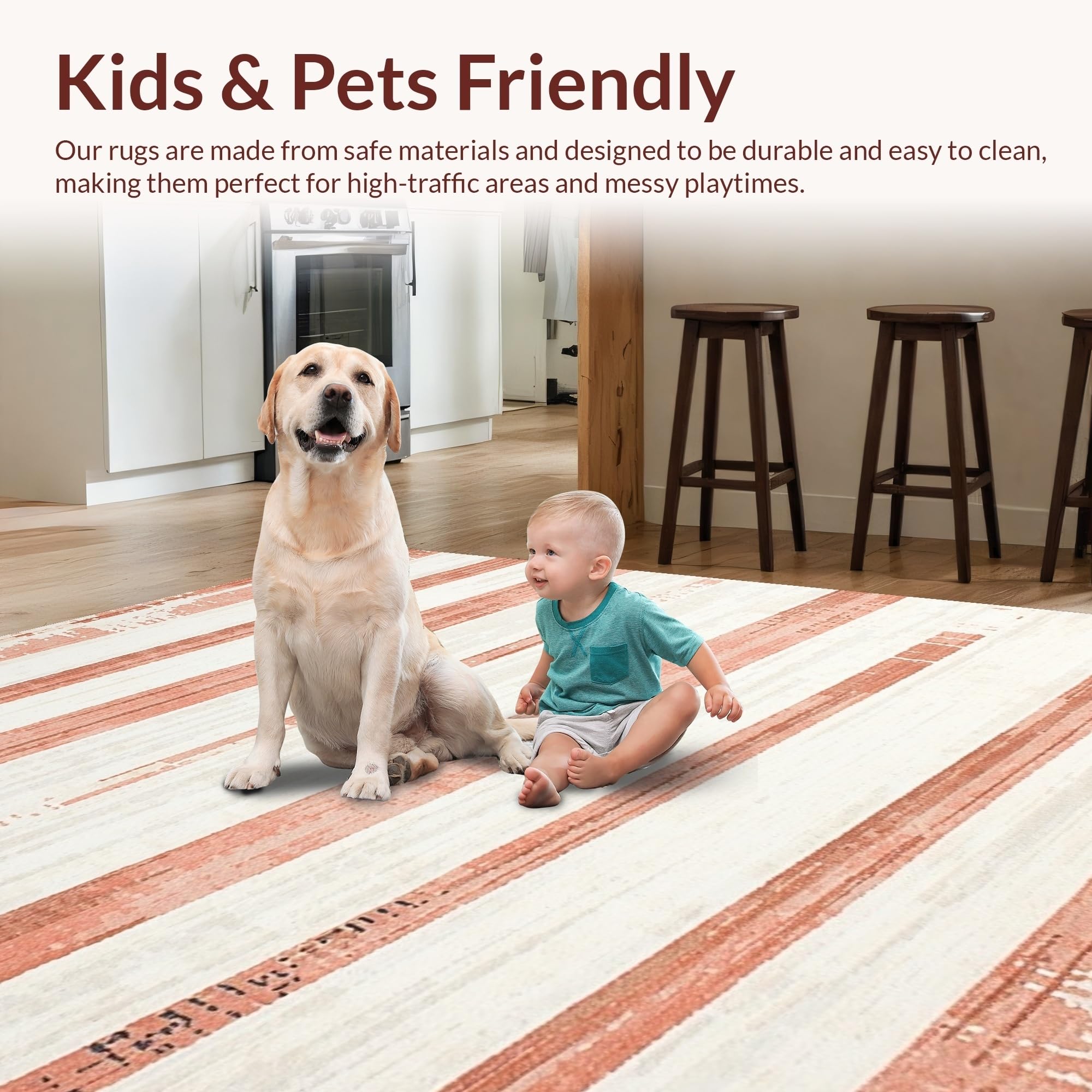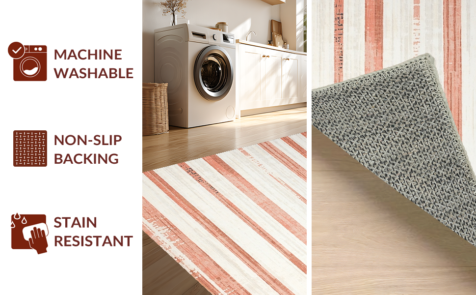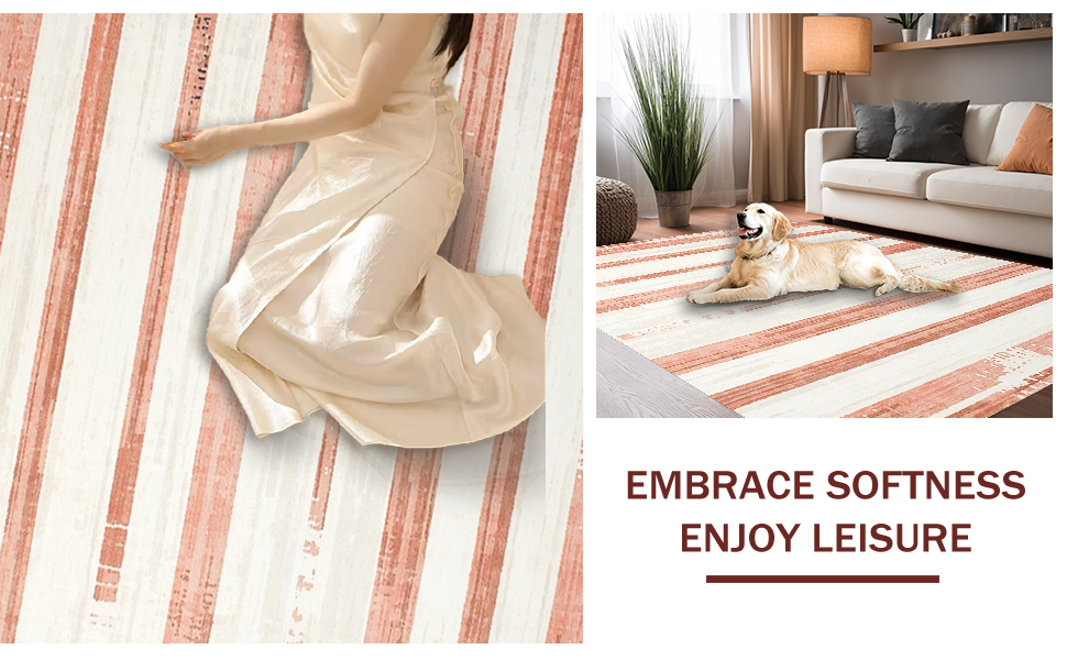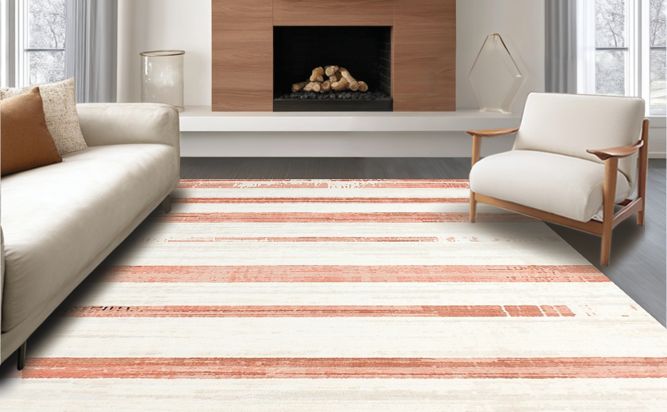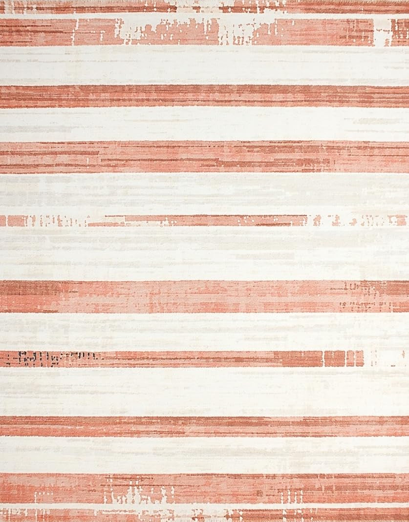 Ultra Soft Area Rug, Non Slip, Stain Resistant, Washable Area Rugs for Living Room, Bedroom, Lively Peach and Ivory Contrast(Red) Overview: