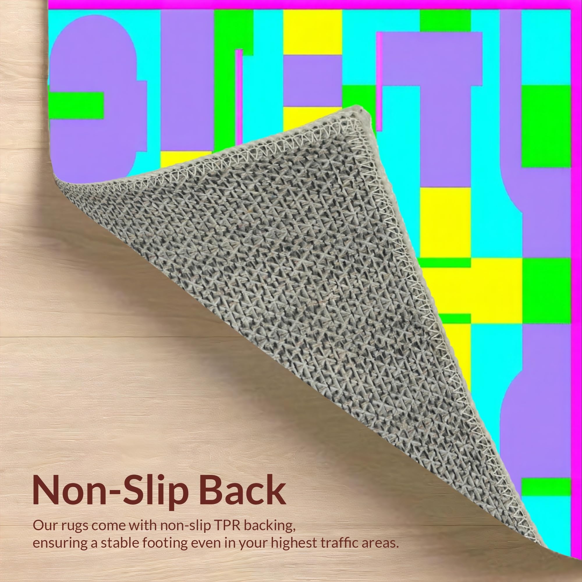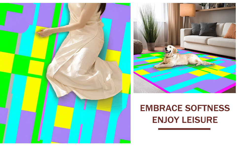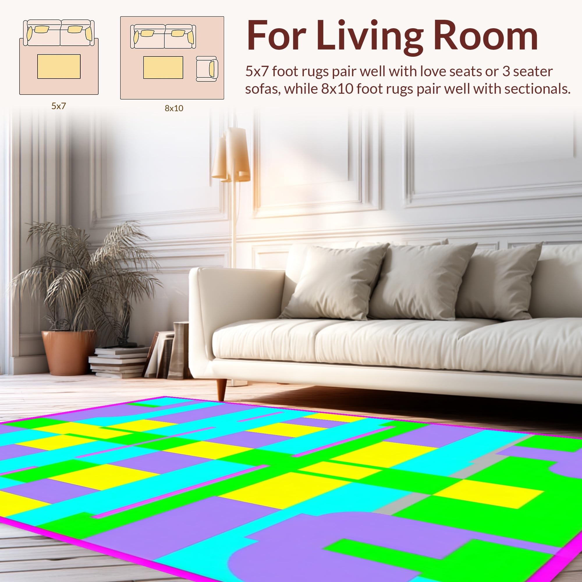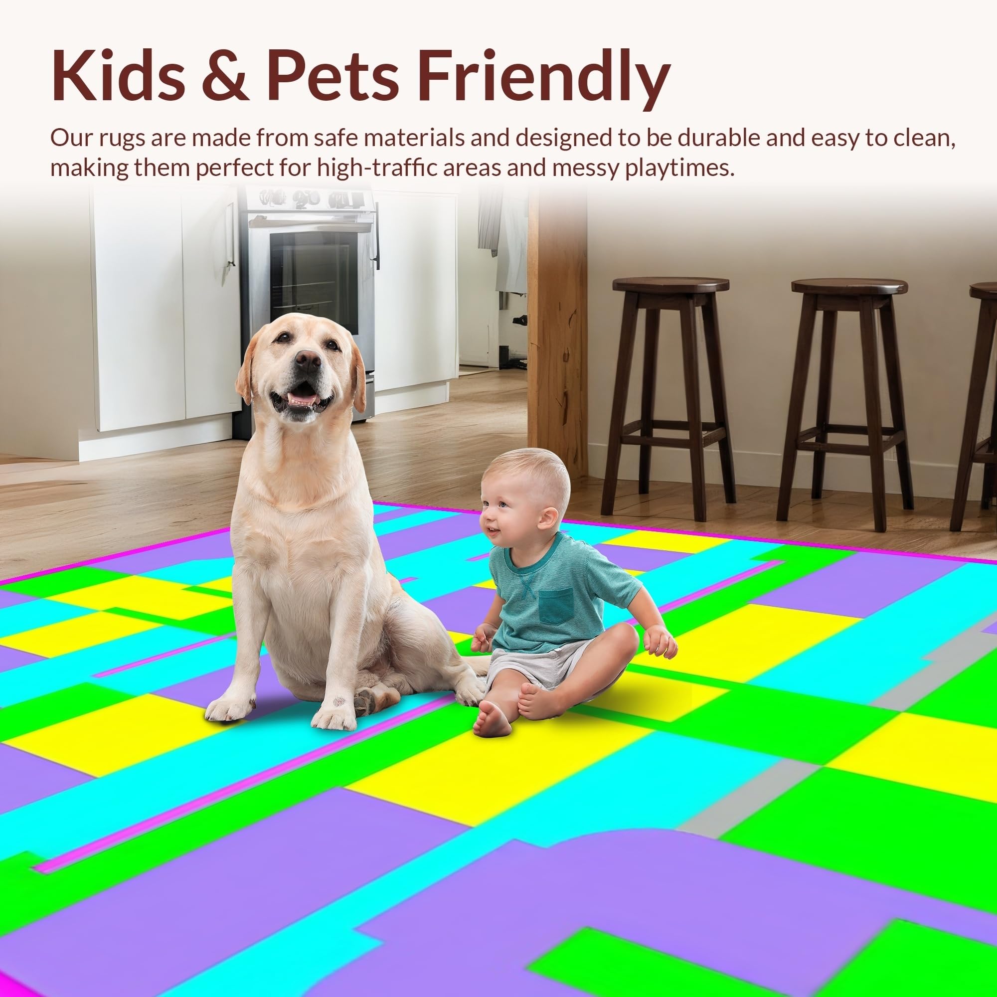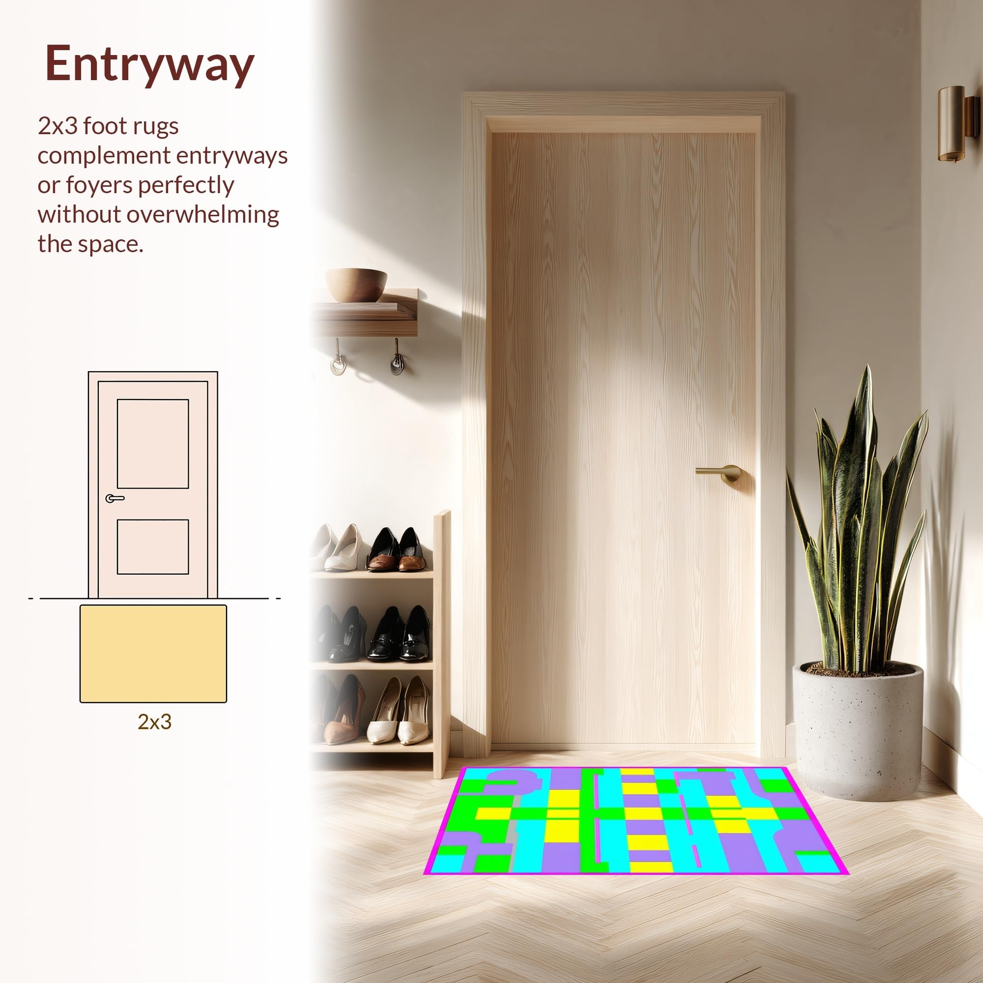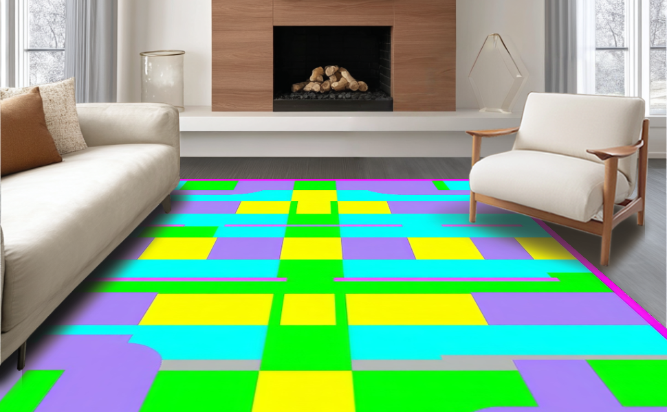 Ultra Soft Area Rug, Non Slip, Stain Resistant, Washable Area Rugs for Living Room, Bedroom, Lively Pink and White Checker(Green) Overview: