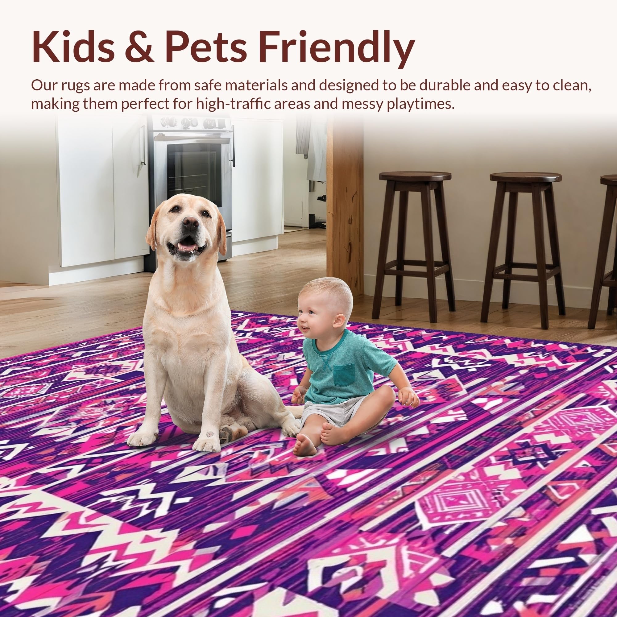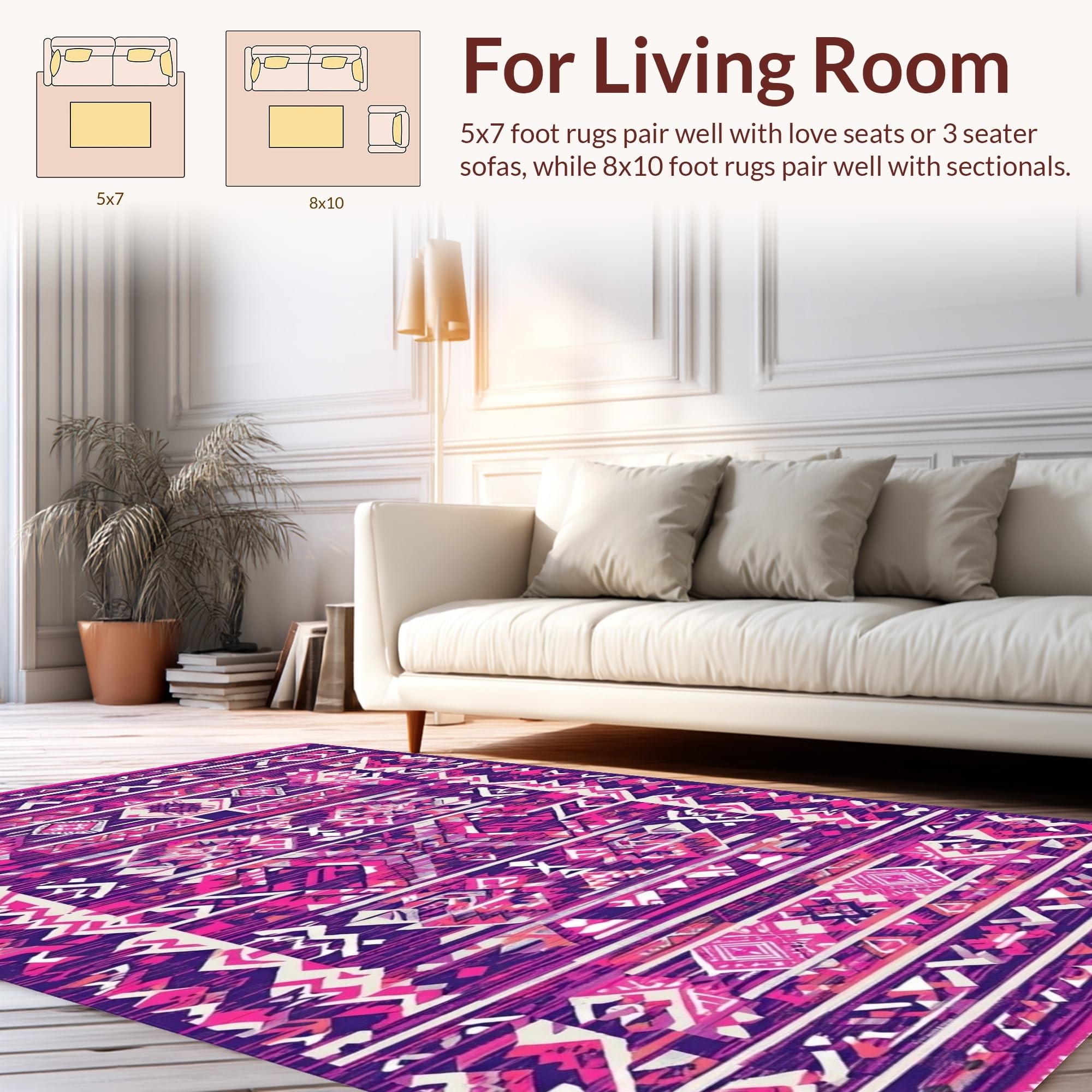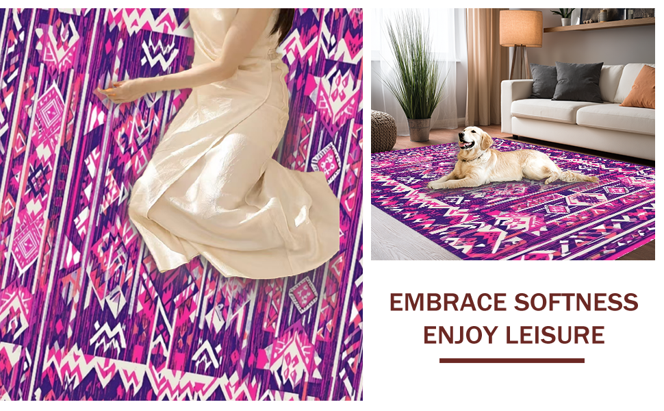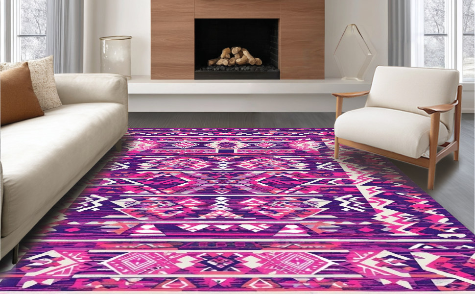 Ultra Soft Area Rug, Non Slip, Stain Resistant, Washable Area Rugs for Living Room, Bedroom, Lively Pink Purple Harmony(Purple) Overview: