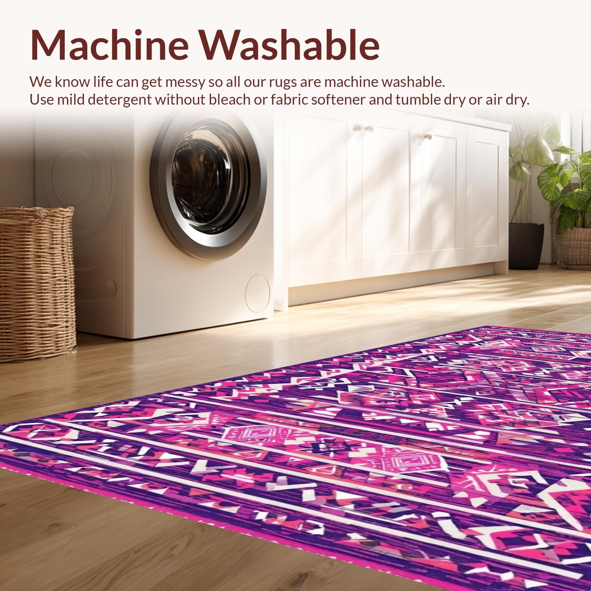 - Machine Washable: Our rugs can be easily thrown in the wash machine.