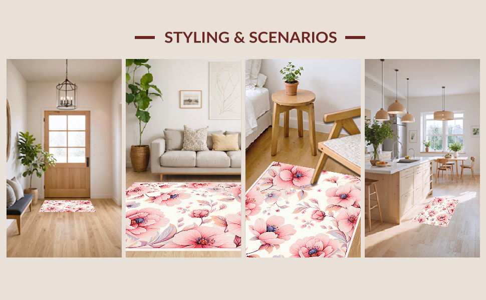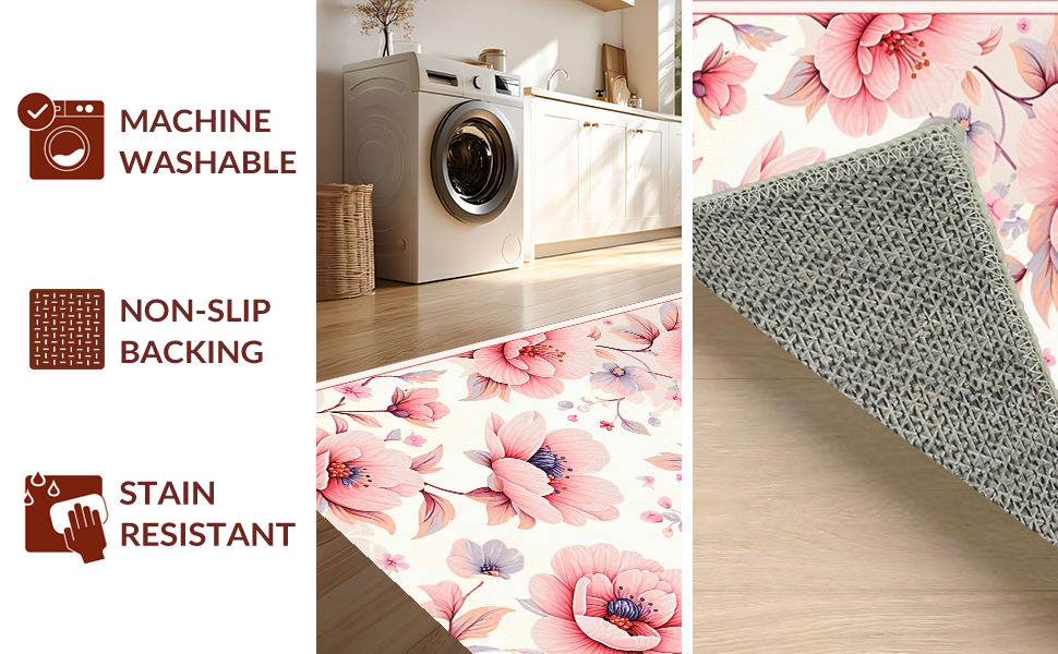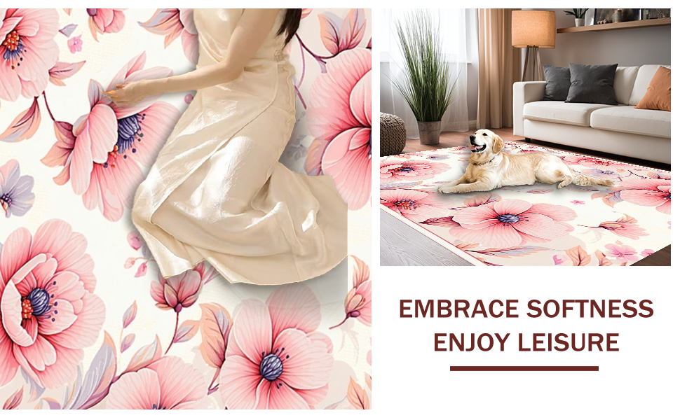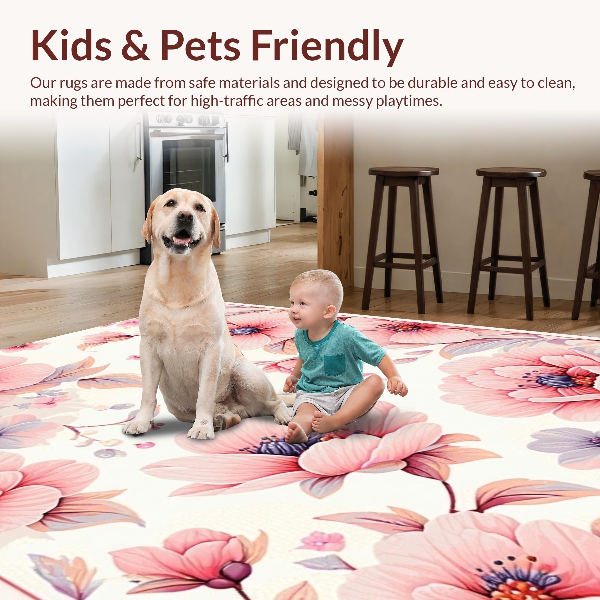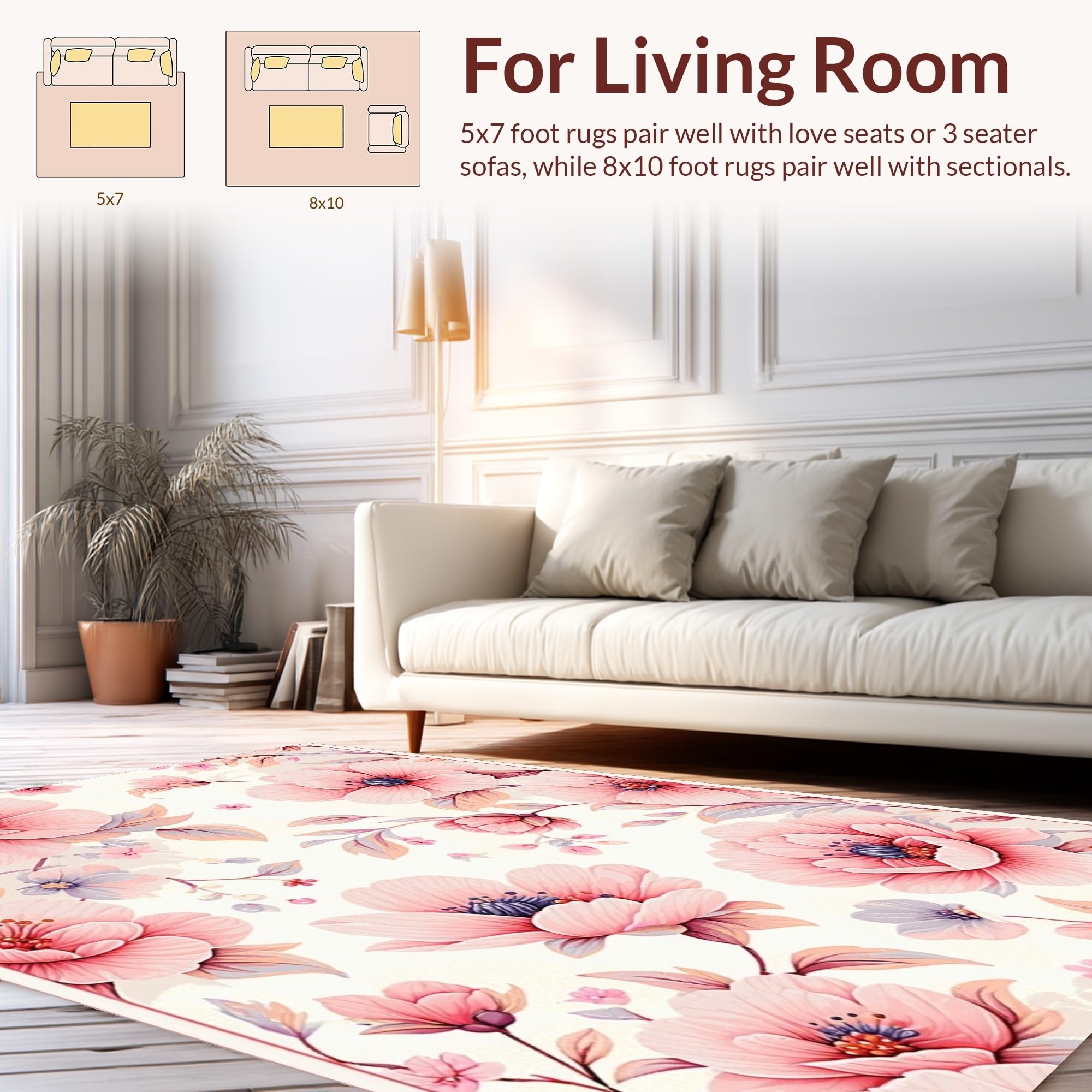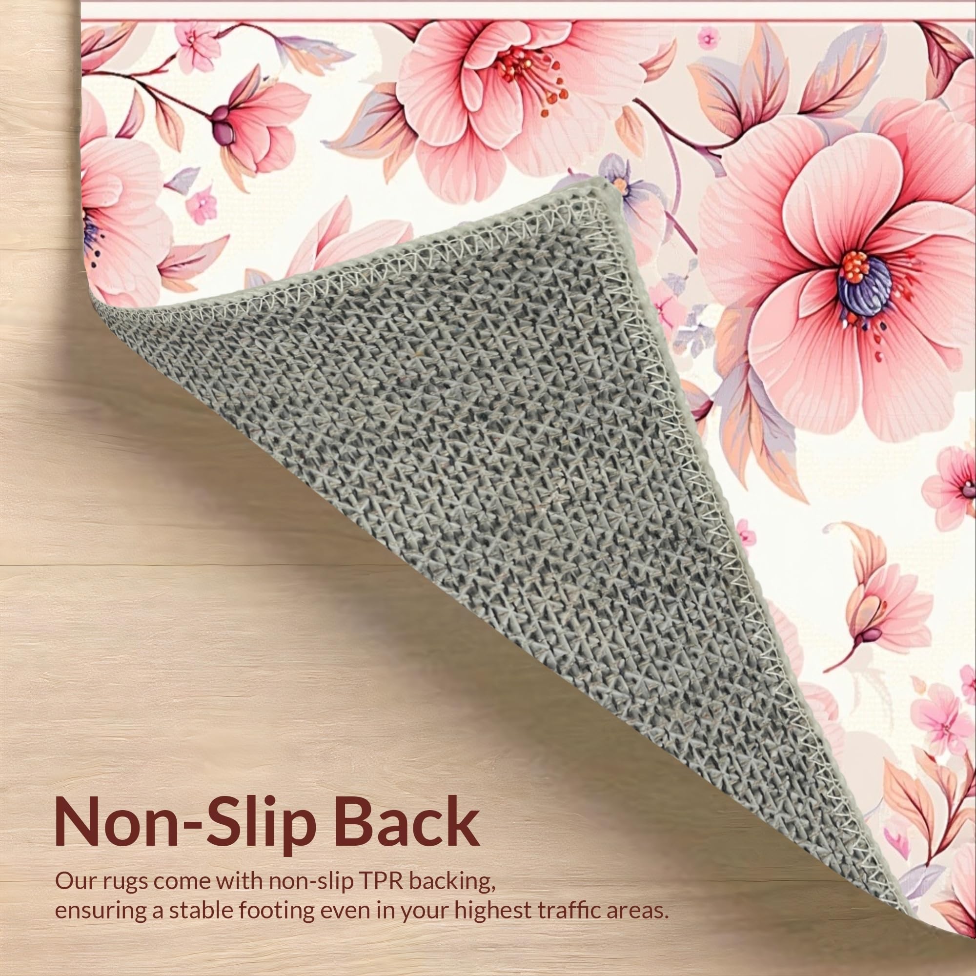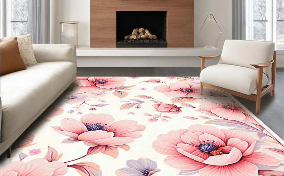 Ultra Soft Area Rug, Non Slip, Stain Resistant, Washable Area Rugs for Living Room, Bedroom, Lively Pink Spring Pattern(Pink) Overview:
