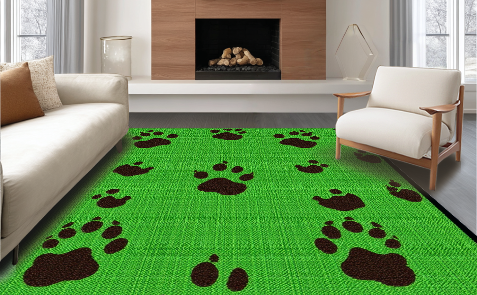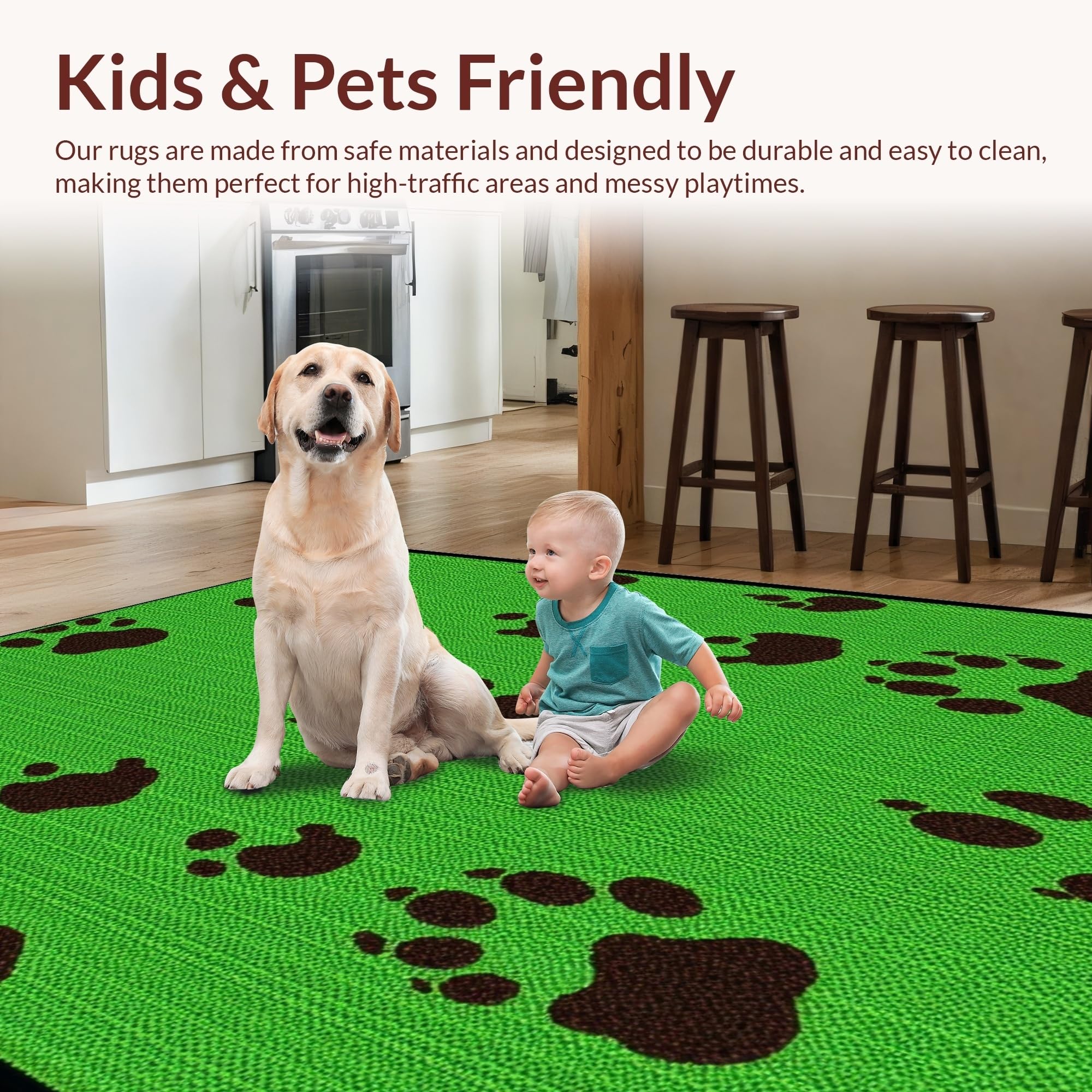 Ultra Soft Area Rug, Non Slip, Stain Resistant, Washable Area Rugs for Living Room, Bedroom, Lively Print Featuring Forest Fauna(Green) Overview: