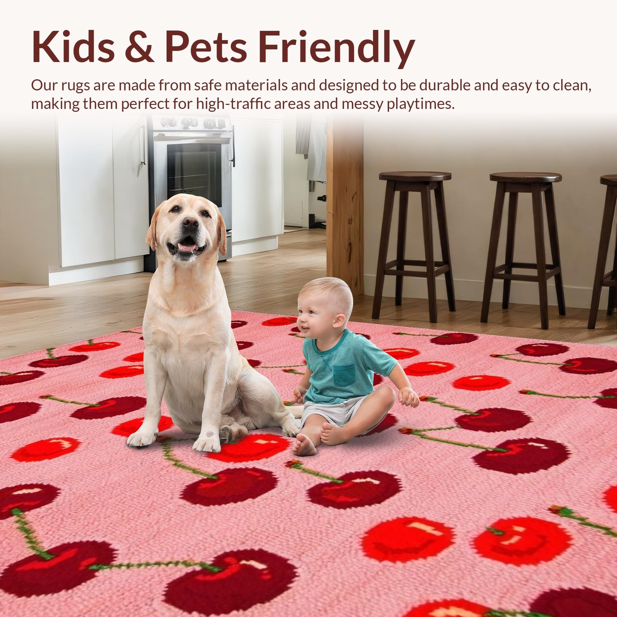 Ultra Soft Area Rug, Non Slip, Stain Resistant, Washable Area Rugs for Living Room, Bedroom, Lively Red and Pink Fusion(Pink) Overview: