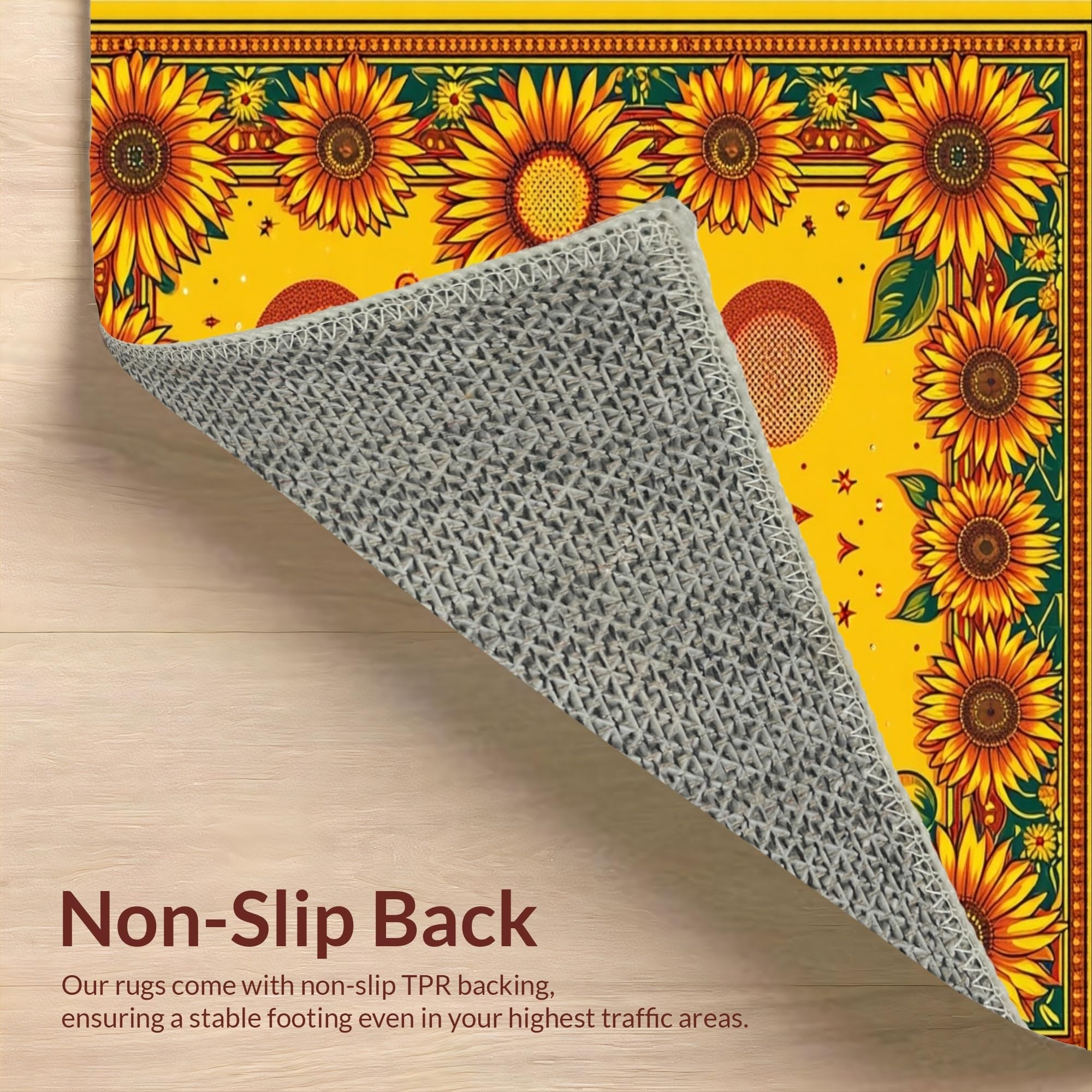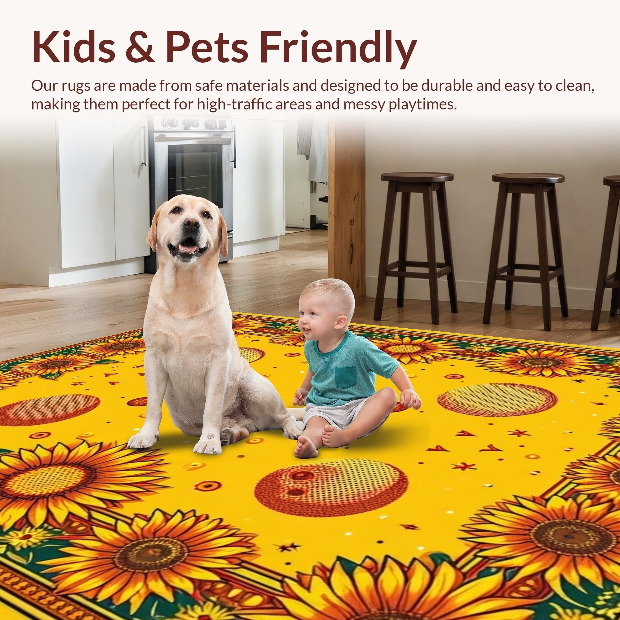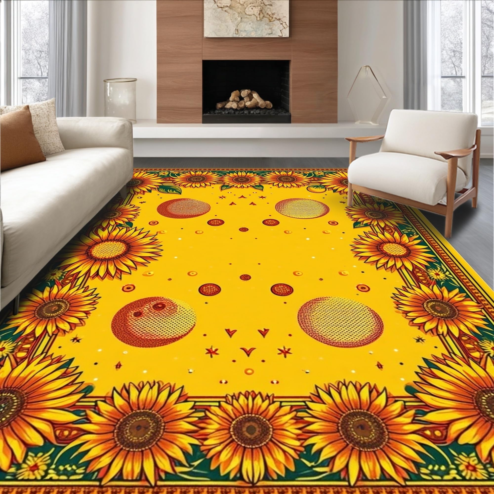 Ultra Soft Area Rug, Non Slip, Stain Resistant, Washable Area Rugs for Living Room, Bedroom, Lively Retro Cosmic Floral Style(Yellow) Overview: