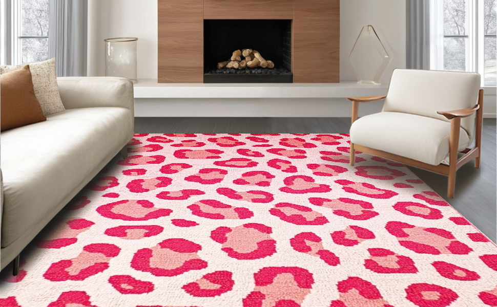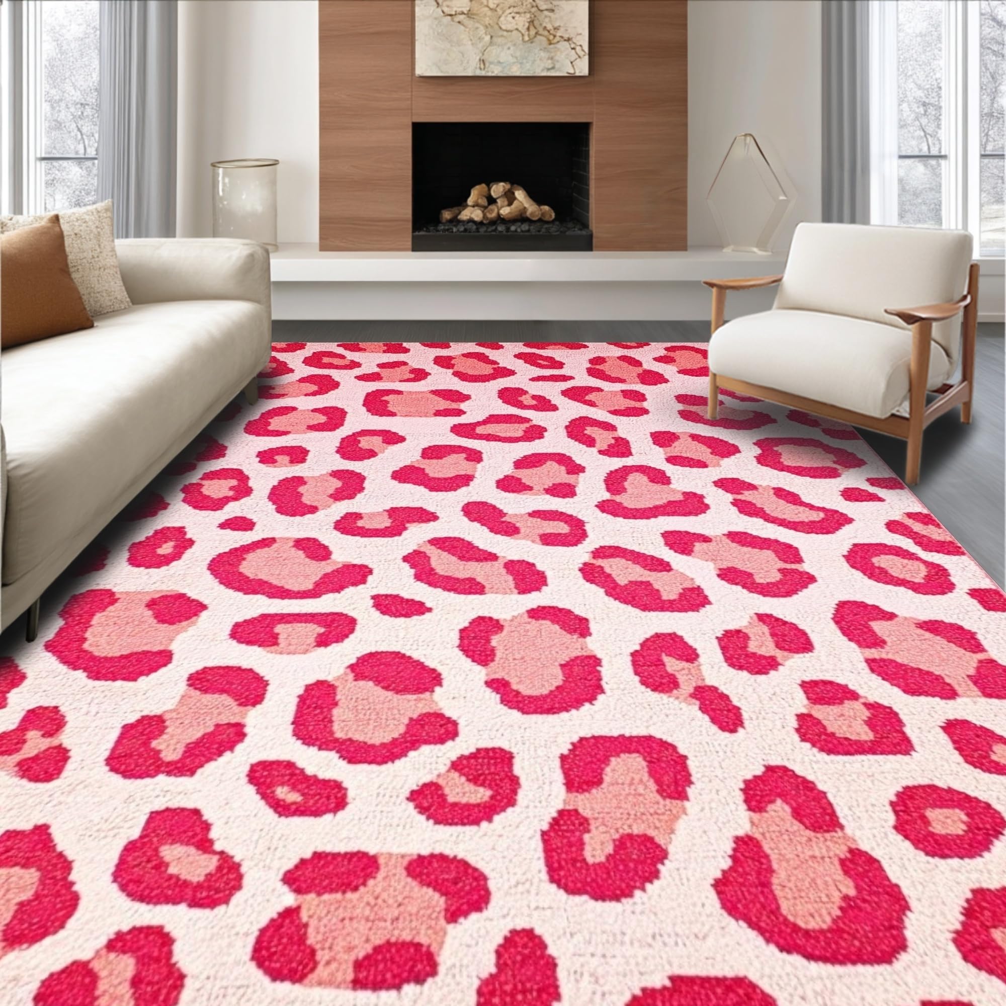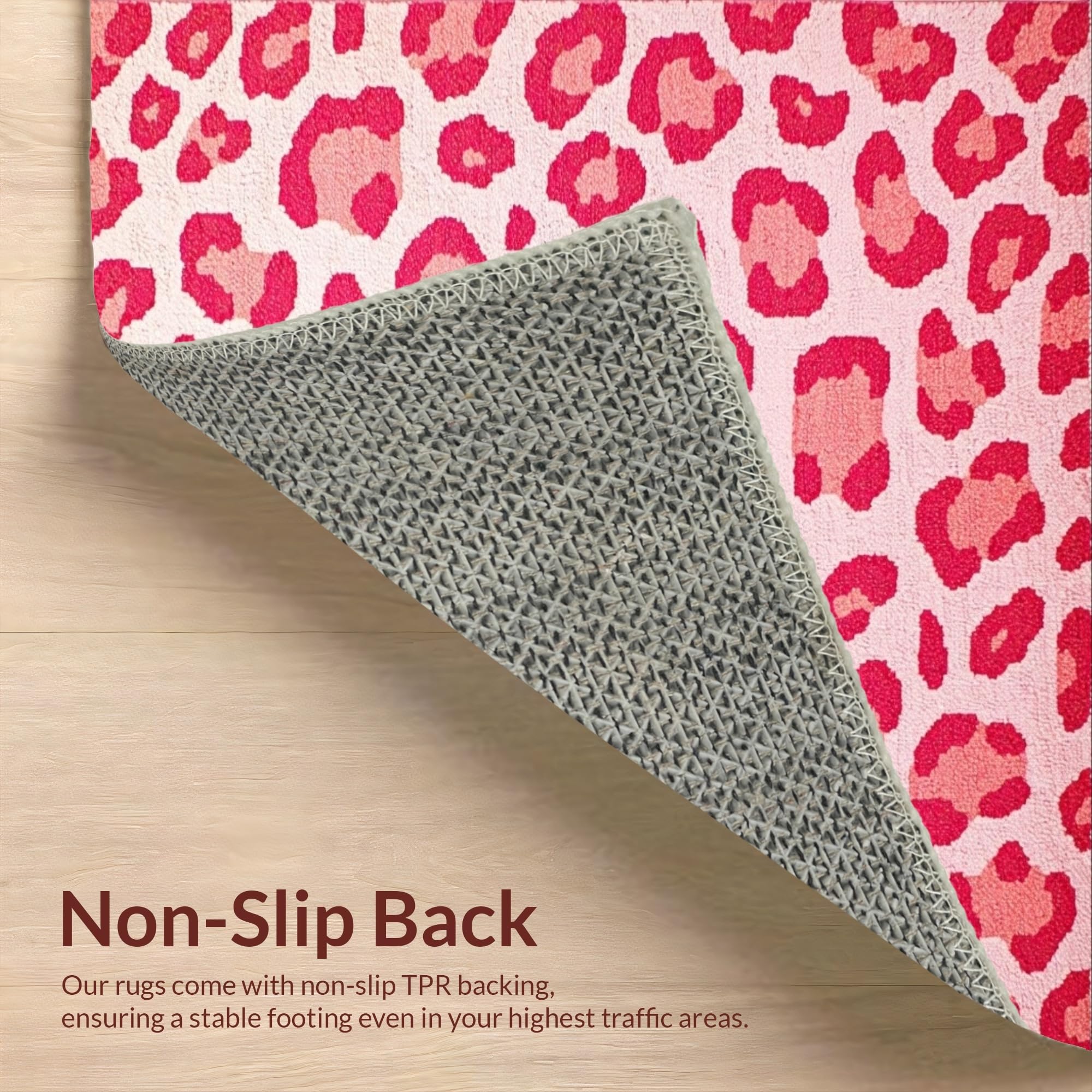 Ultra Soft Area Rug, Non Slip, Stain Resistant, Washable Area Rugs for Living Room, Bedroom, Lively Retro Leopard Artwork(Pink) Overview: