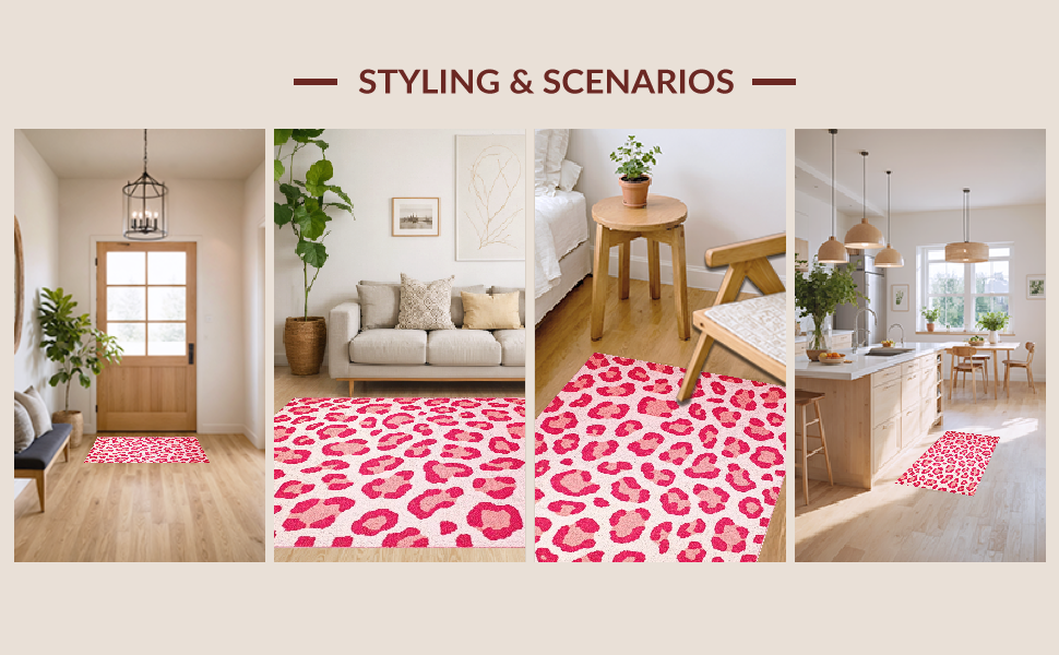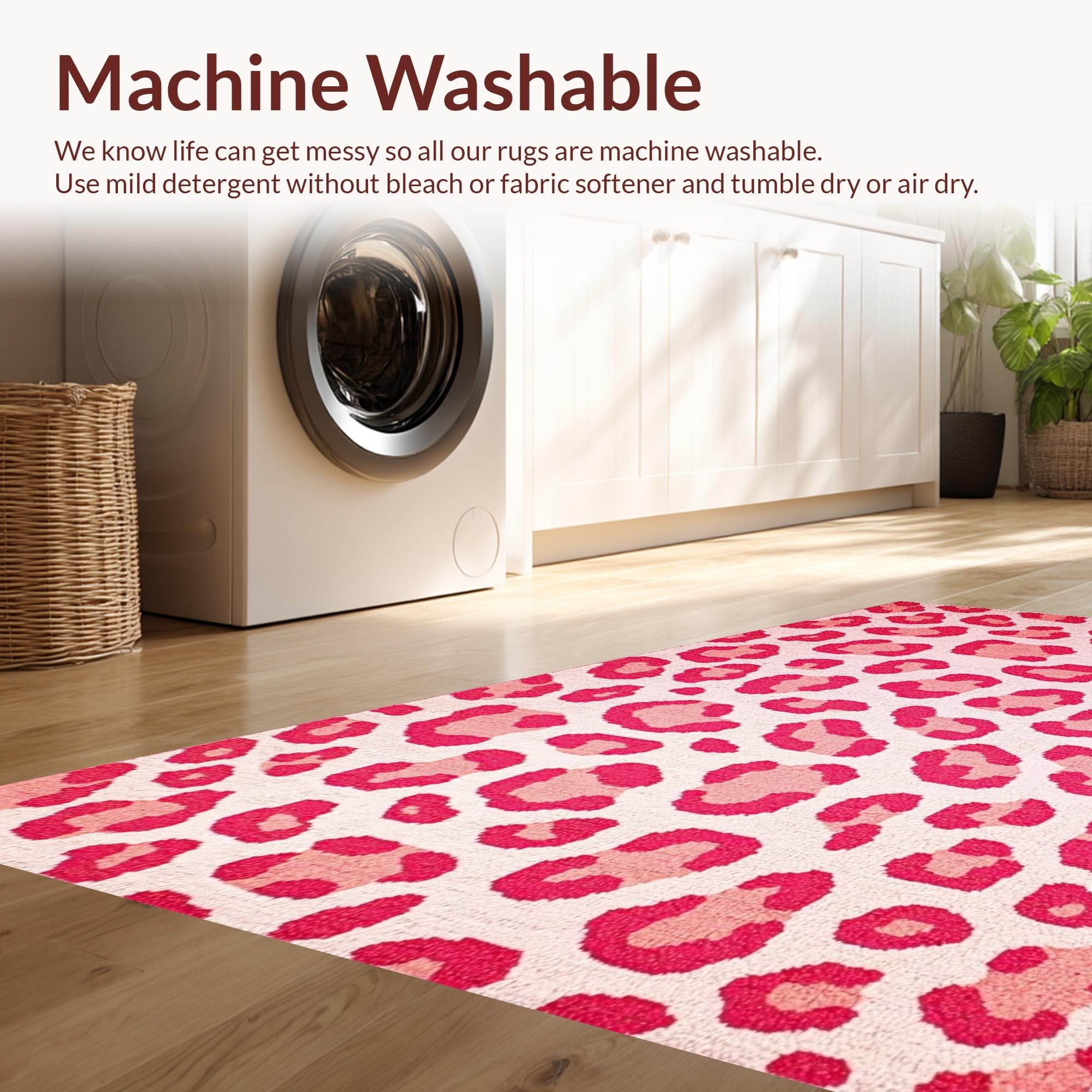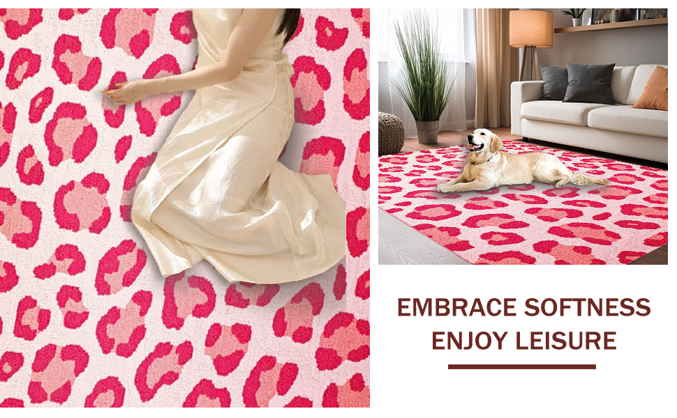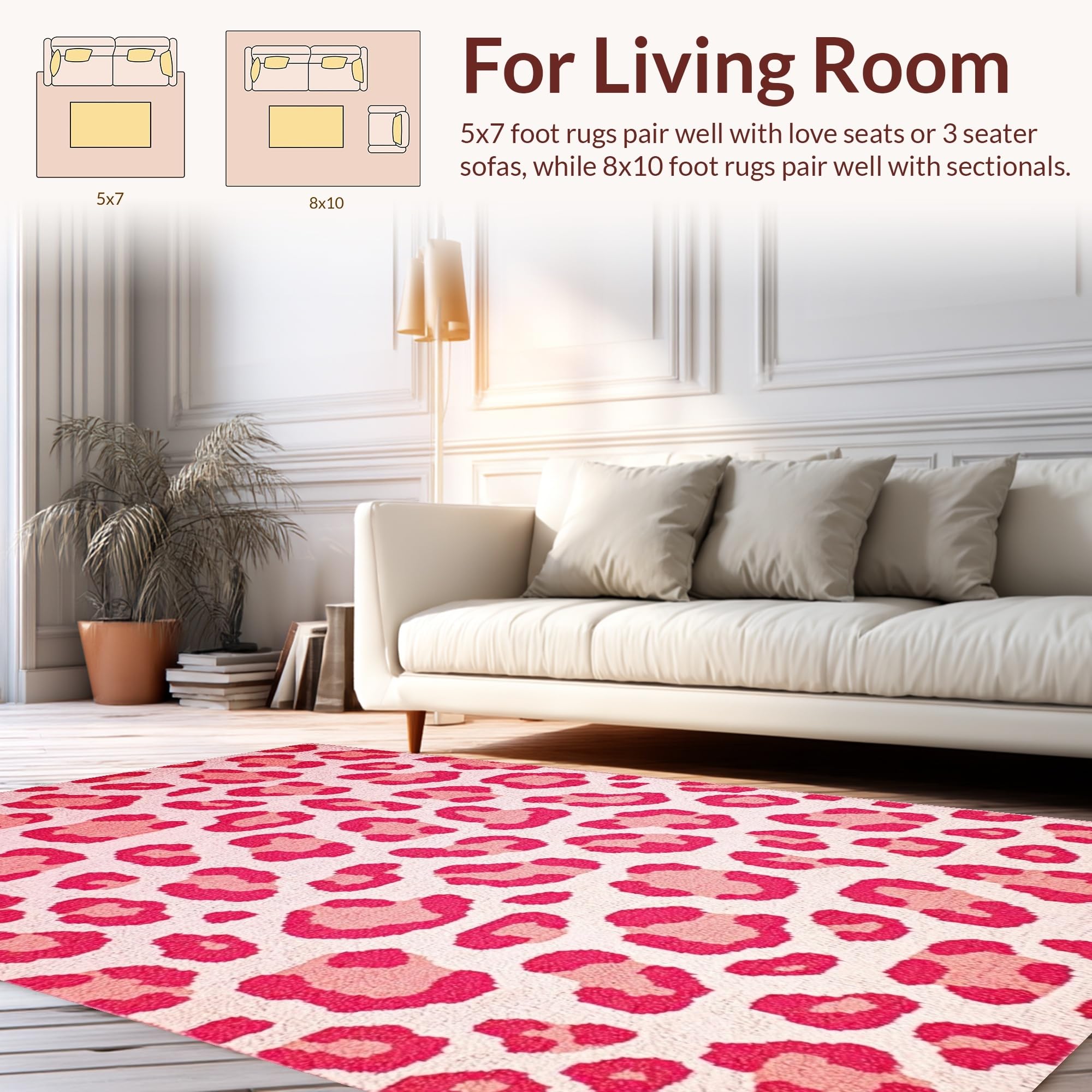 Ultra Soft Area Rug, Non Slip, Stain Resistant, Washable Area Rugs for Living Room, Bedroom, Lively Retro Leopard Artwork(Pink) Overview: