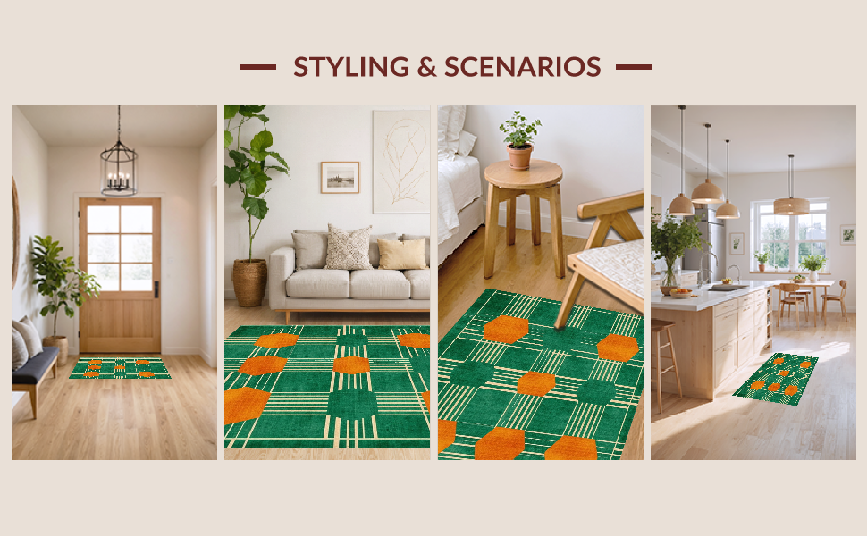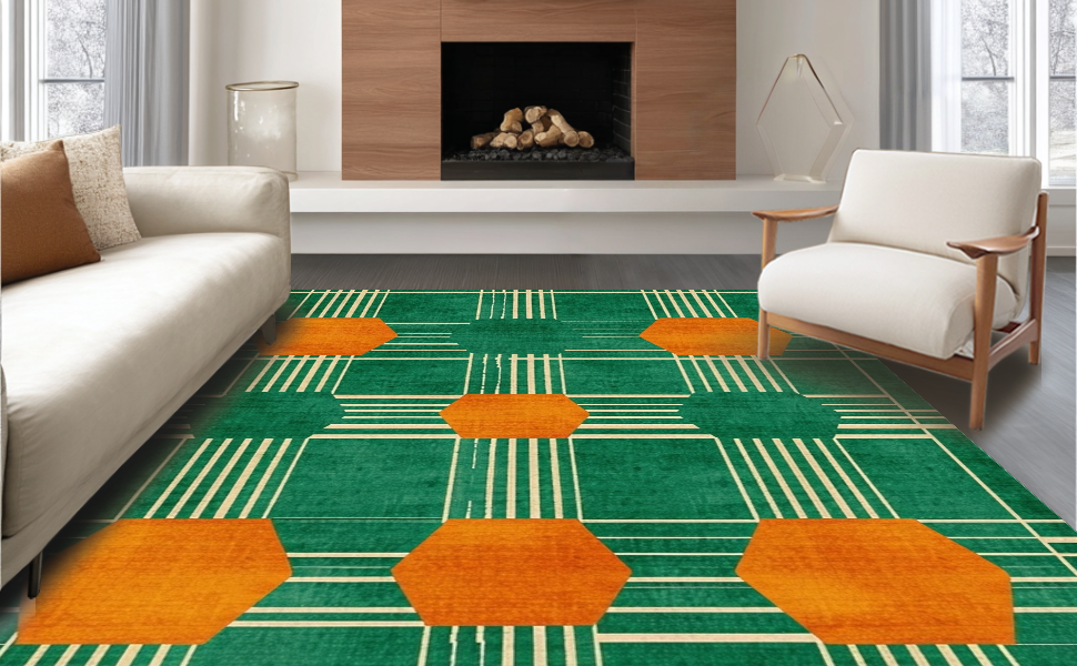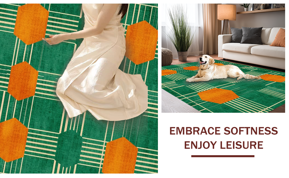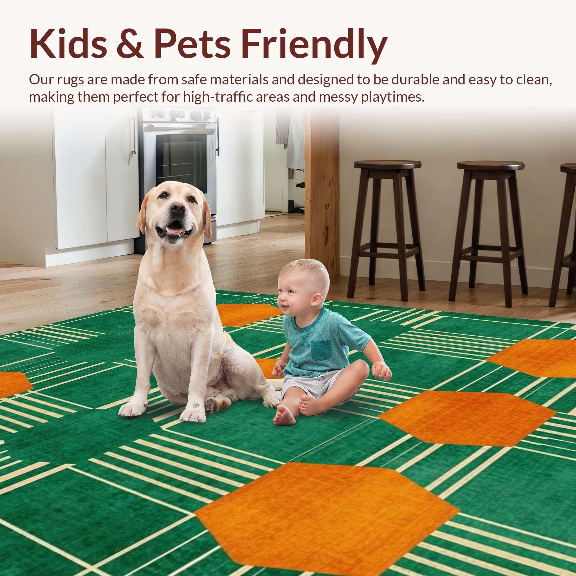 Ultra Soft Area Rug, Non Slip, Stain Resistant, Washable Area Rugs for Living Room, Bedroom, Lively Retro Organic Shapes(Green) Overview: