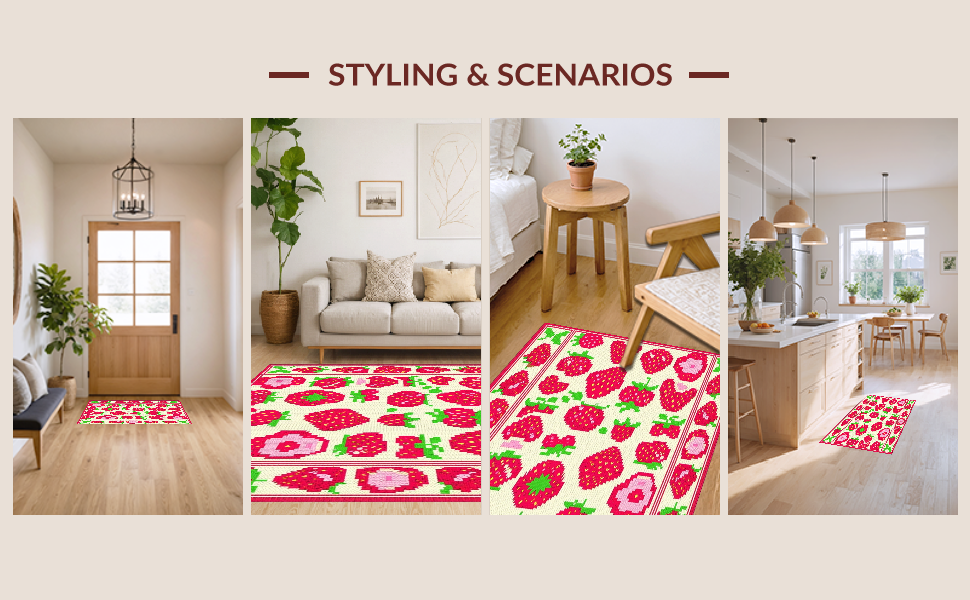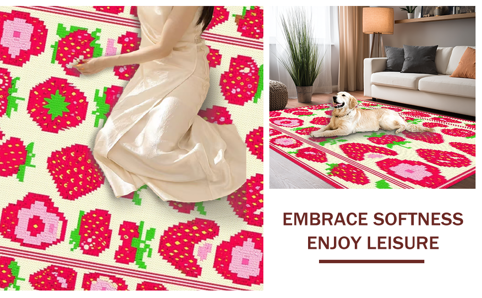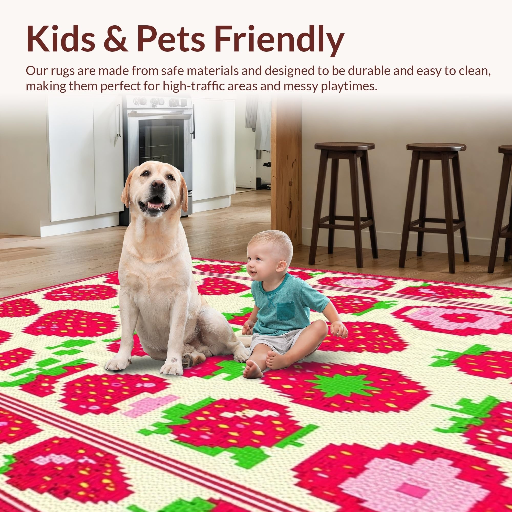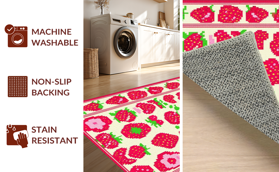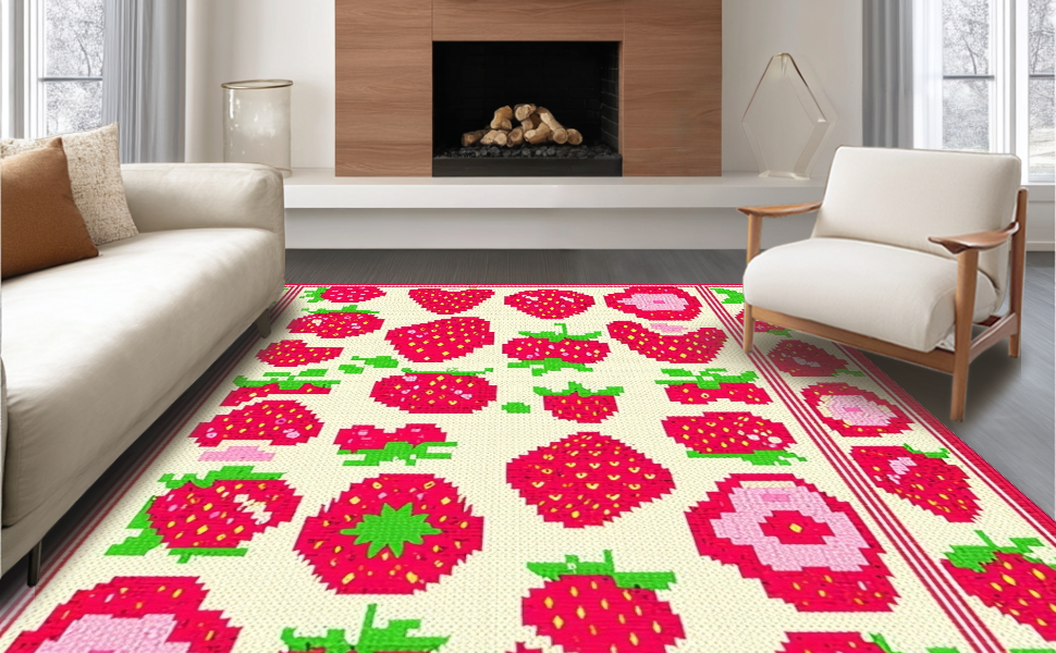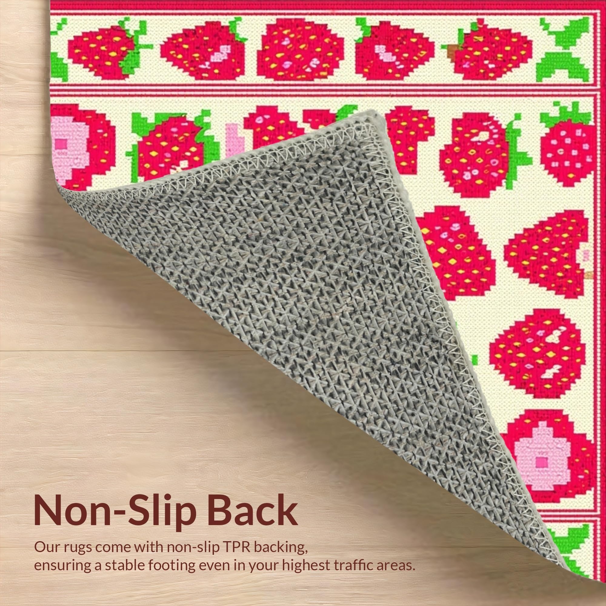 Ultra Soft Area Rug, Non Slip, Stain Resistant, Washable Area Rugs for Living Room, Bedroom, Lively Retro Strawberry Print(Red) Overview: