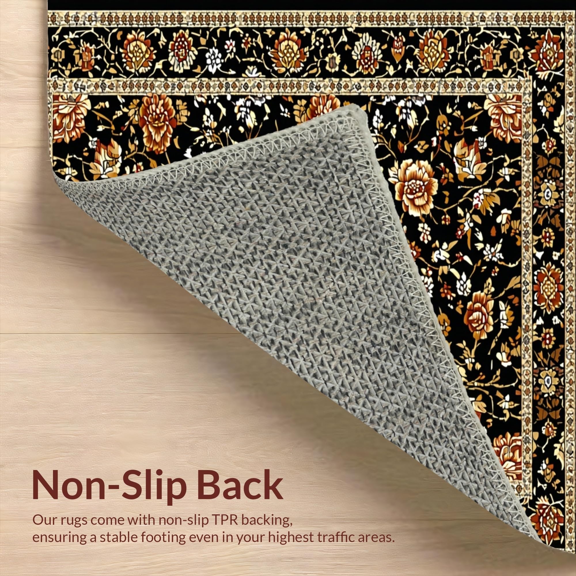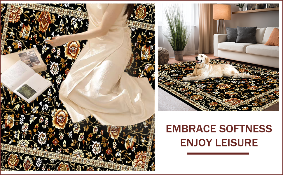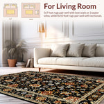 Ultra Soft Area Rug, Non Slip, Stain Resistant, Washable Area Rugs for Living Room, Bedroom, Lively Reversible Cottage Design(Black) Overview: