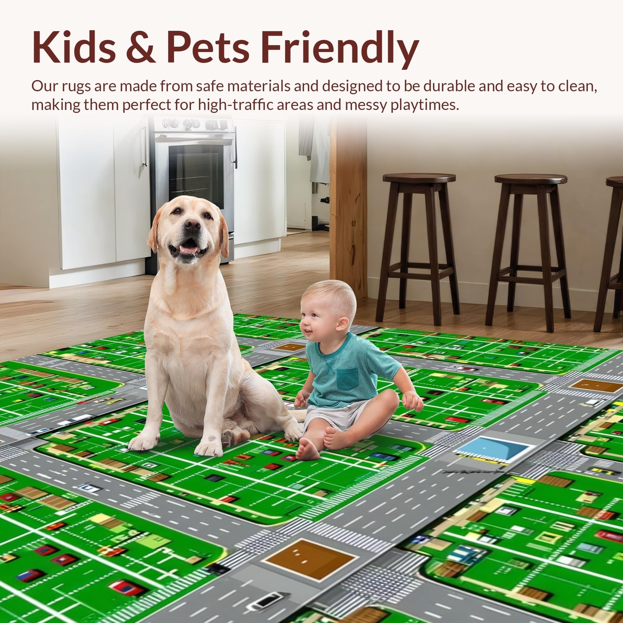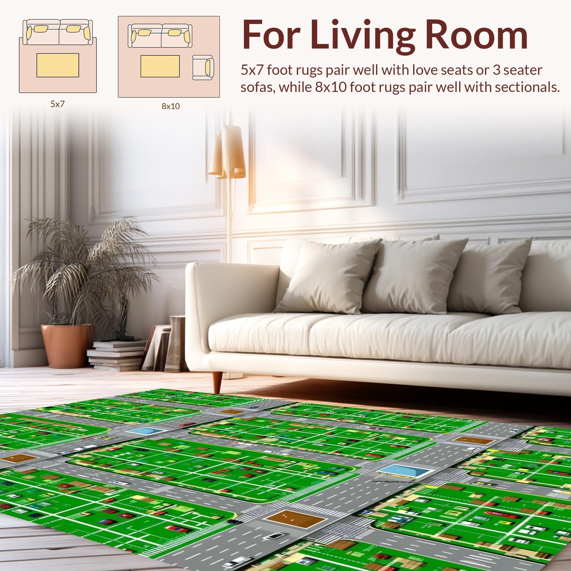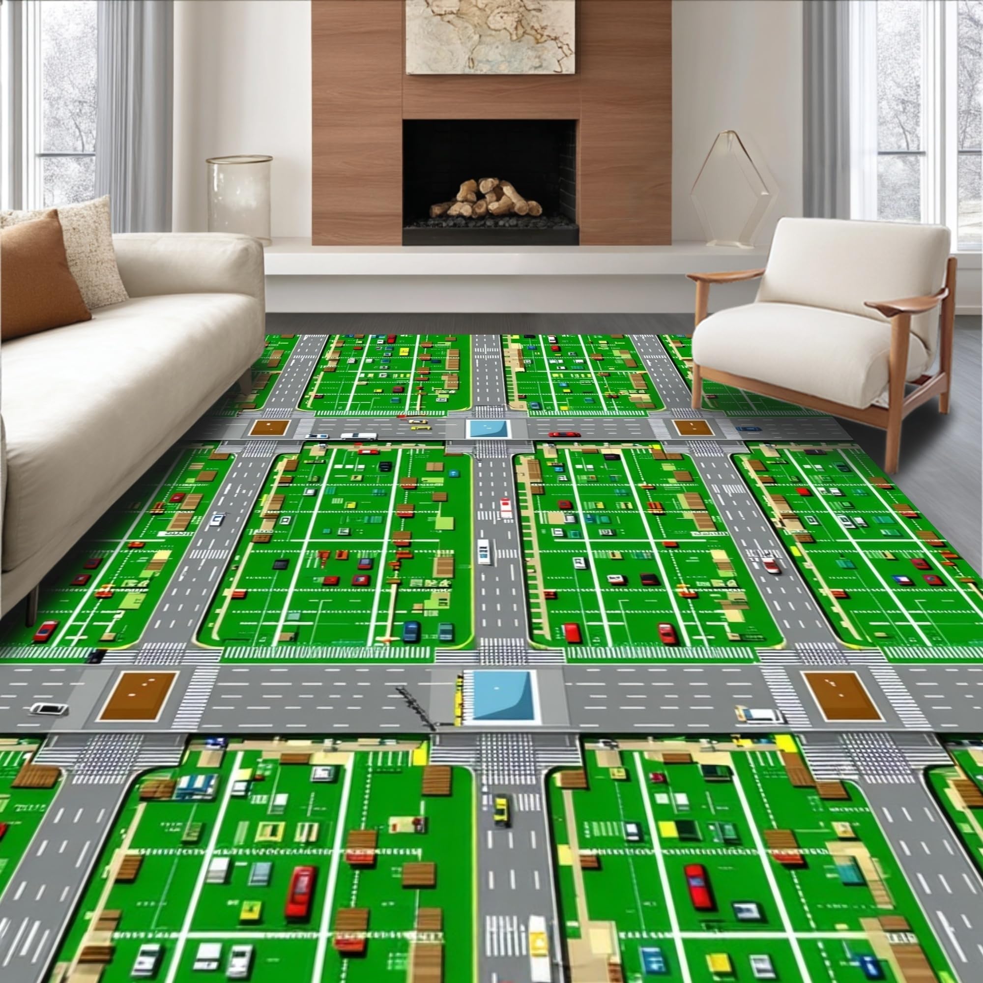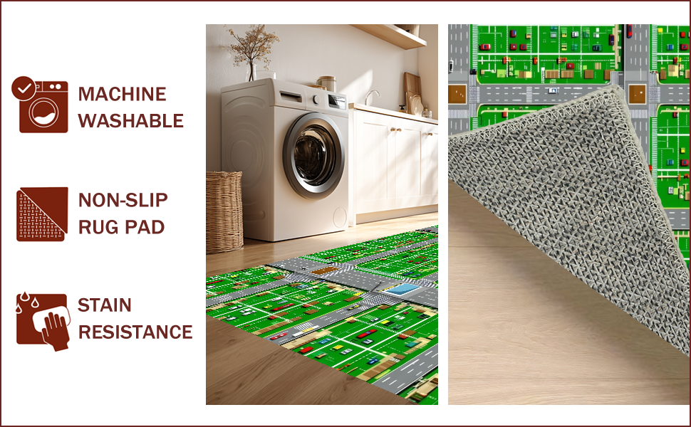 Ultra Soft Area Rug, Non Slip, Stain Resistant, Washable Area Rugs for Living Room, Bedroom, Lively Roadway Exploration Scene(Green) Overview: