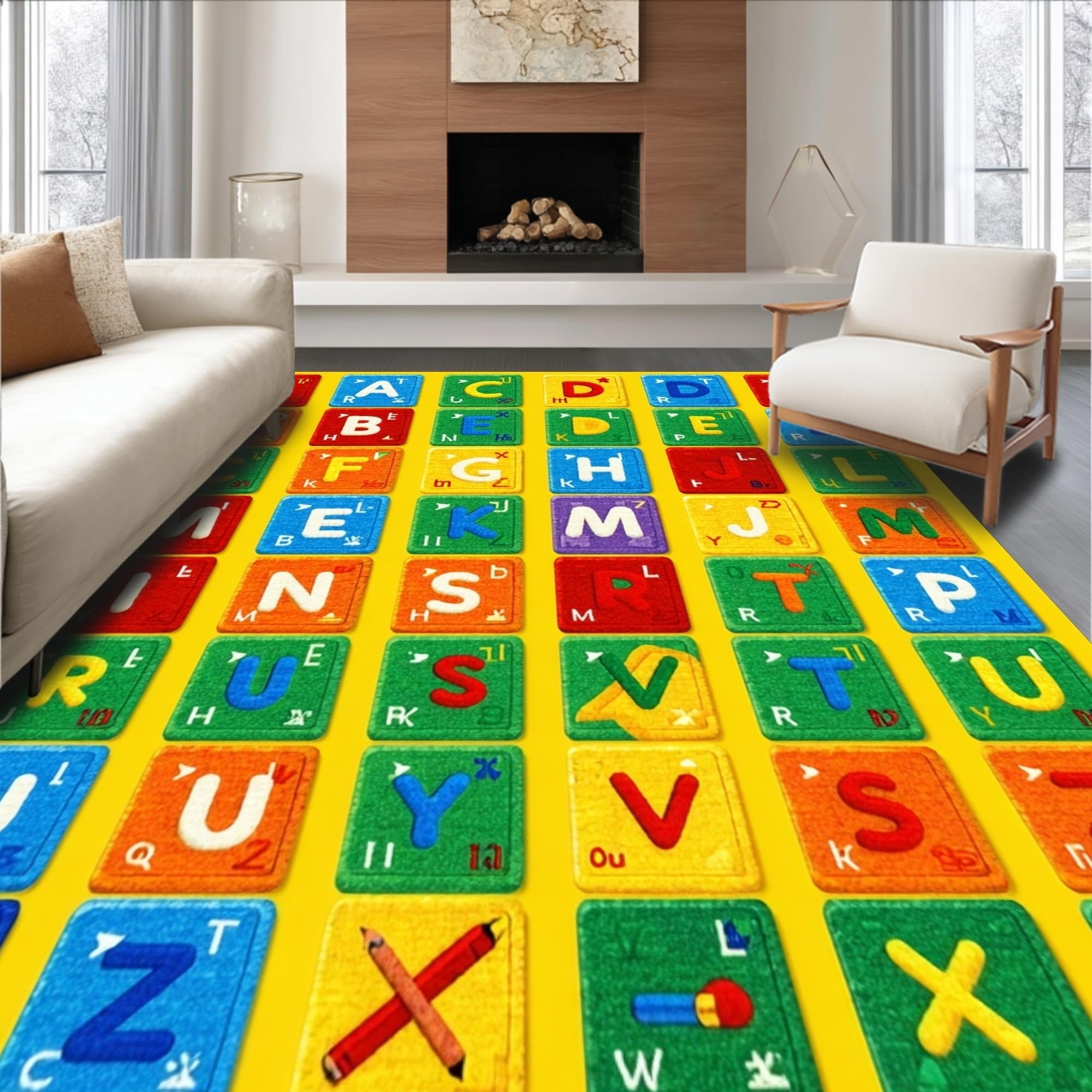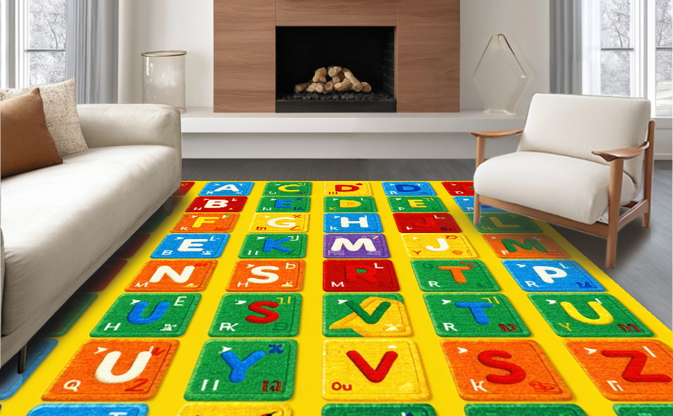 Ultra Soft Area Rug, Non Slip, Stain Resistant, Washable Area Rugs for Living Room, Bedroom, Lively Round Typography Display(Red) Overview: