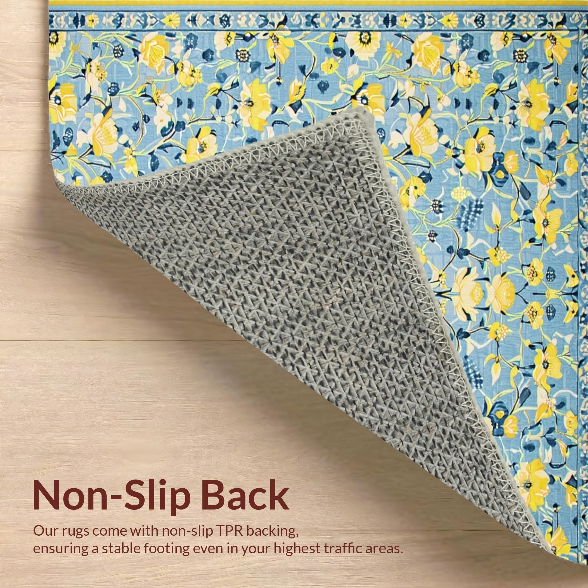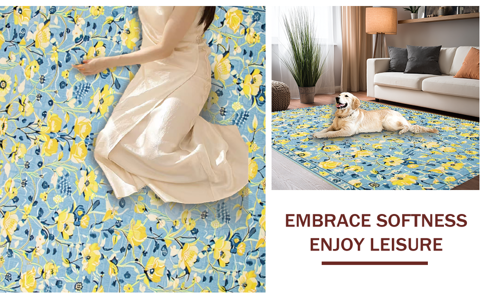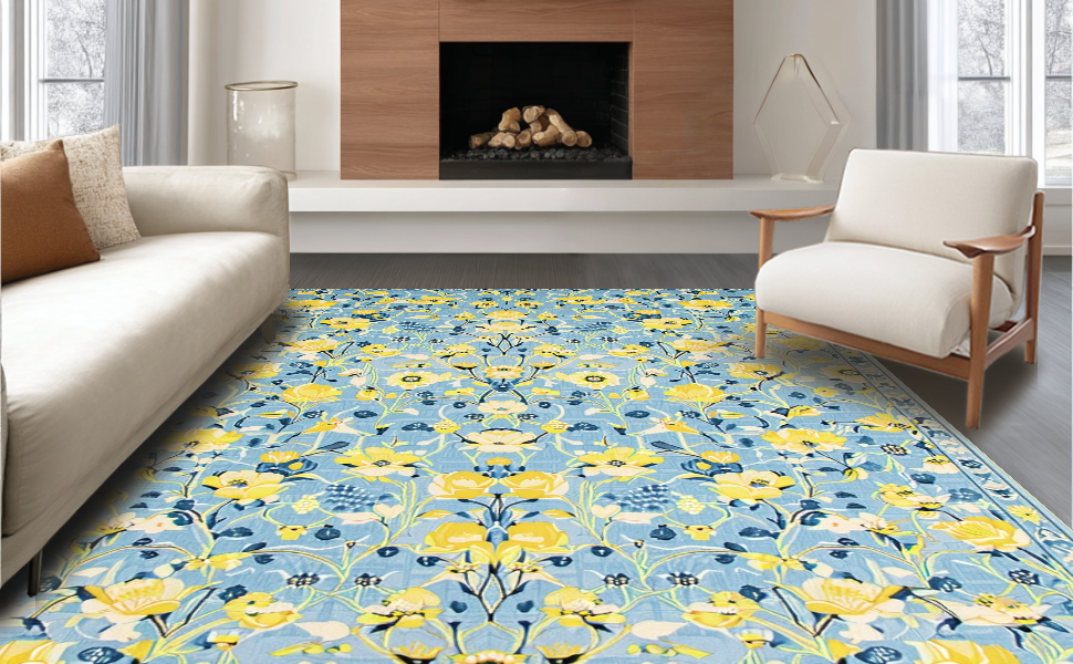 Ultra Soft Area Rug, Non Slip, Stain Resistant, Washable Area Rugs for Living Room, Bedroom, Lively Rustic Decor with Cheerful Hues(Blue) Overview: