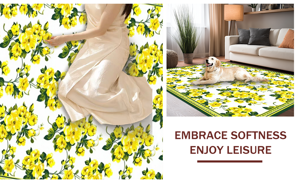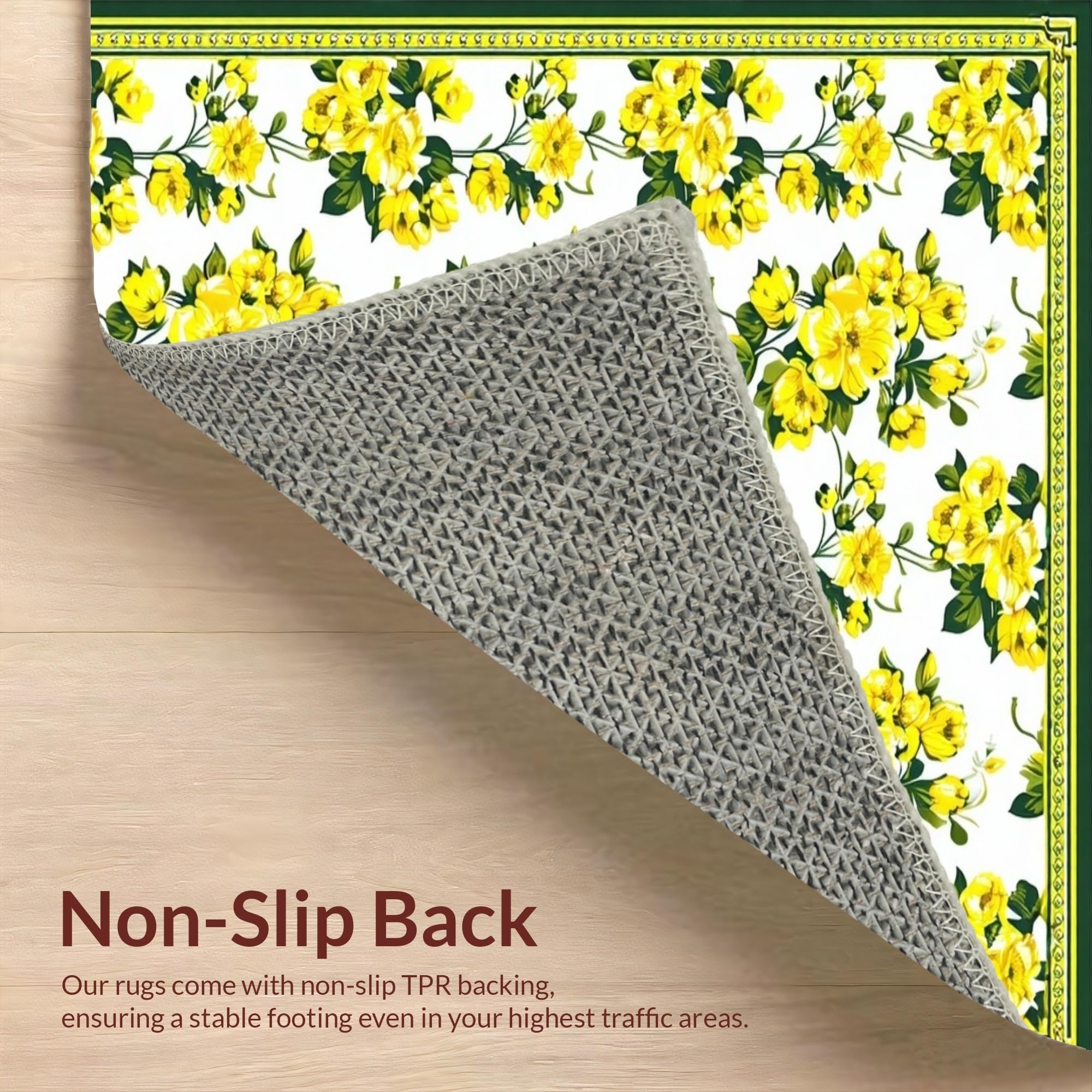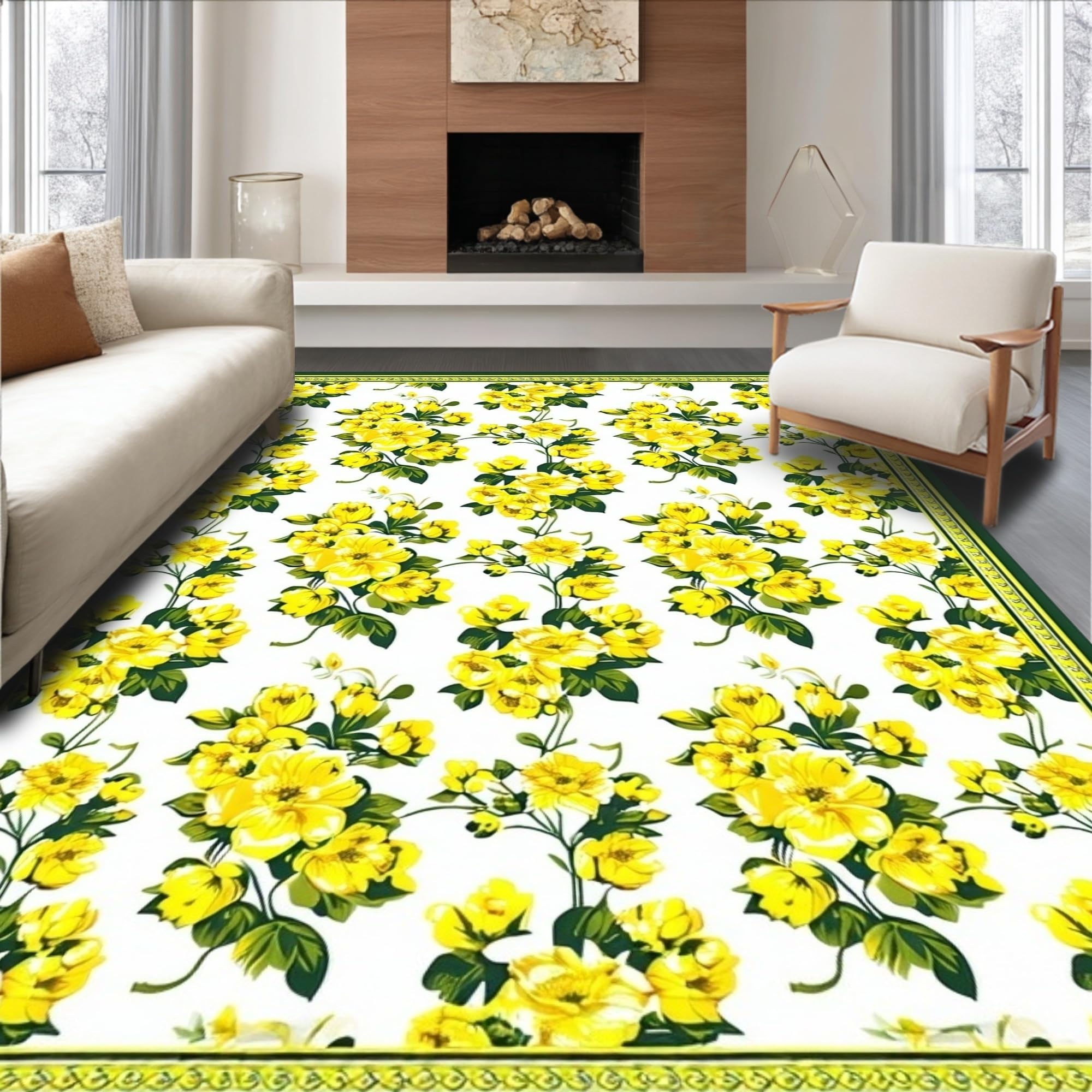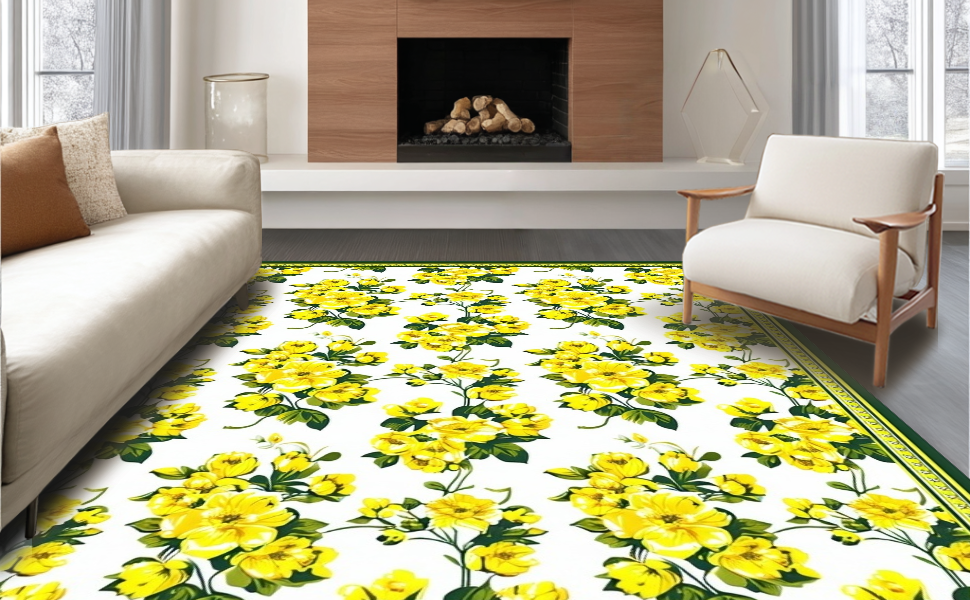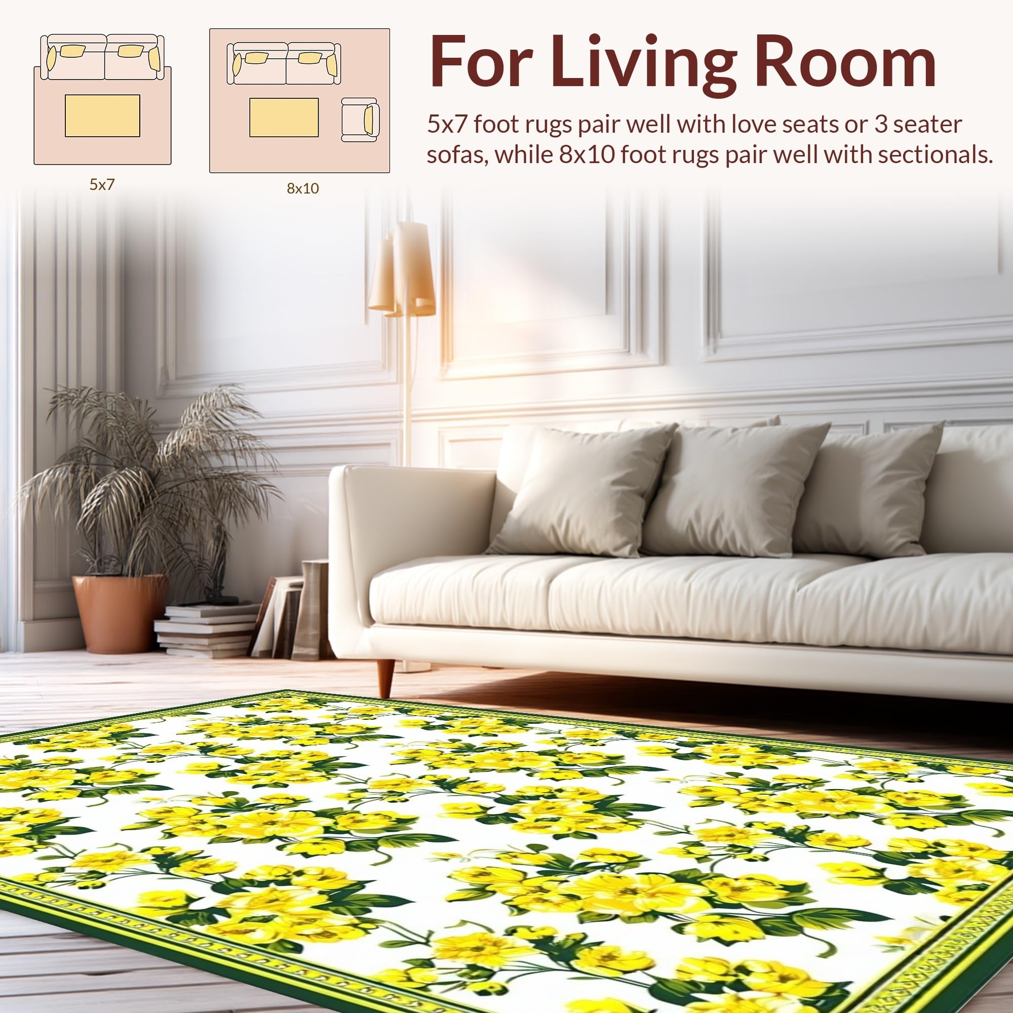 Ultra Soft Area Rug, Non Slip, Stain Resistant, Washable Area Rugs for Living Room, Bedroom, Lively Rustic Floral Arrangement(Yellow) Overview: