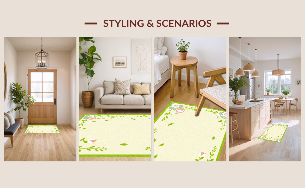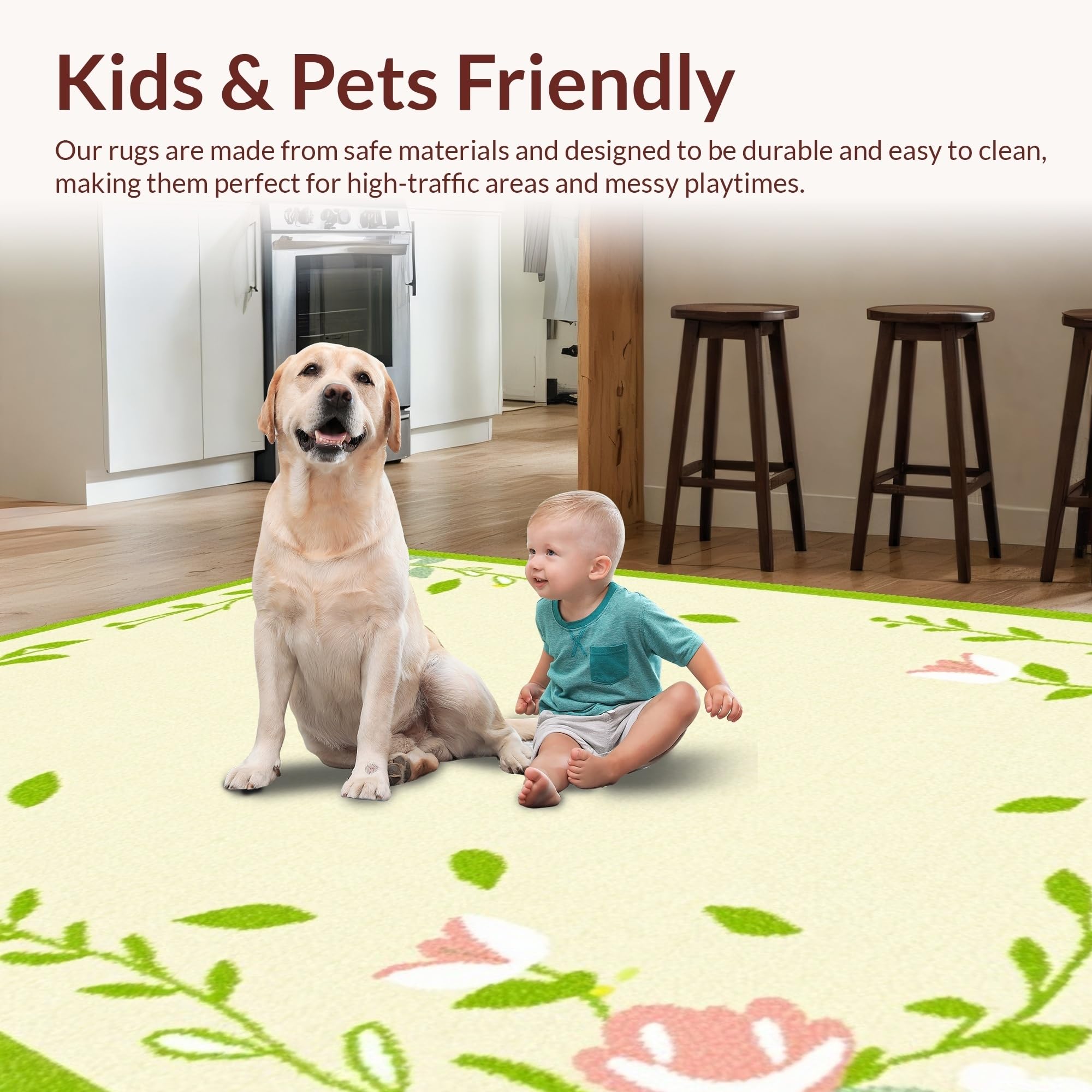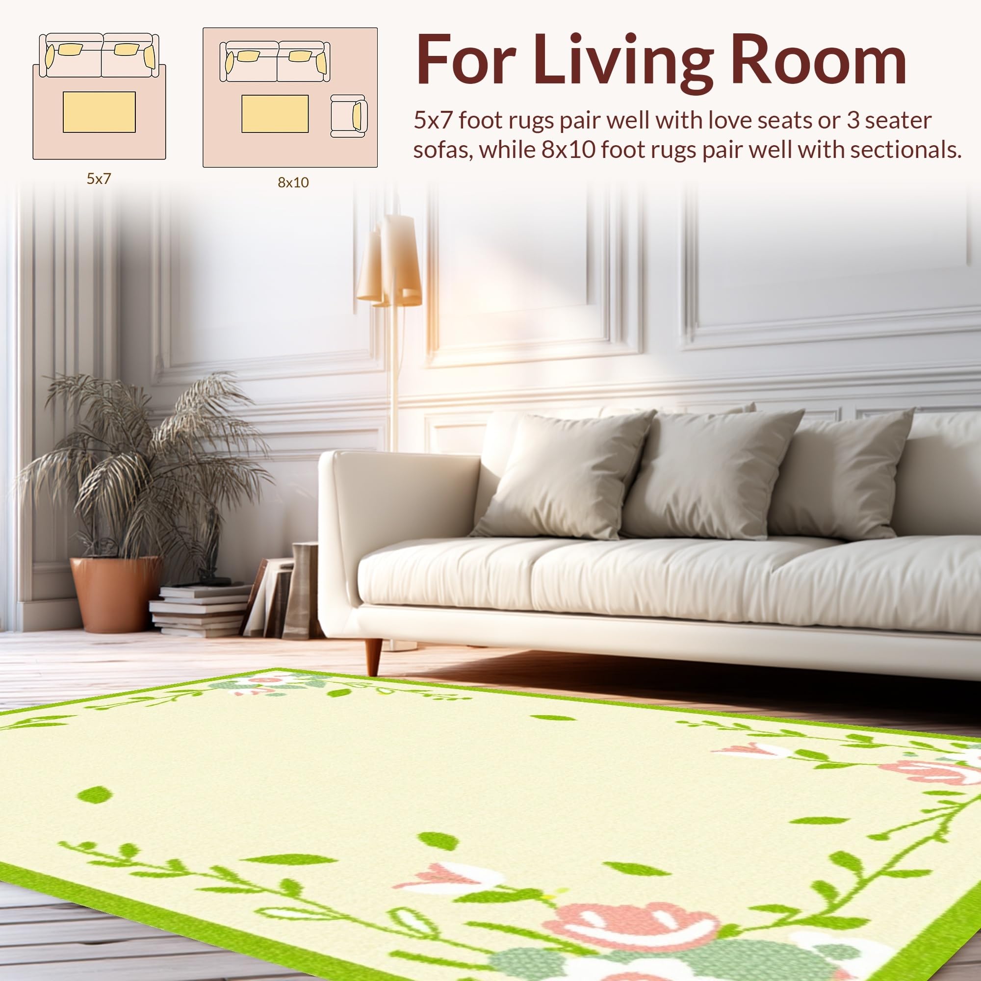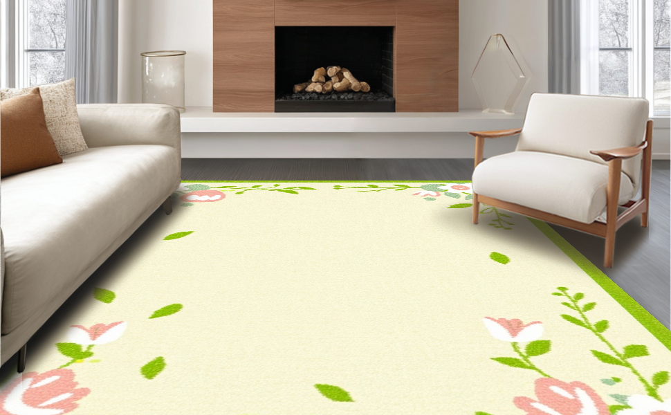 Ultra Soft Area Rug, Non Slip, Stain Resistant, Washable Area Rugs for Living Room, Bedroom, Lively Rustic Spring Decor(Ivory) Overview: