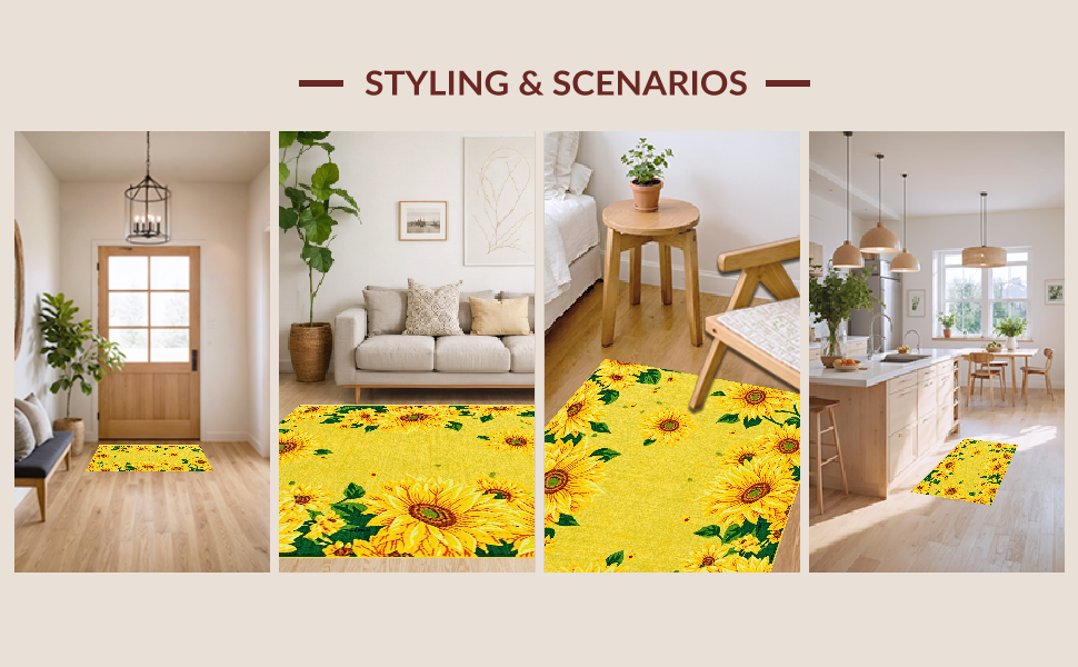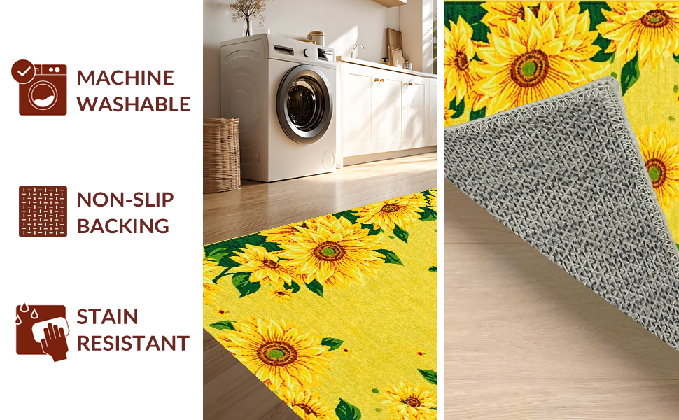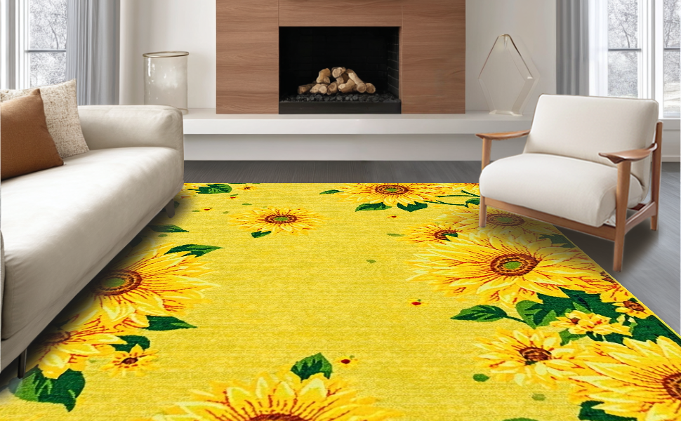 Ultra Soft Area Rug, Non Slip, Stain Resistant, Washable Area Rugs for Living Room, Bedroom, Lively Rustic Sunflower Accents(Yellow) Overview: